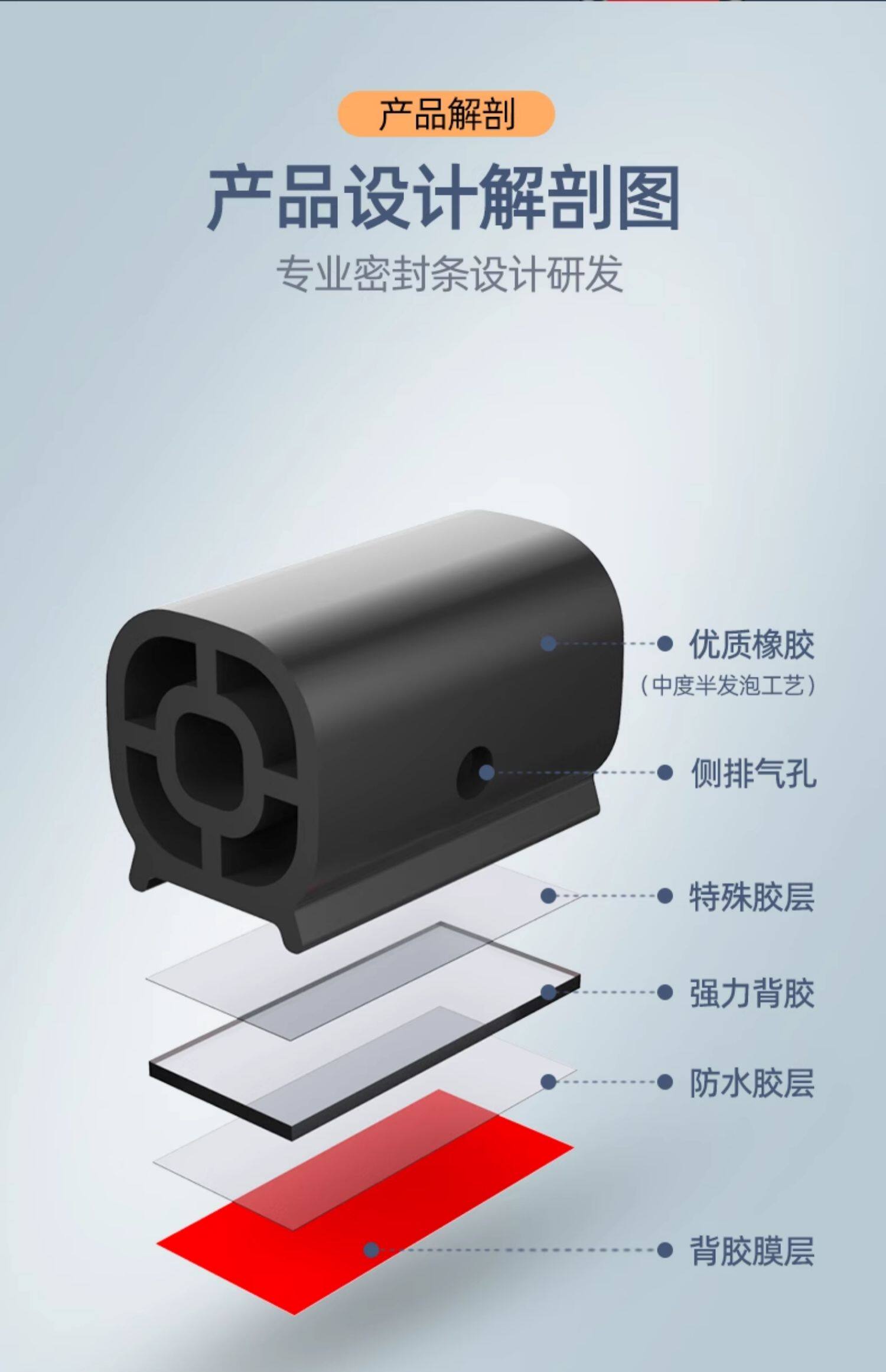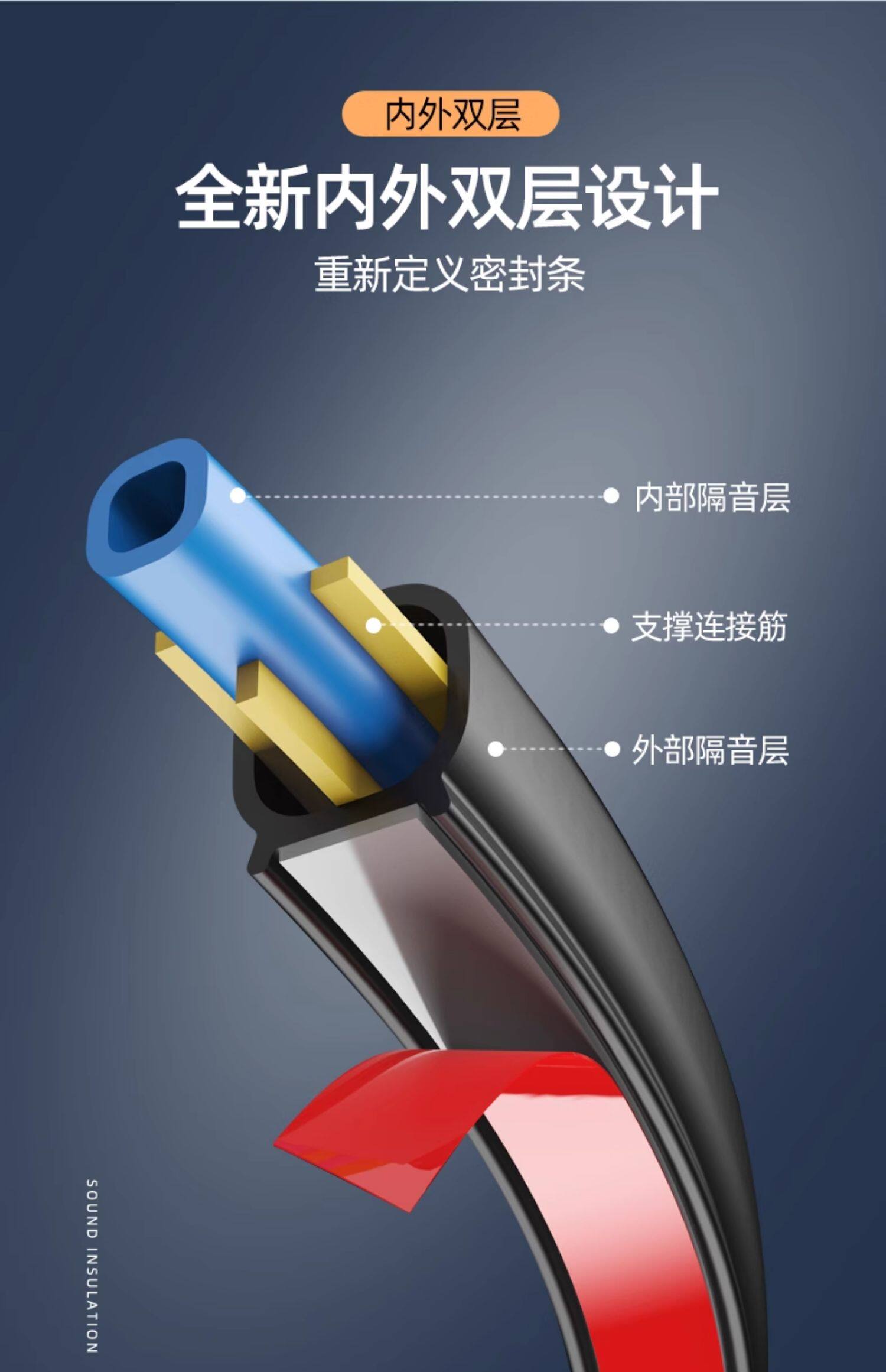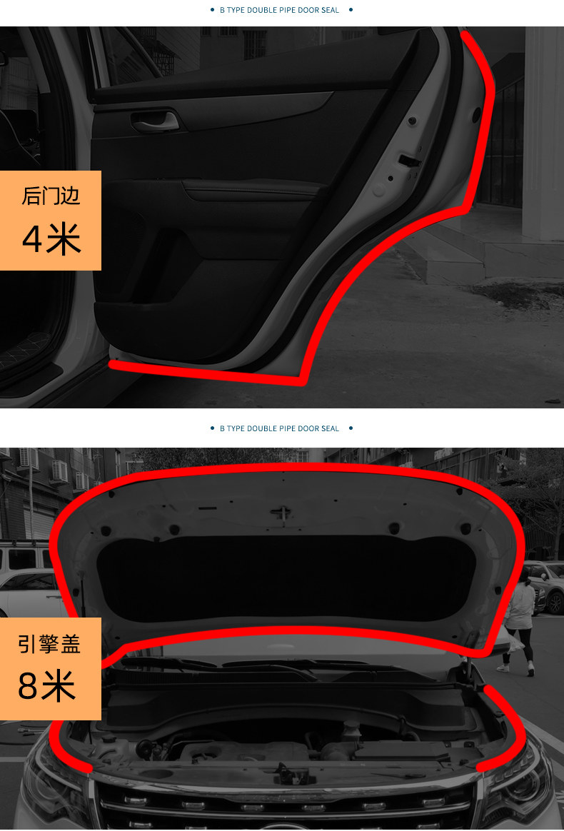 Large and medium-sized truck and car sealing strips, sound insulation strips, engine hoods, doors, double-layer, waterproof universal modified noise reduction