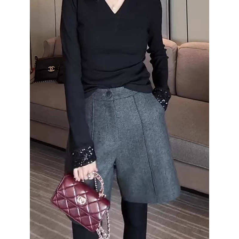 Bu yaz trend olan, geniş ölçülü, zərif boz rəngli qadınlar üçün kostyum şortları, geniş, şık, gündəlik və çoxfunksiyalı beşgönlü şalvarlar.