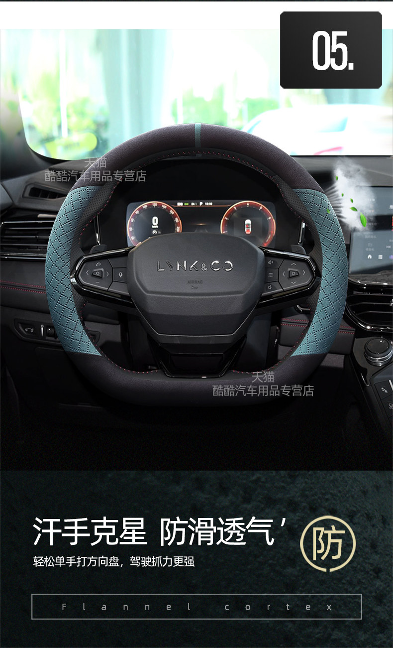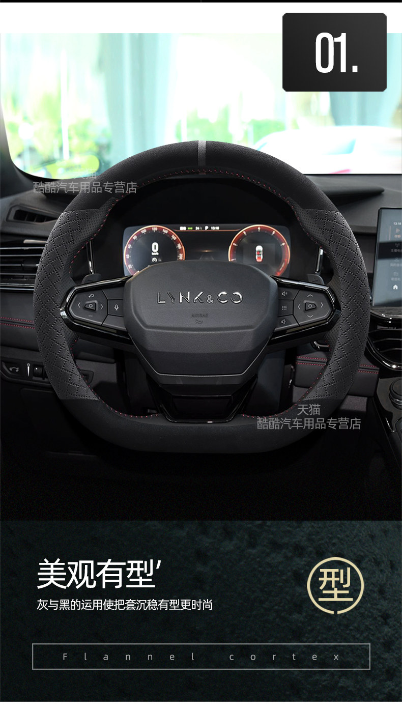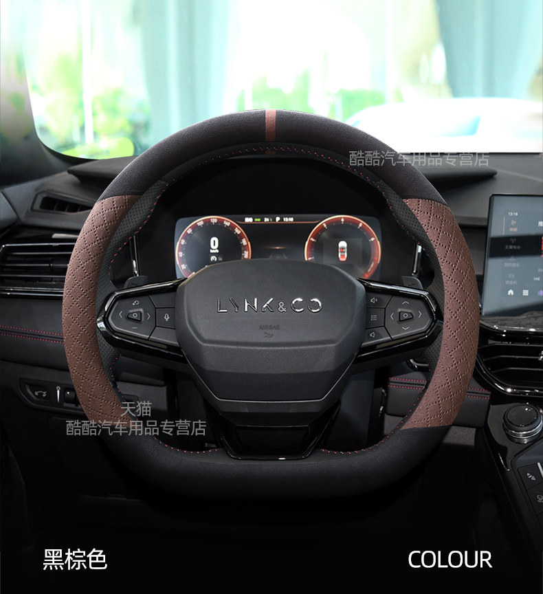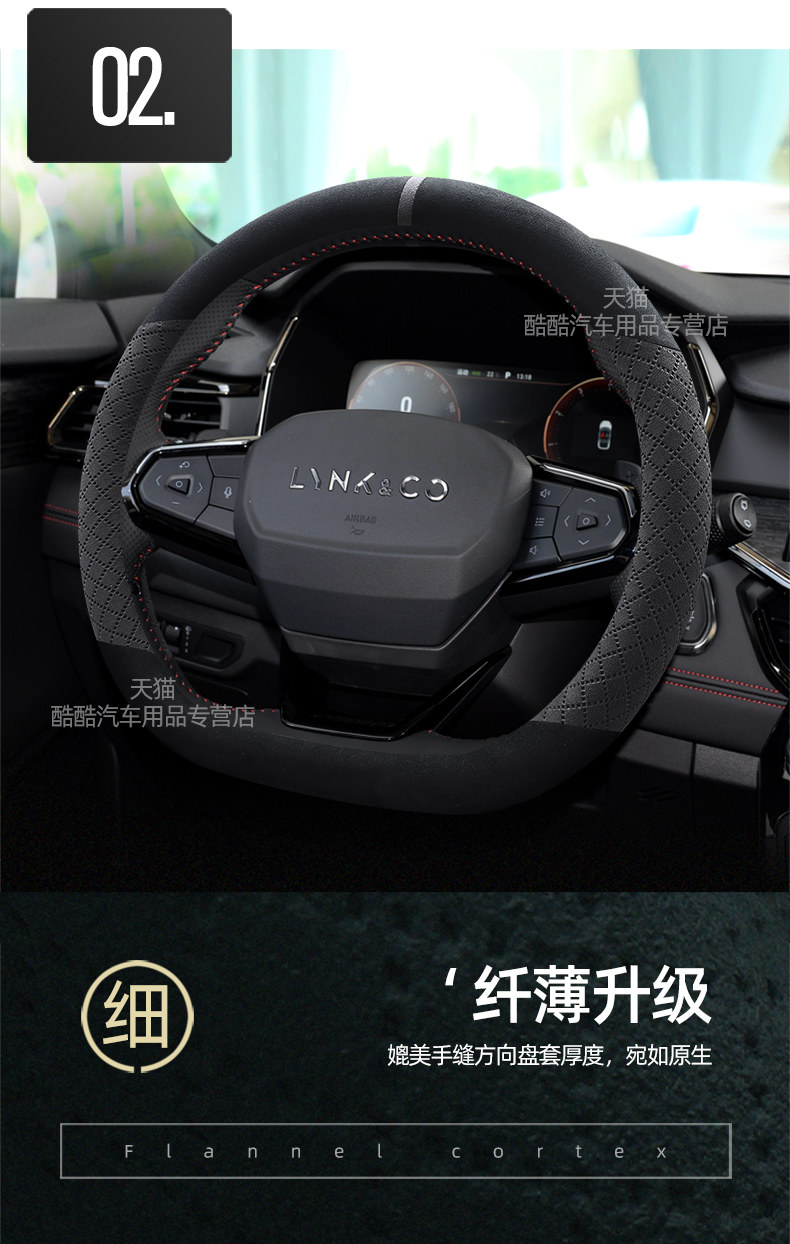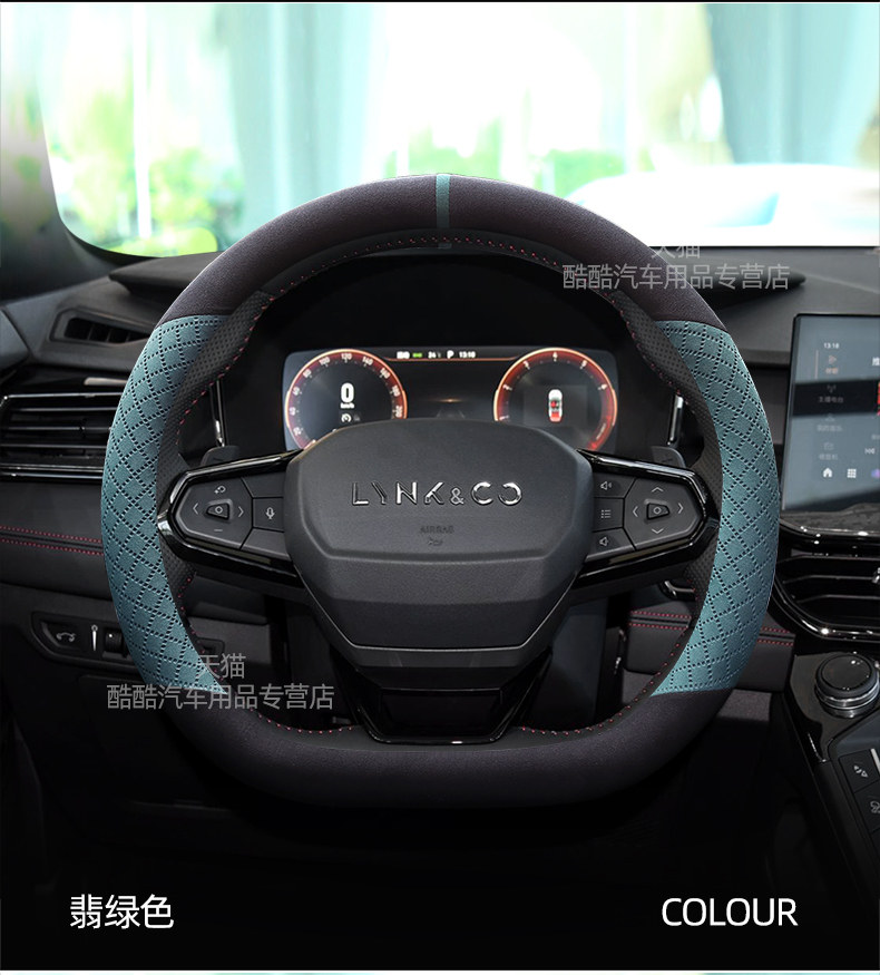 Suitable for Lynk & Co 01, 03, 05, 06 ultra thin and 02 Hatchback genuine leather suede steering wheel covers for all seasons.