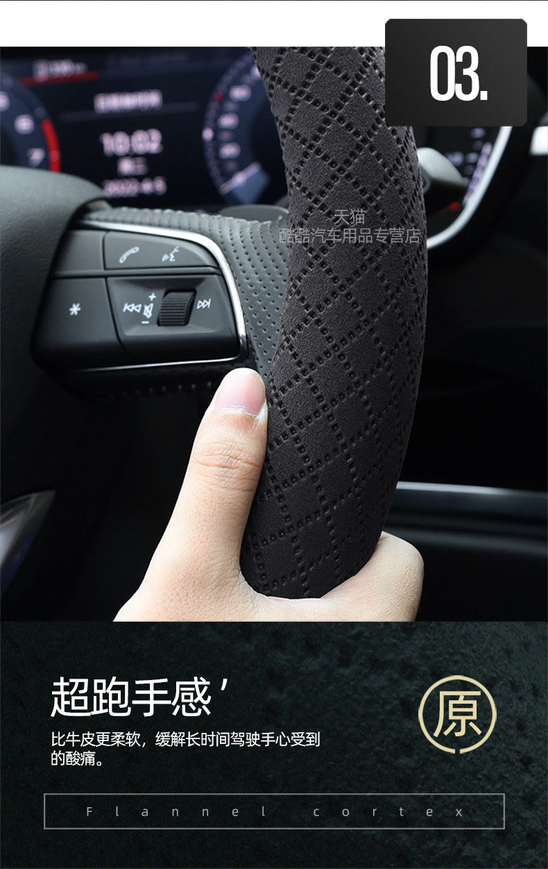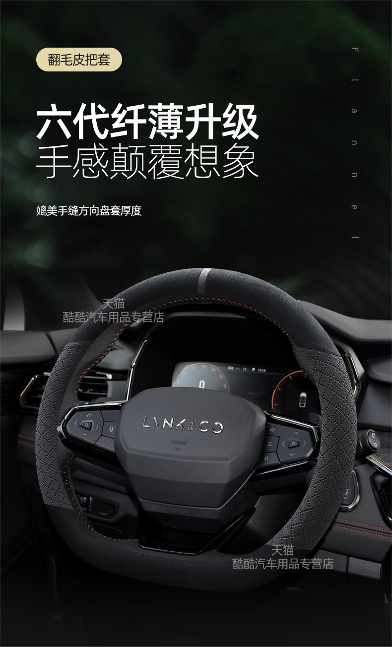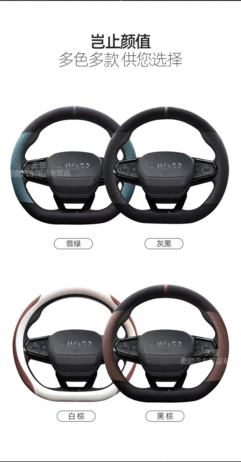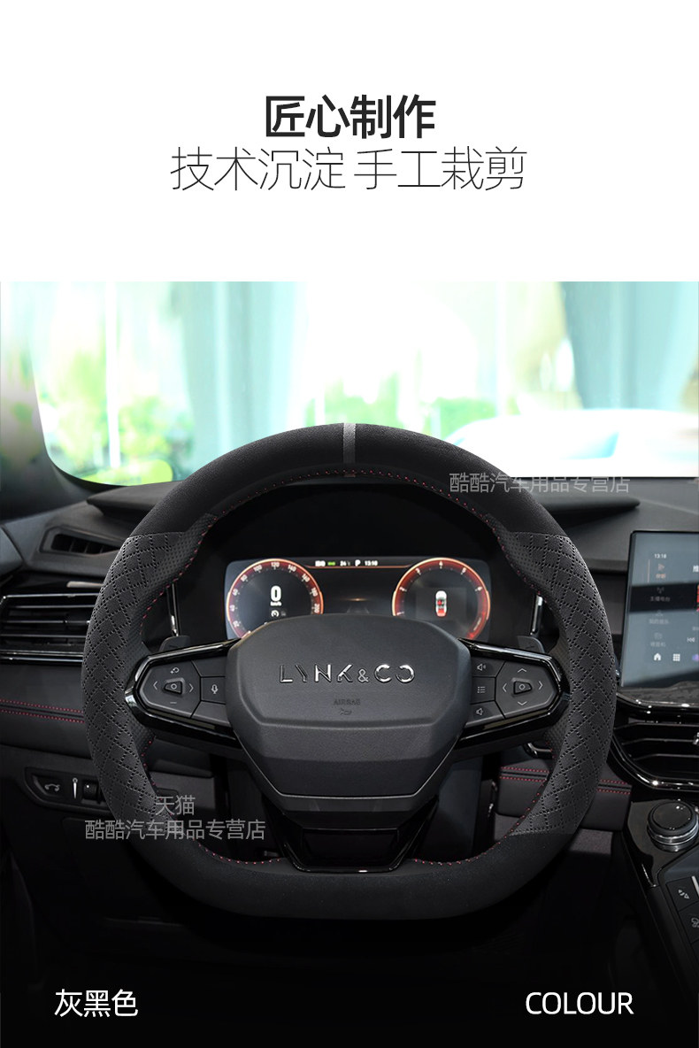 Suitable for Lynk & Co 01, 03, 05, 06 ultra thin and 02 Hatchback genuine leather suede steering wheel covers for all seasons.