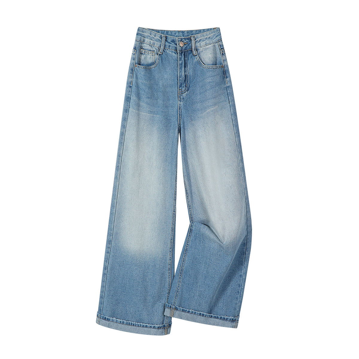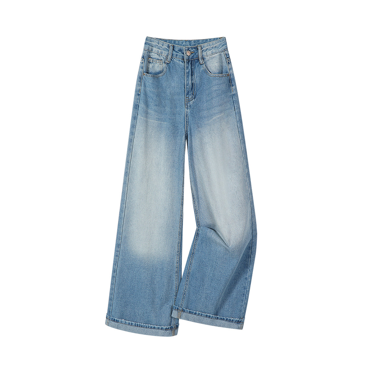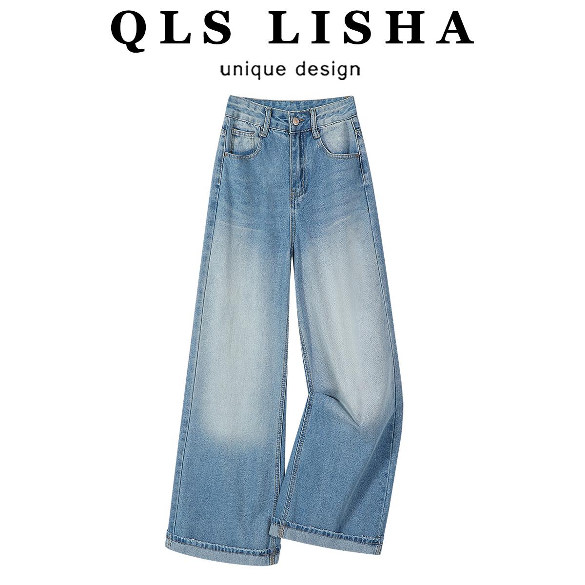Chalisa yüksək belli arıqlama üçün düz, geniş ayaqlı, açıq rəngli cins şalvar, yeni yaz stili, qadınlar üçün dəbli və dəbli boş şalvar.