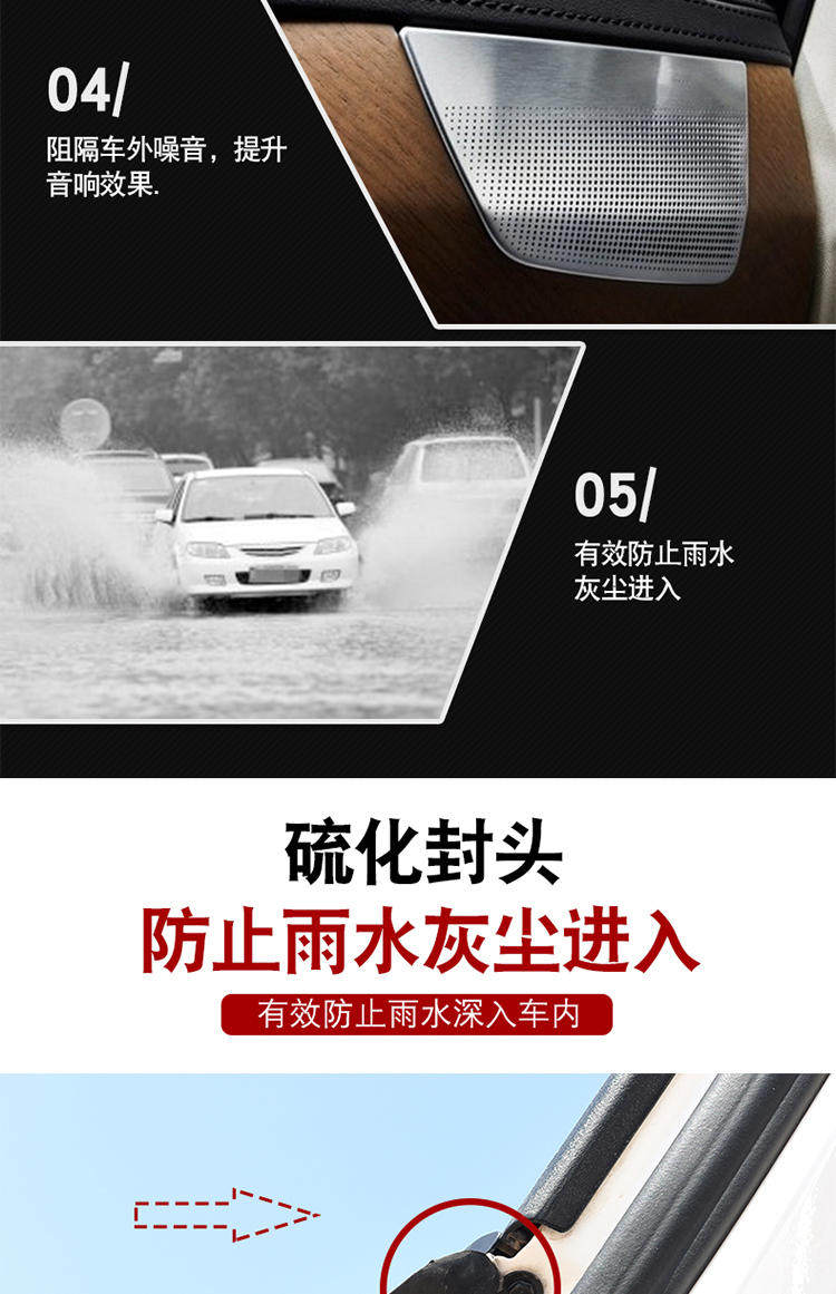 Changan Ounuo xüsusi təyinatlı avtomobil möhürləmə zolaqları, qapı səs izolyasiya zolaqları, toz keçirməyən, səs-küy azaldıcı və toqquşma əleyhinə rezin zolaqlar üçün uyğundur.