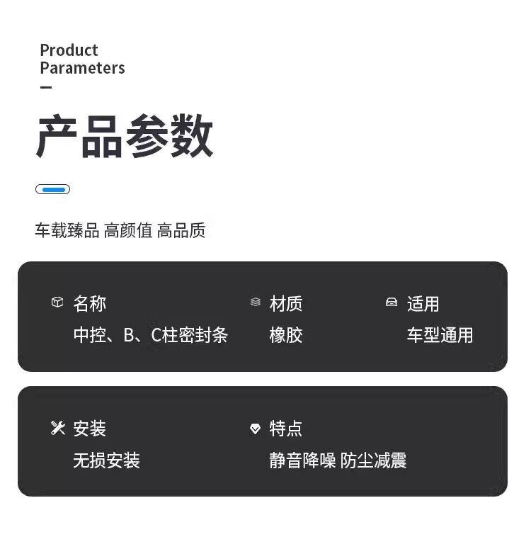 Chery Tiggo 9 car sealing strips, B-pillar door sound insulation strips, C-pillar dust insulation and noise reduction strips, center console sealing strip modification.
