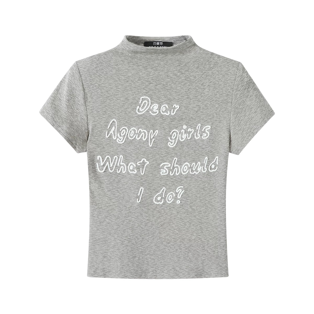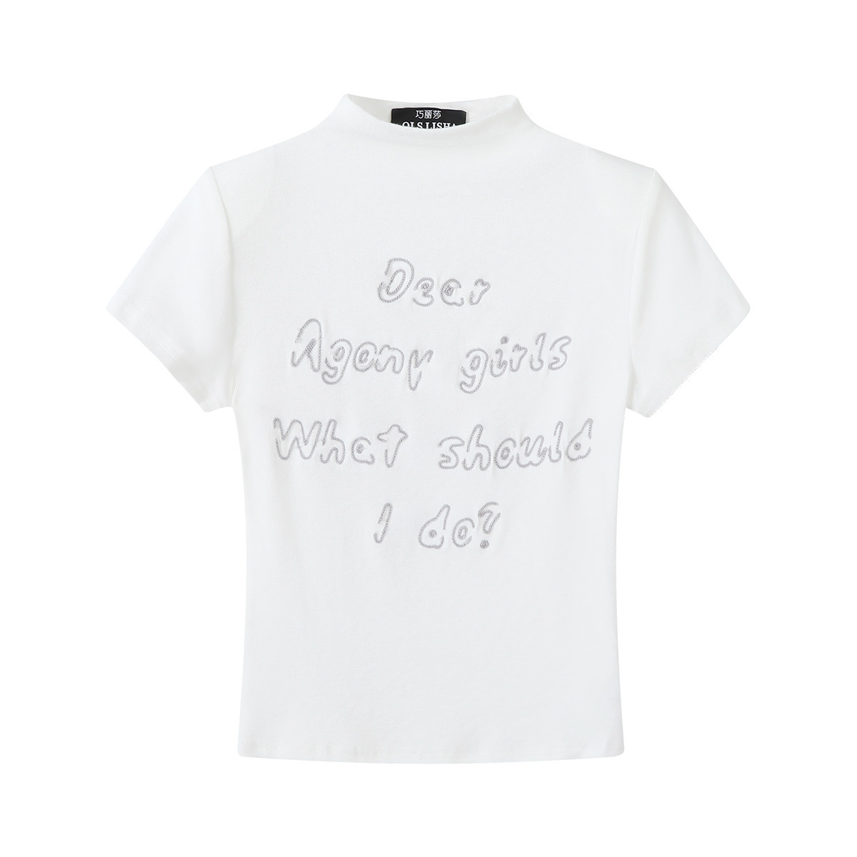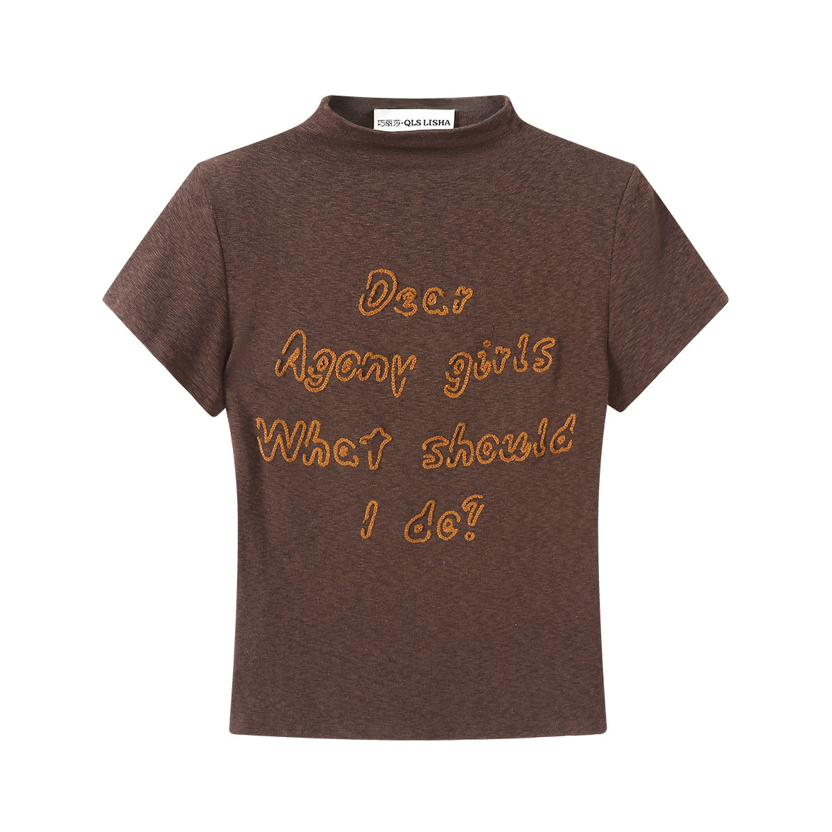 Chola Lisa Brown Merlad Seksual Qısa Top Yay Hərfli Nakış Yüksək Yaxalı İncə Uyğun Qısa Qollu Köynək Qadın Payız
