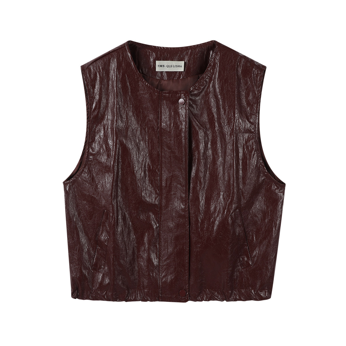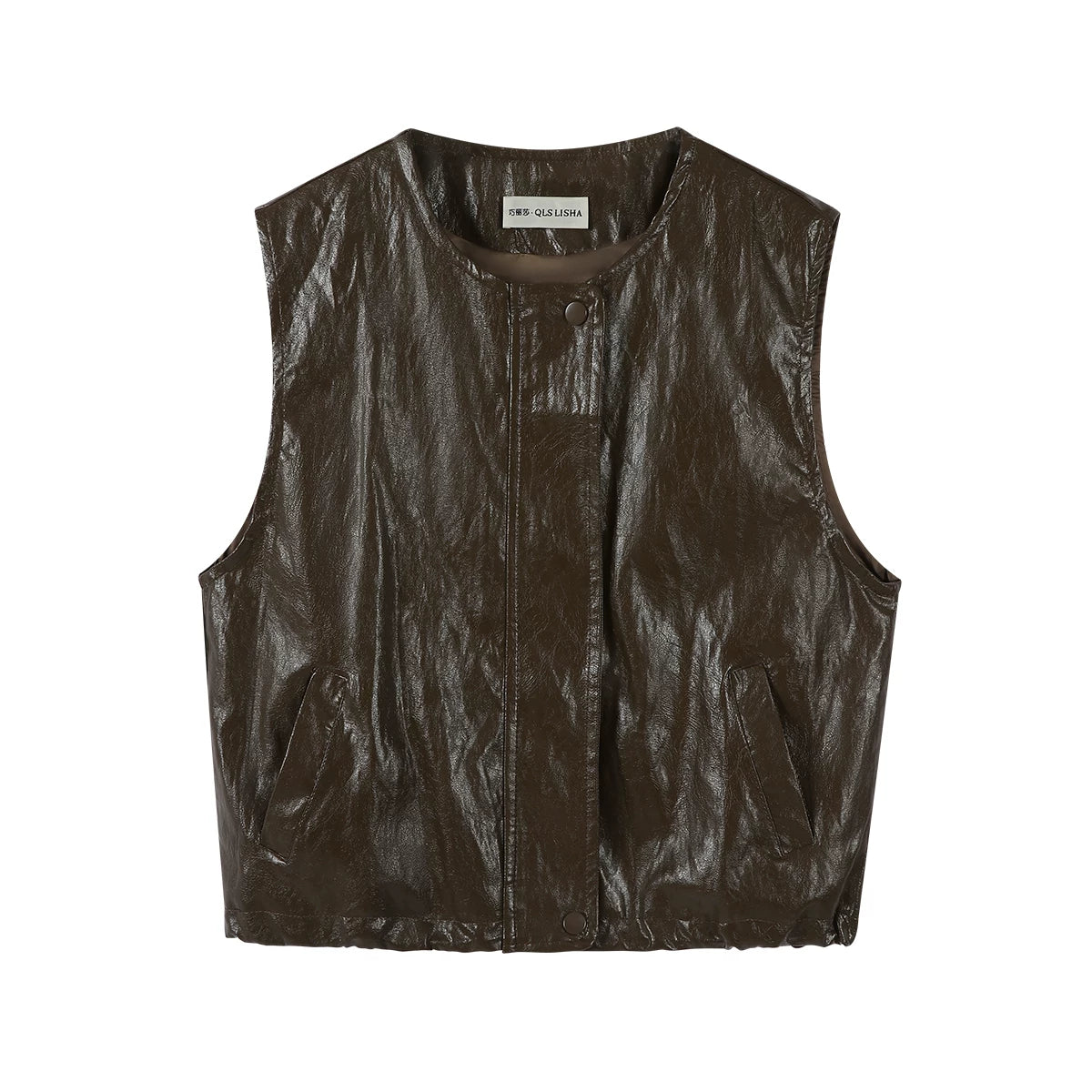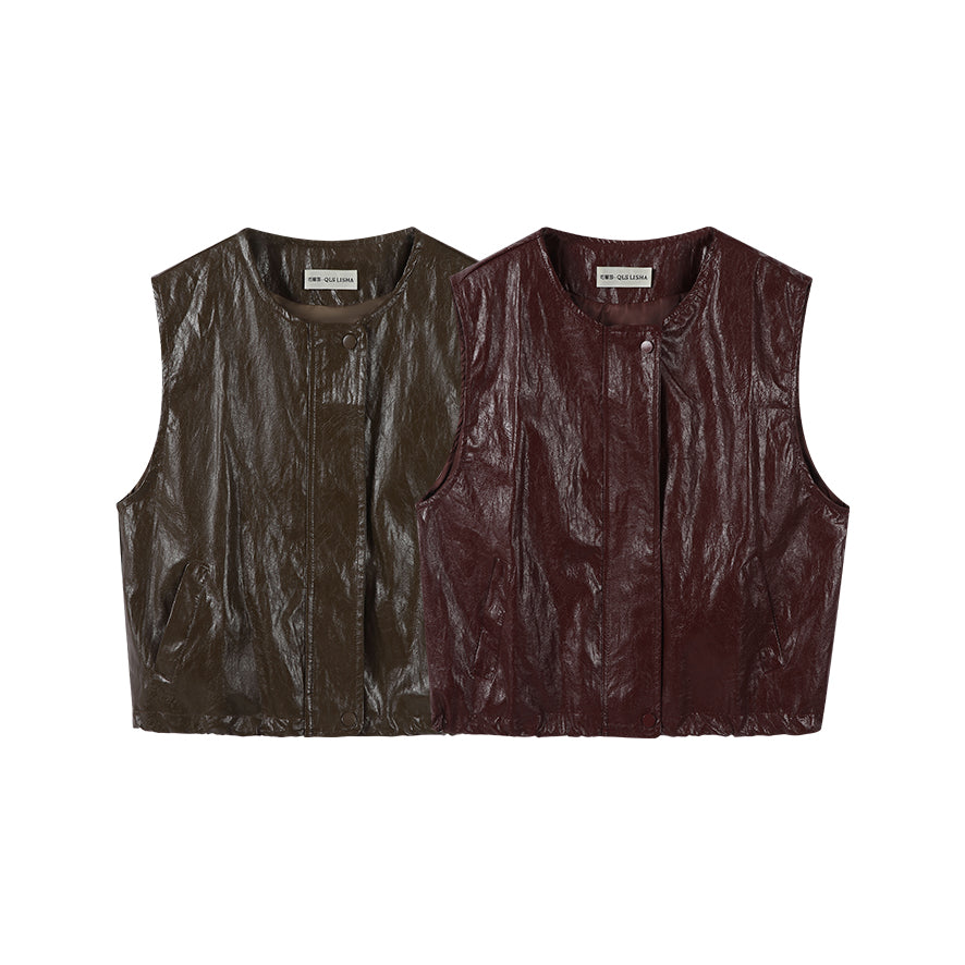 Chola Lisa Erkən Payız Modası Qolsuz Dəri Gödəkçə Qadın Dizaynı Unikal Dəyirmi Yaxalı Boş Üst