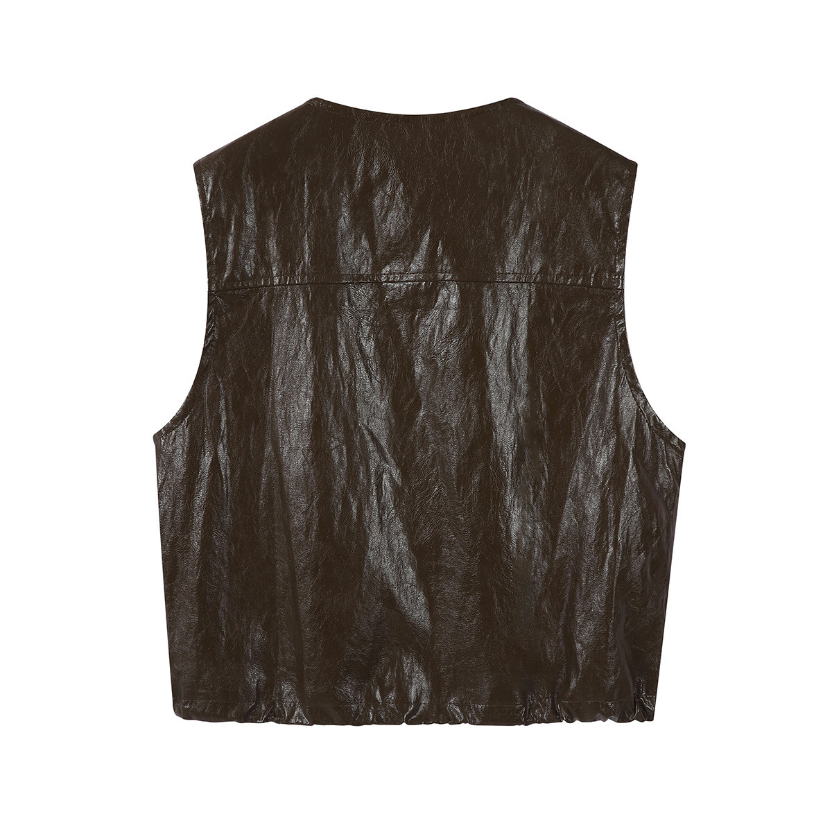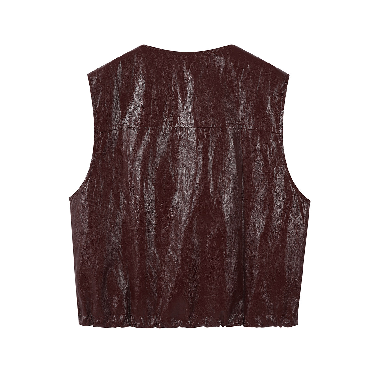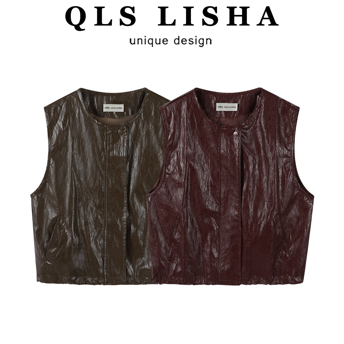 Chola Lisa Erkən Payız Modası Qolsuz Dəri Gödəkçə Qadın Dizaynı Unikal Dəyirmi Yaxalı Boş Üst