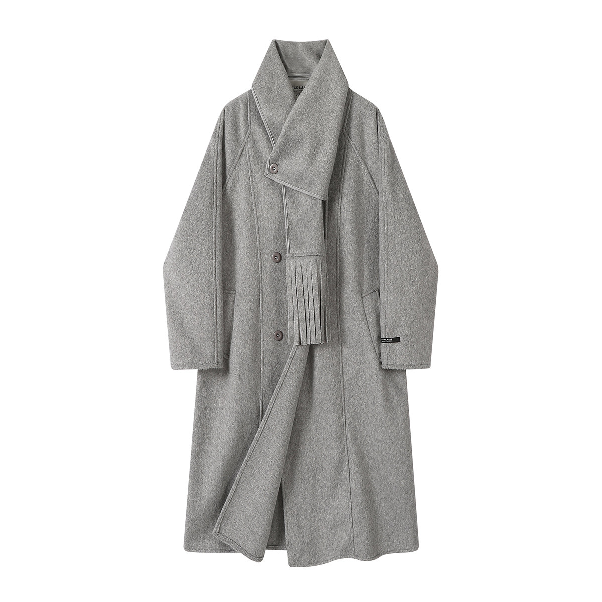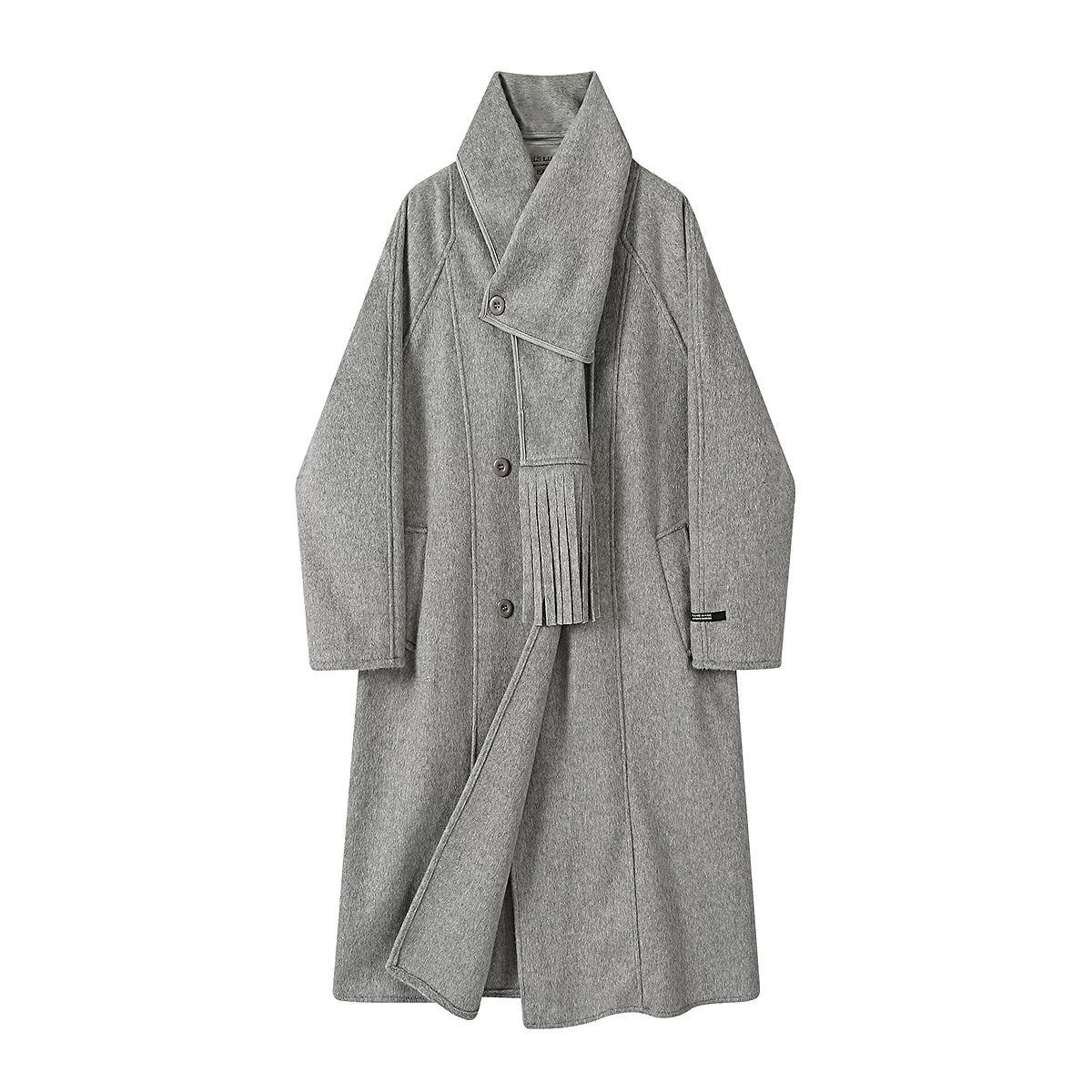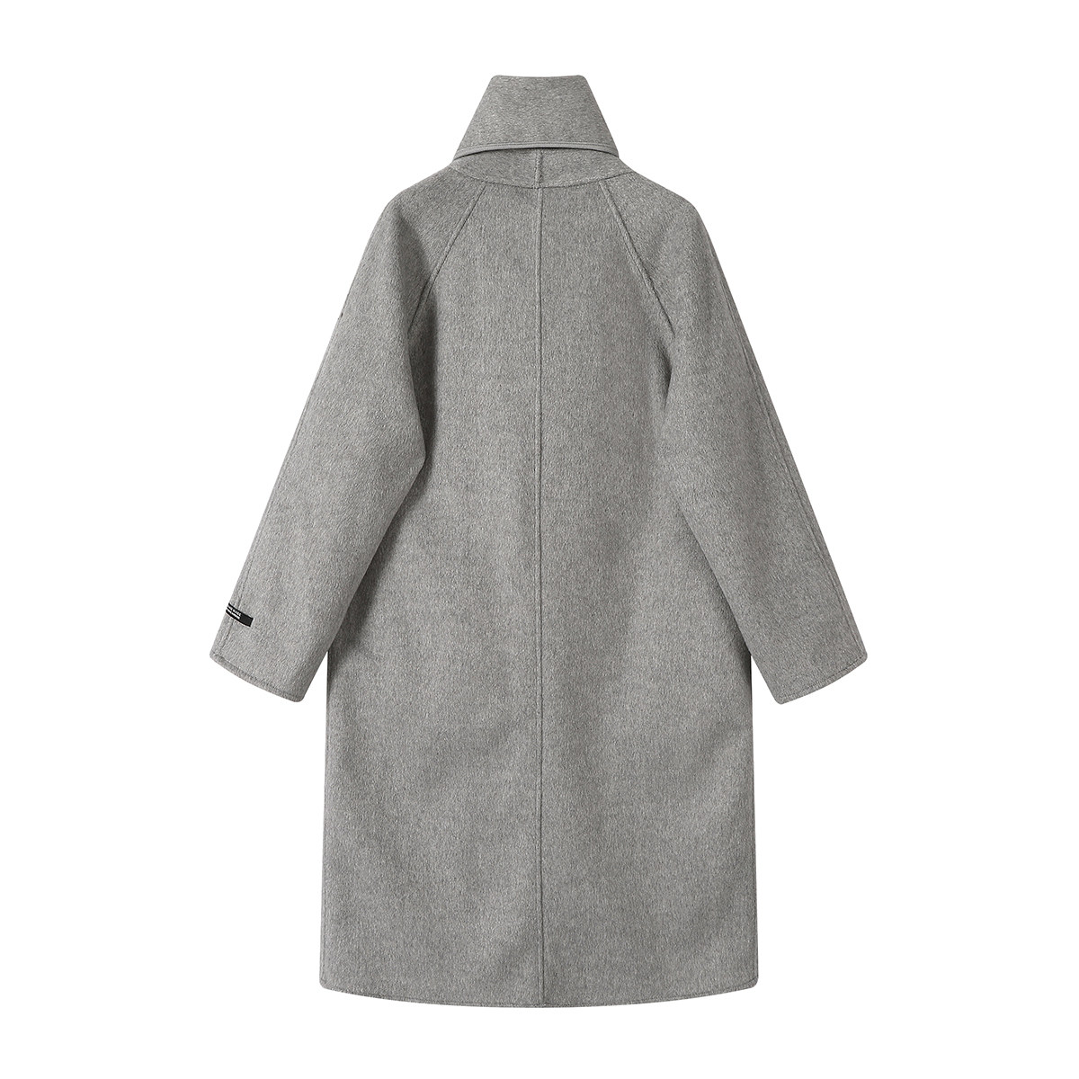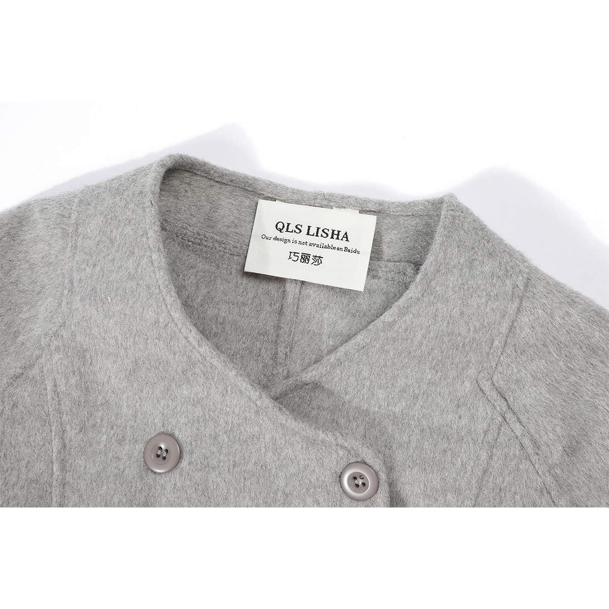 Chola Lisa Koreya üslubunda qadınlar üçün rahat və zərif boz yun palto, payız və qış üçün super gözəl uzun yun palto