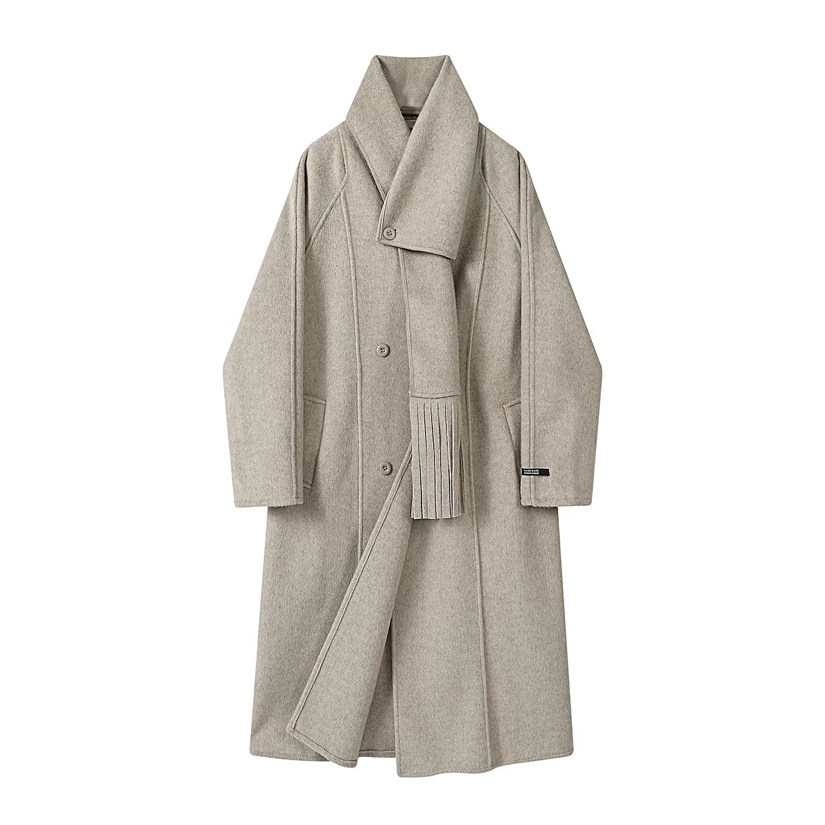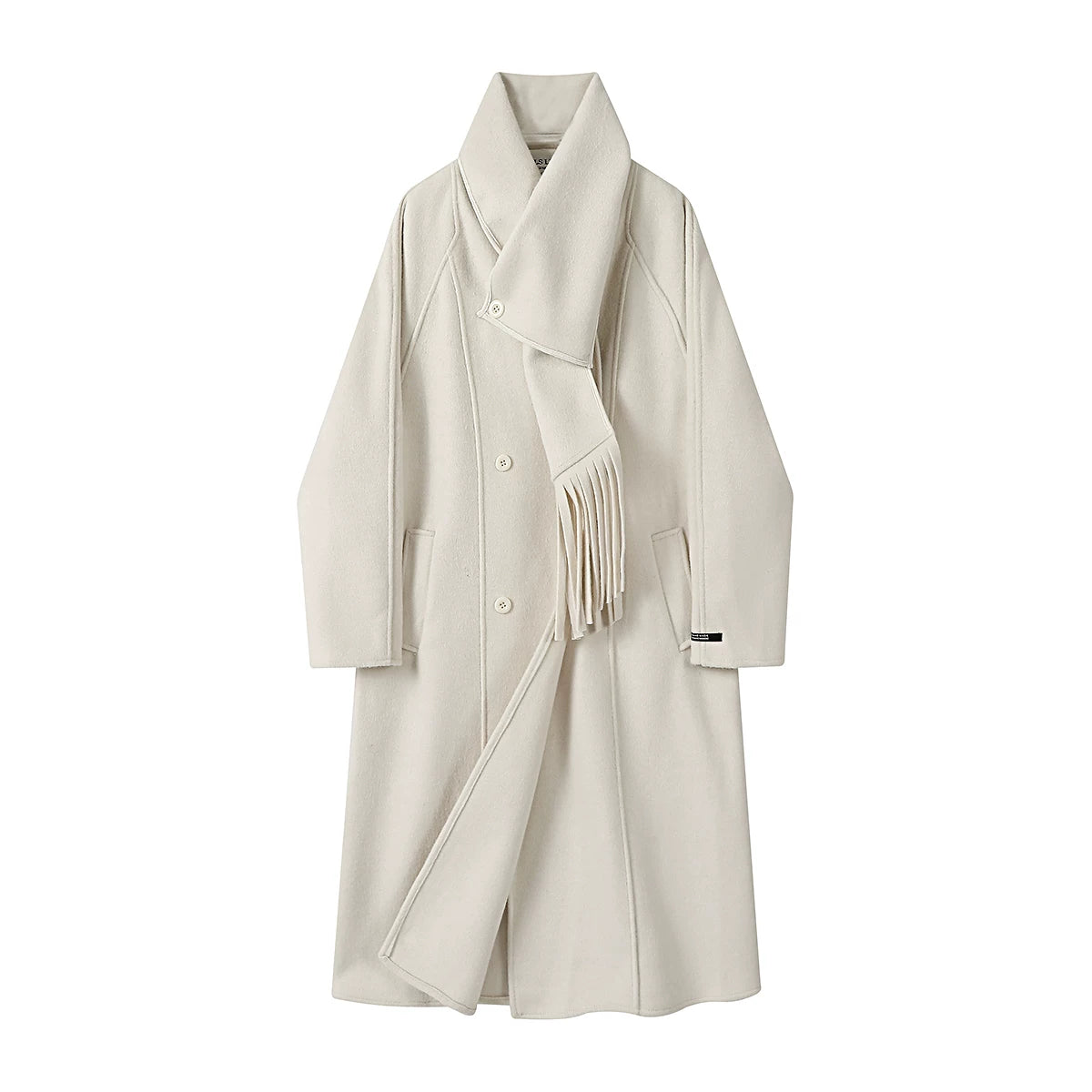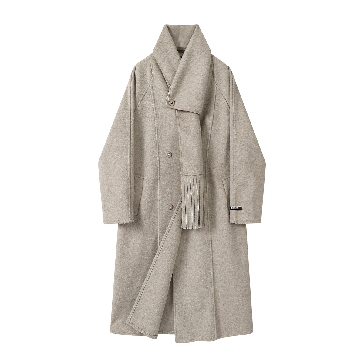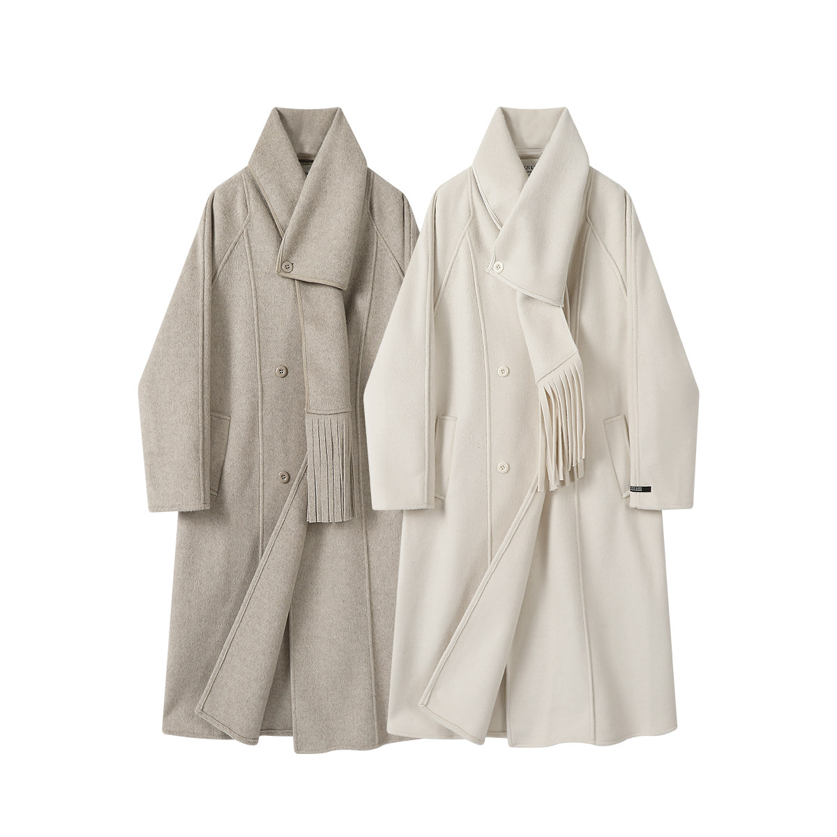 Chola Lisa Koreya üslubunda qadınlar üçün rahat və zərif boz yun palto, payız və qış üçün super gözəl uzun yun palto
