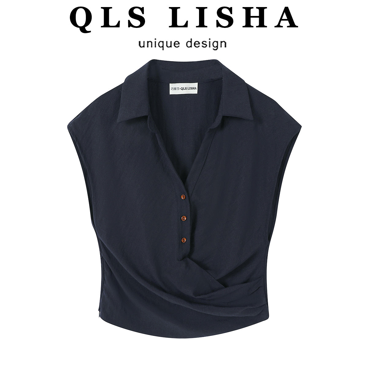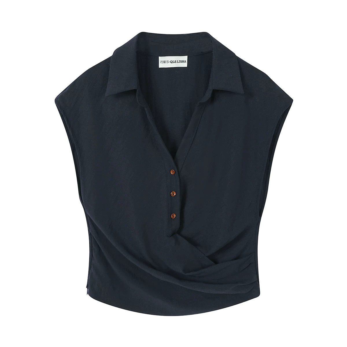 Chola Lisa Moda Bütöv Rəngli V-yaxalı Köynək Qadınlar üçün Yüksək Səviyyəli Lüks Gənc Qolsuz Fransız Üslublu Yay Topu