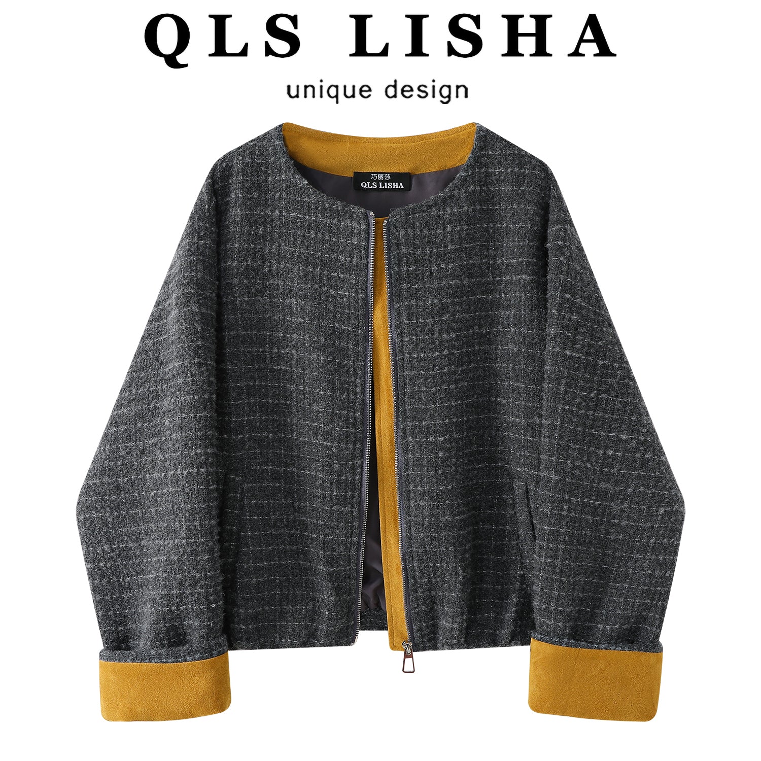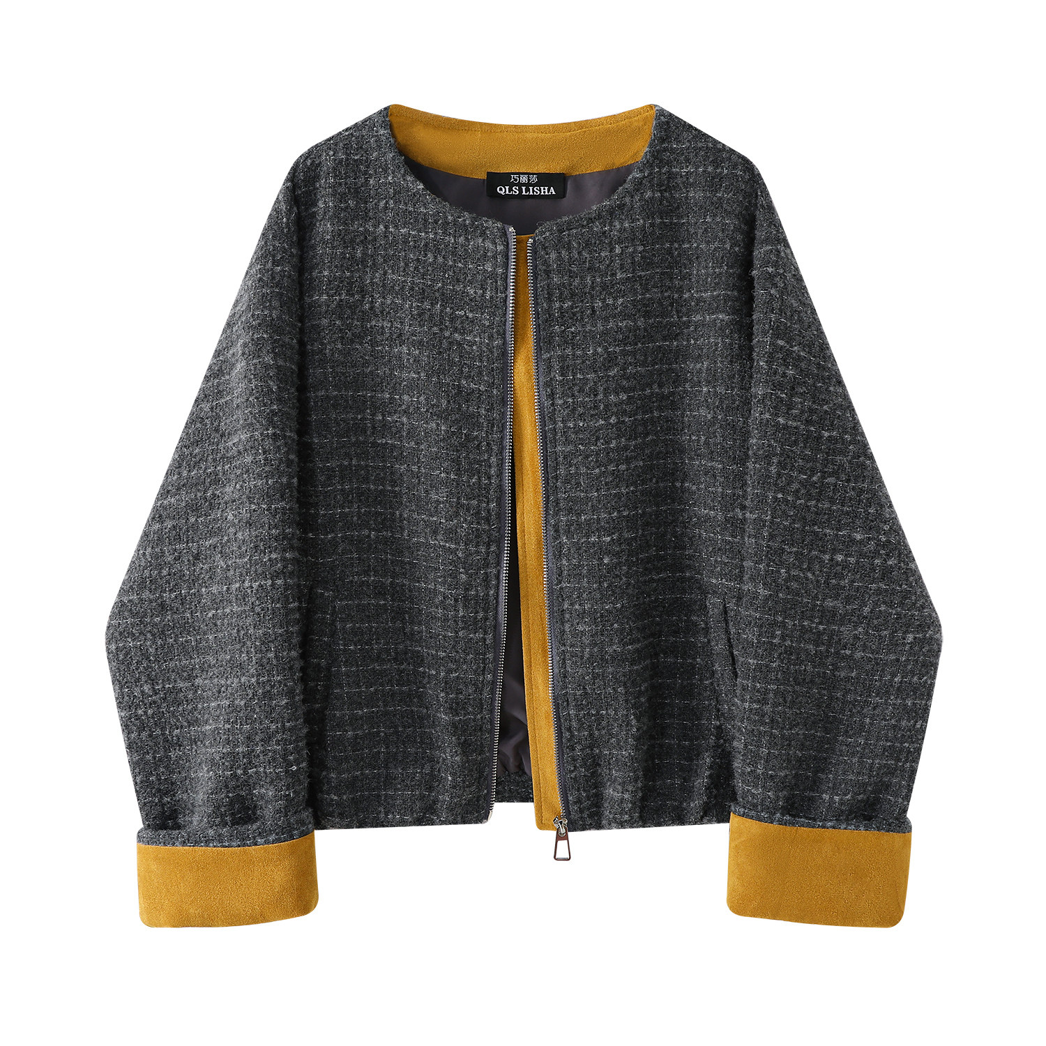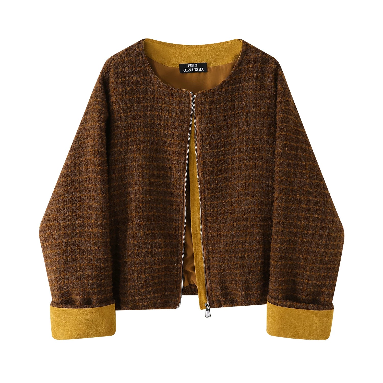 Chola Lisa-nın dizayndan ilhamlanmış rəngarəng retro qısa gödəkçəsi, payız və qış üçün çox yönlü və gündəlik Koreya üslubunda yun top.
