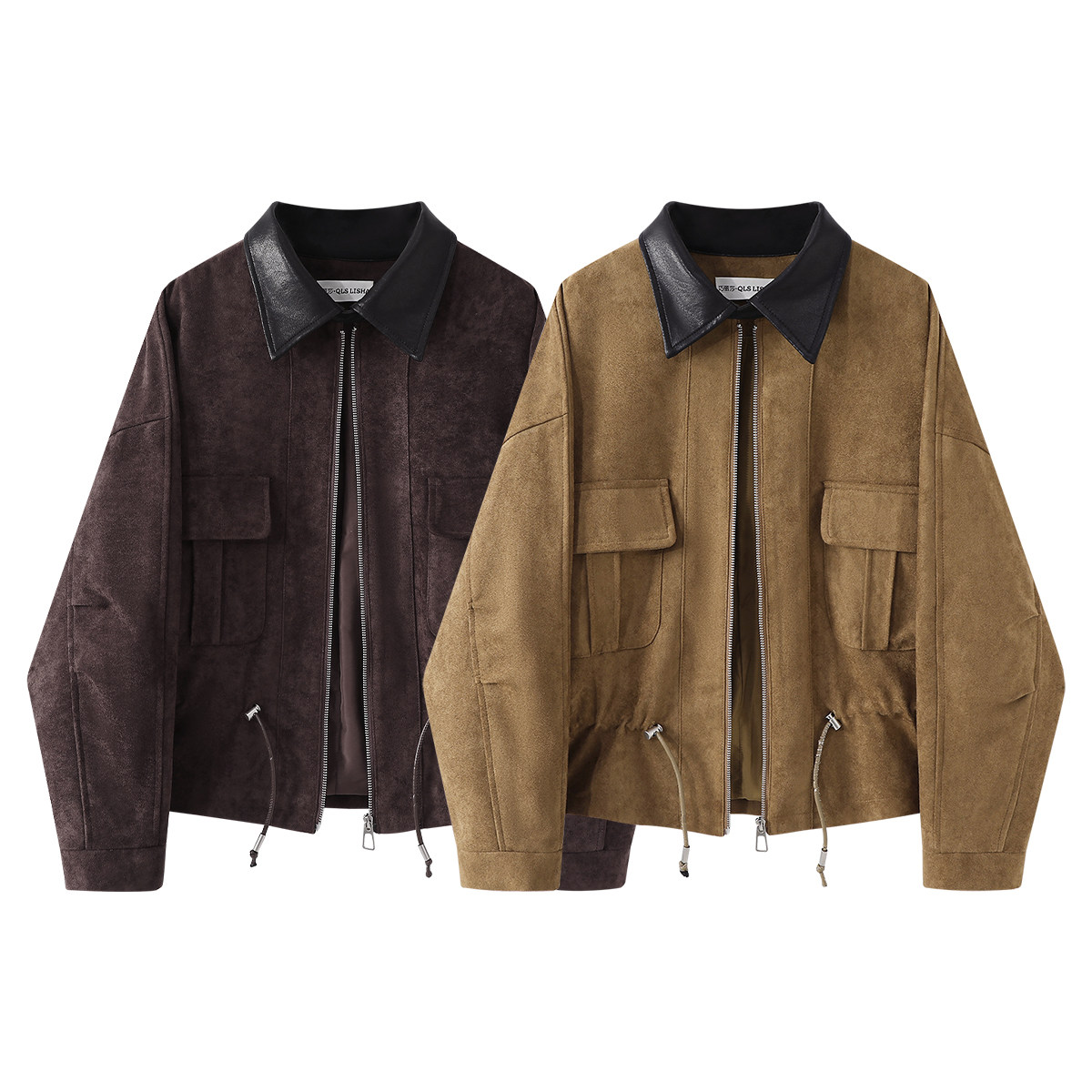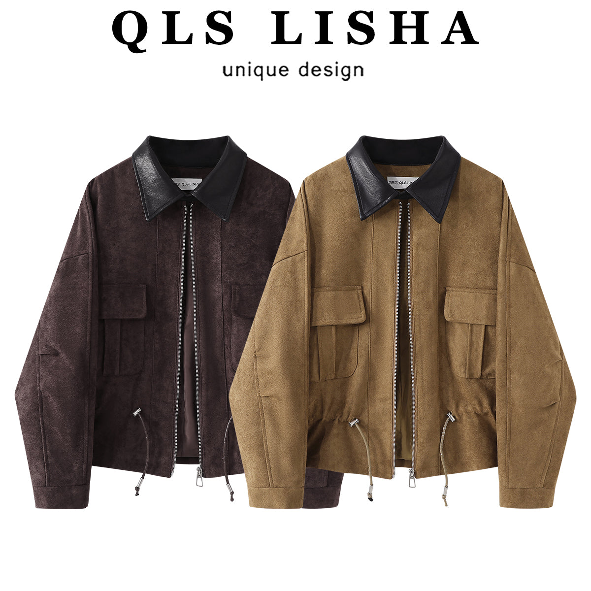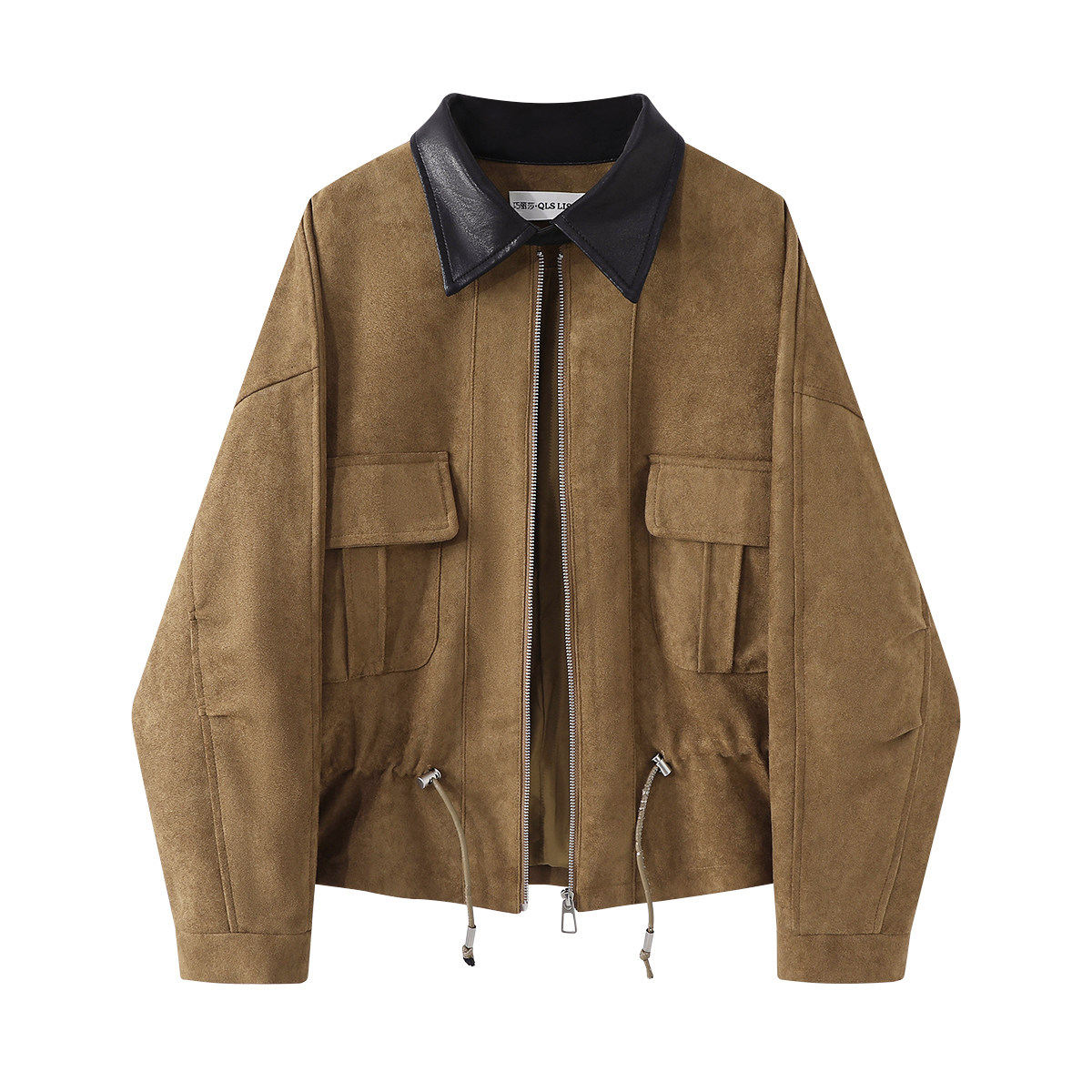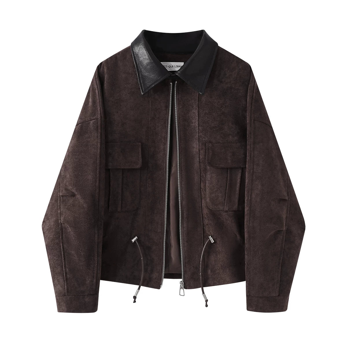 Chola Lisa-nın qadınlar üçün şık yamaqlı Koreya retro boş zamşa paltosu, payız zərif yaxa gödəkçəsi.