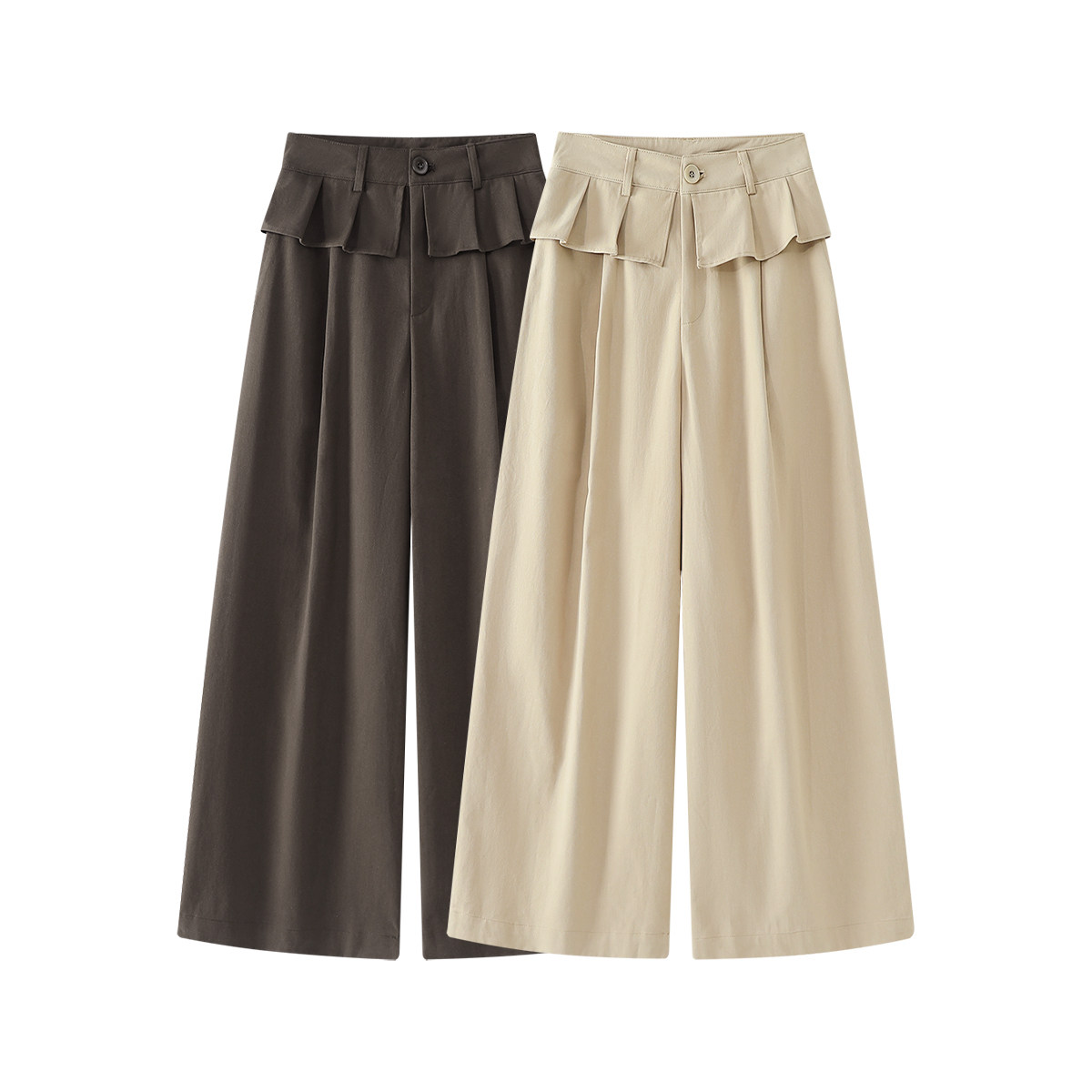 Chola Lisa-nın şık iki hissəli, ucu açıq gündəlik şalvarları yaz və payız üçün idealdır. Onlar yüksək belli, düz və enli ayaqlıdırlar.
