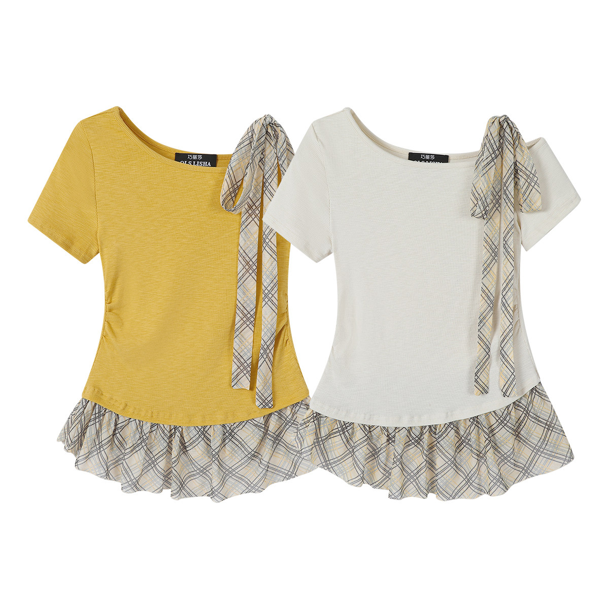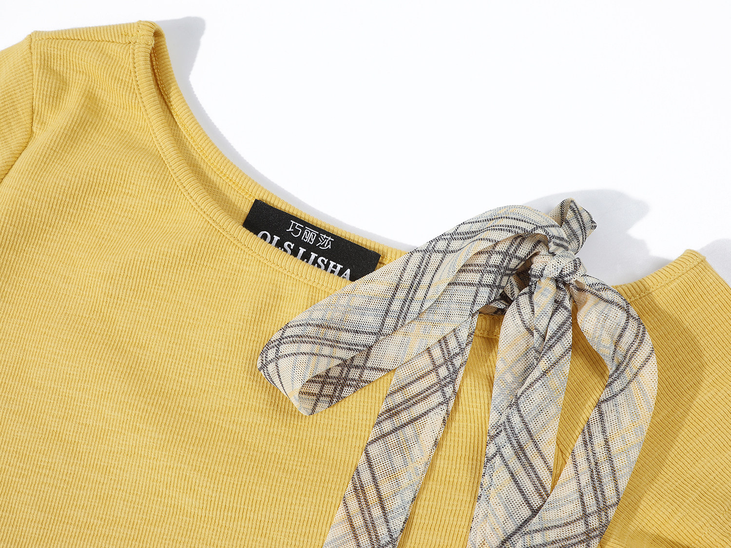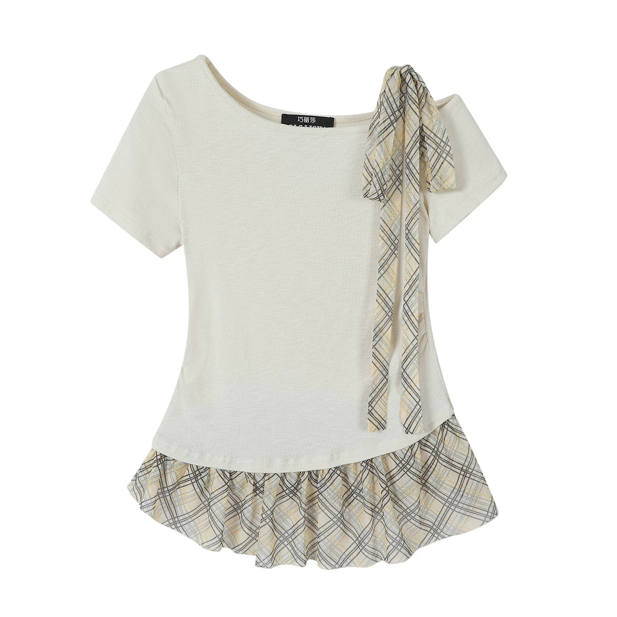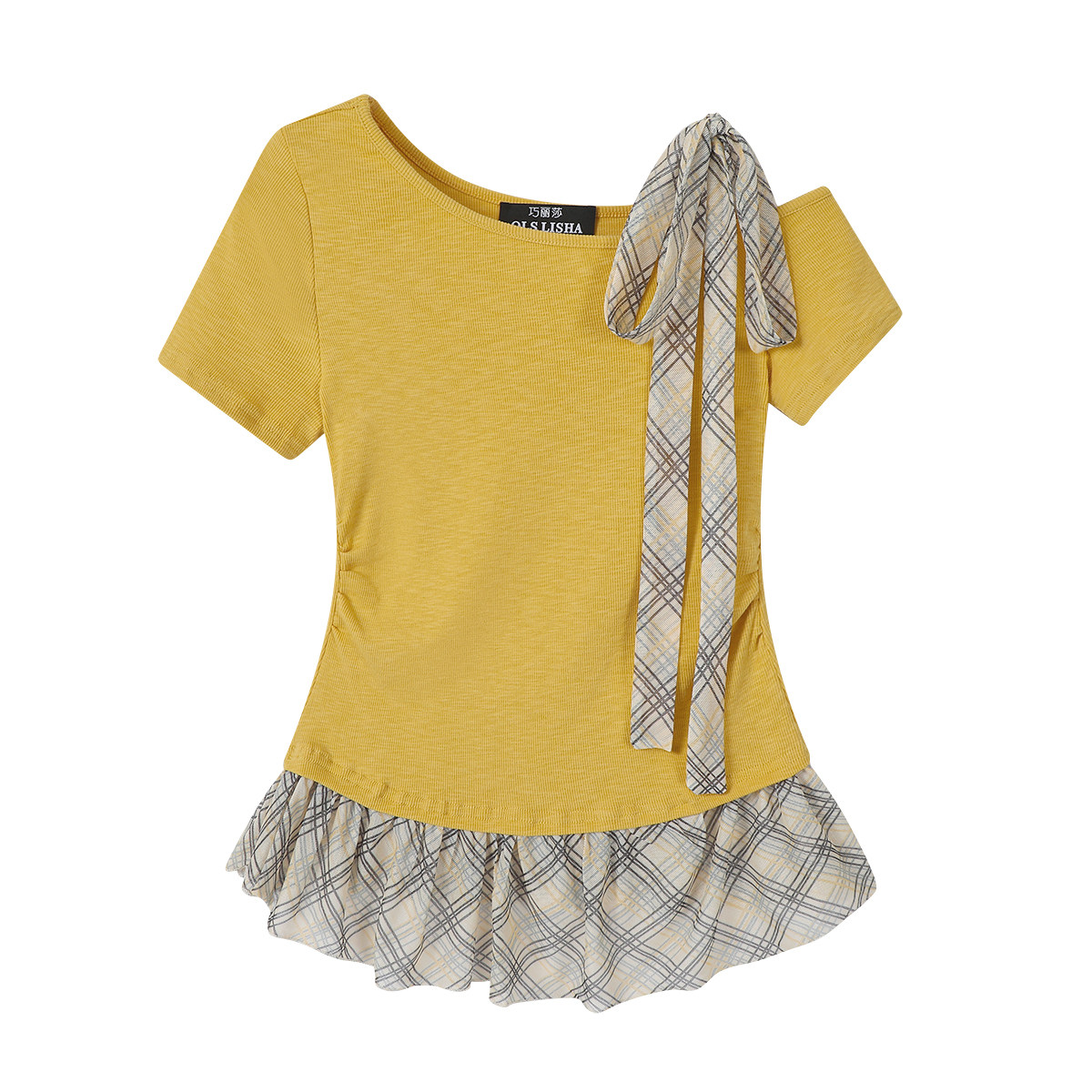 Chola Lisa qısaqol qadın üçün unikal dizaynlı qalstuklu köynək, Koreya üslubunda, incə, içi boş, çiyinsiz top
