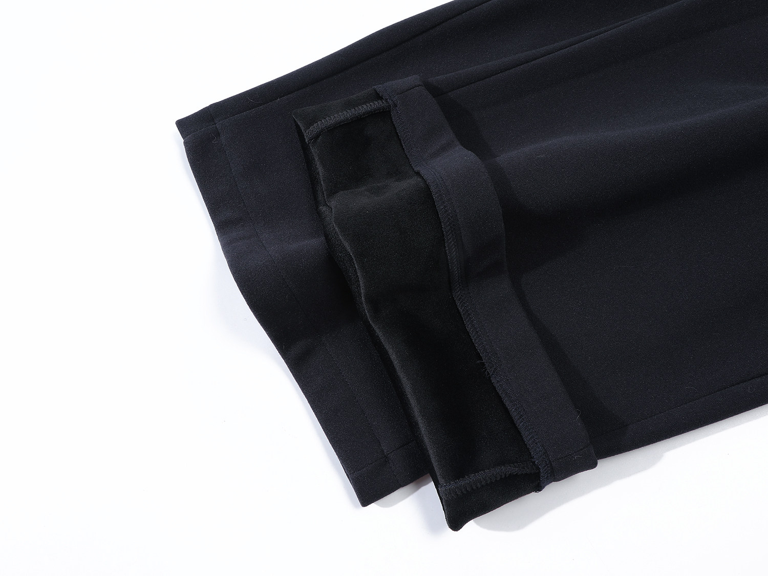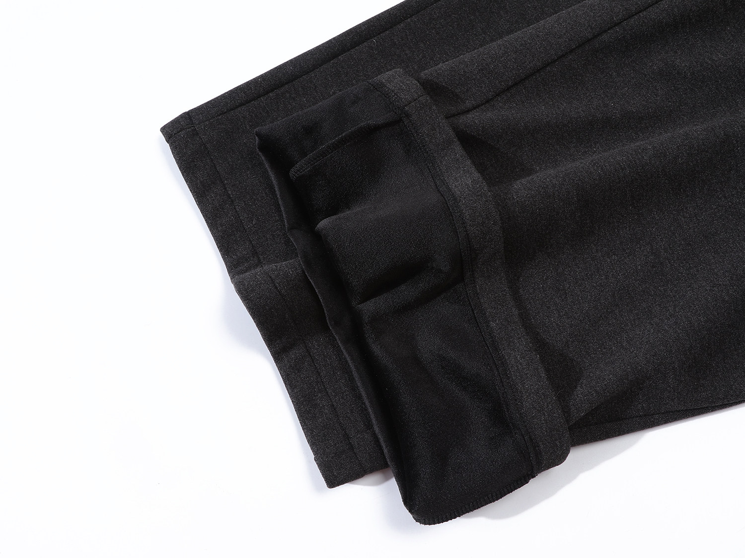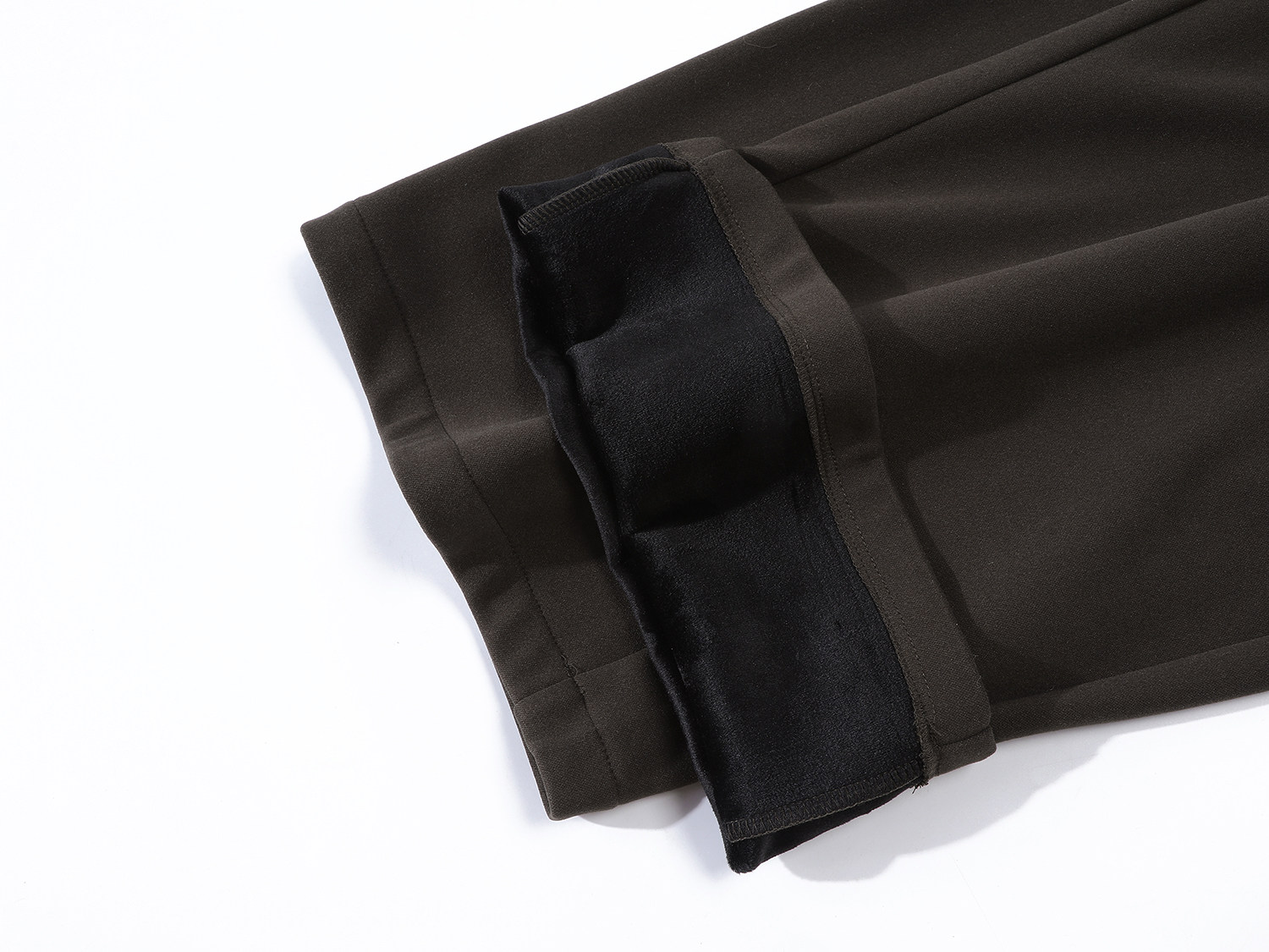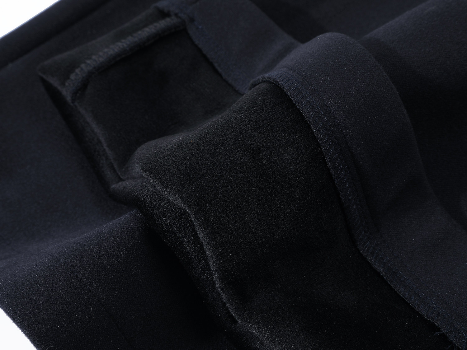 Chola Lisa Tünd Göy Yunlu Yun Astarlı Düz Ayaqlı Qadın Gündəlik Şalvarı, Koreya Üslubunda, Rahat və Qalın, Payız/Qış