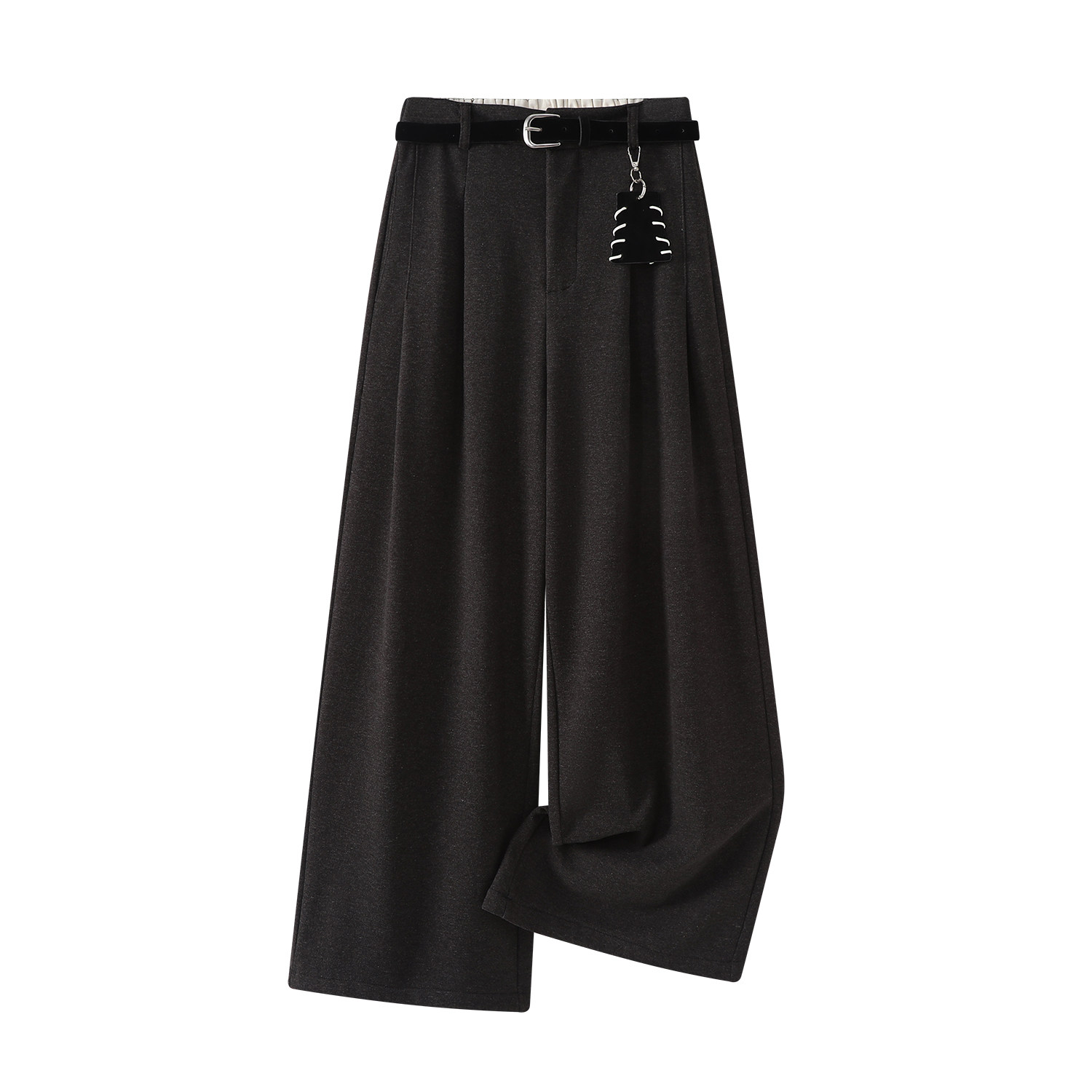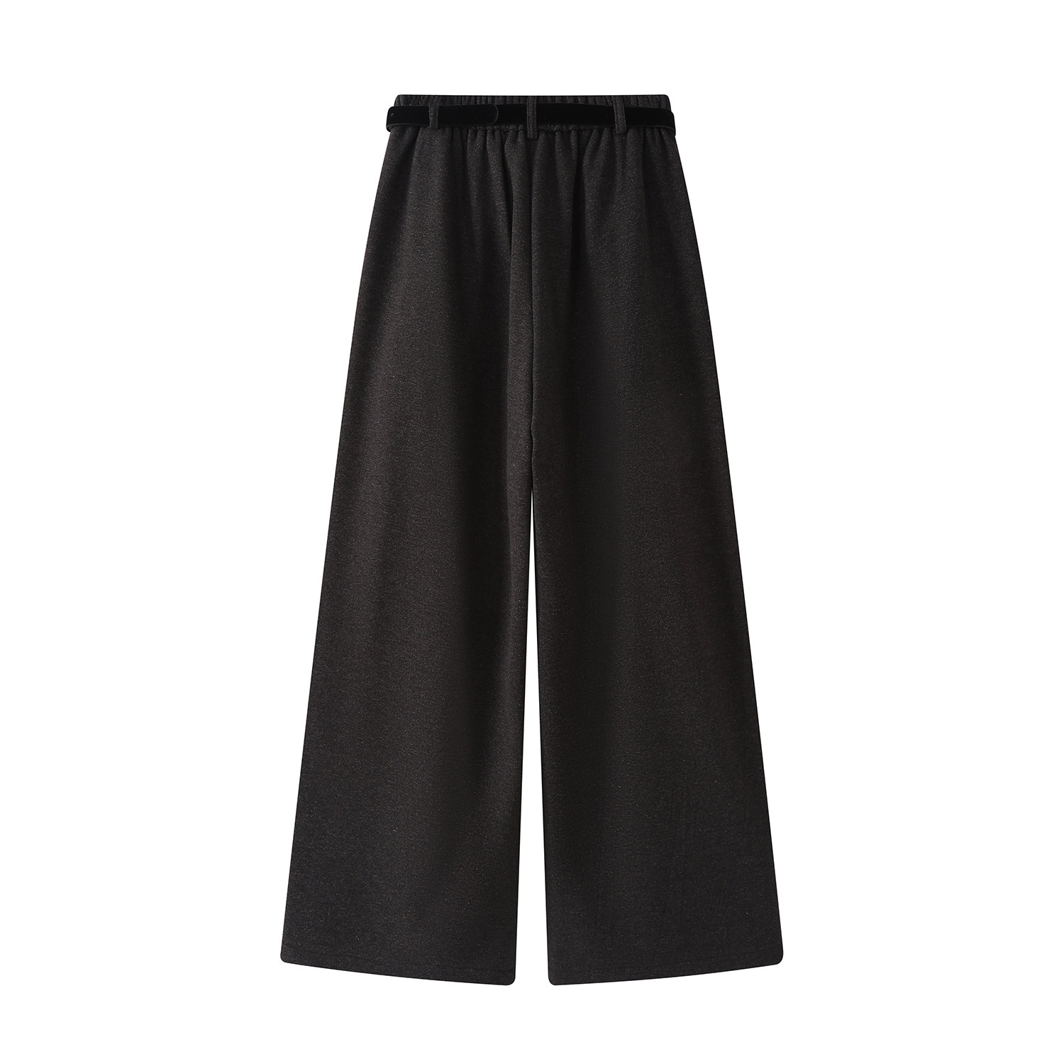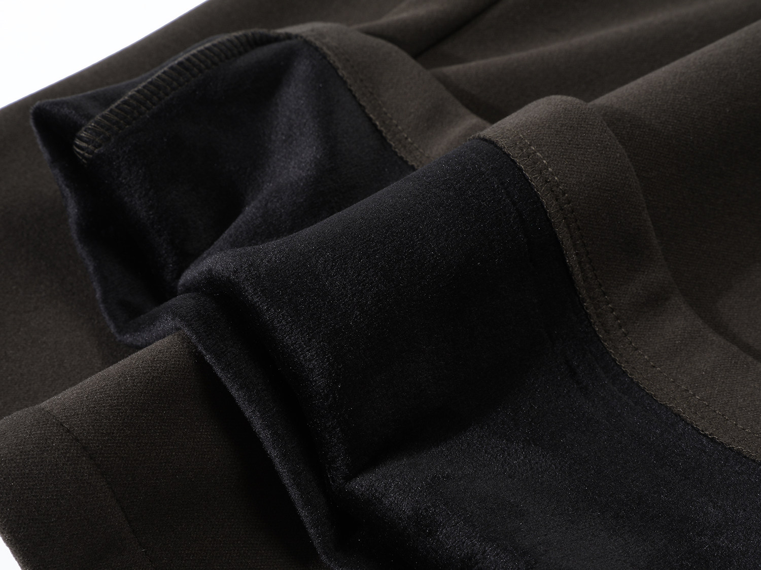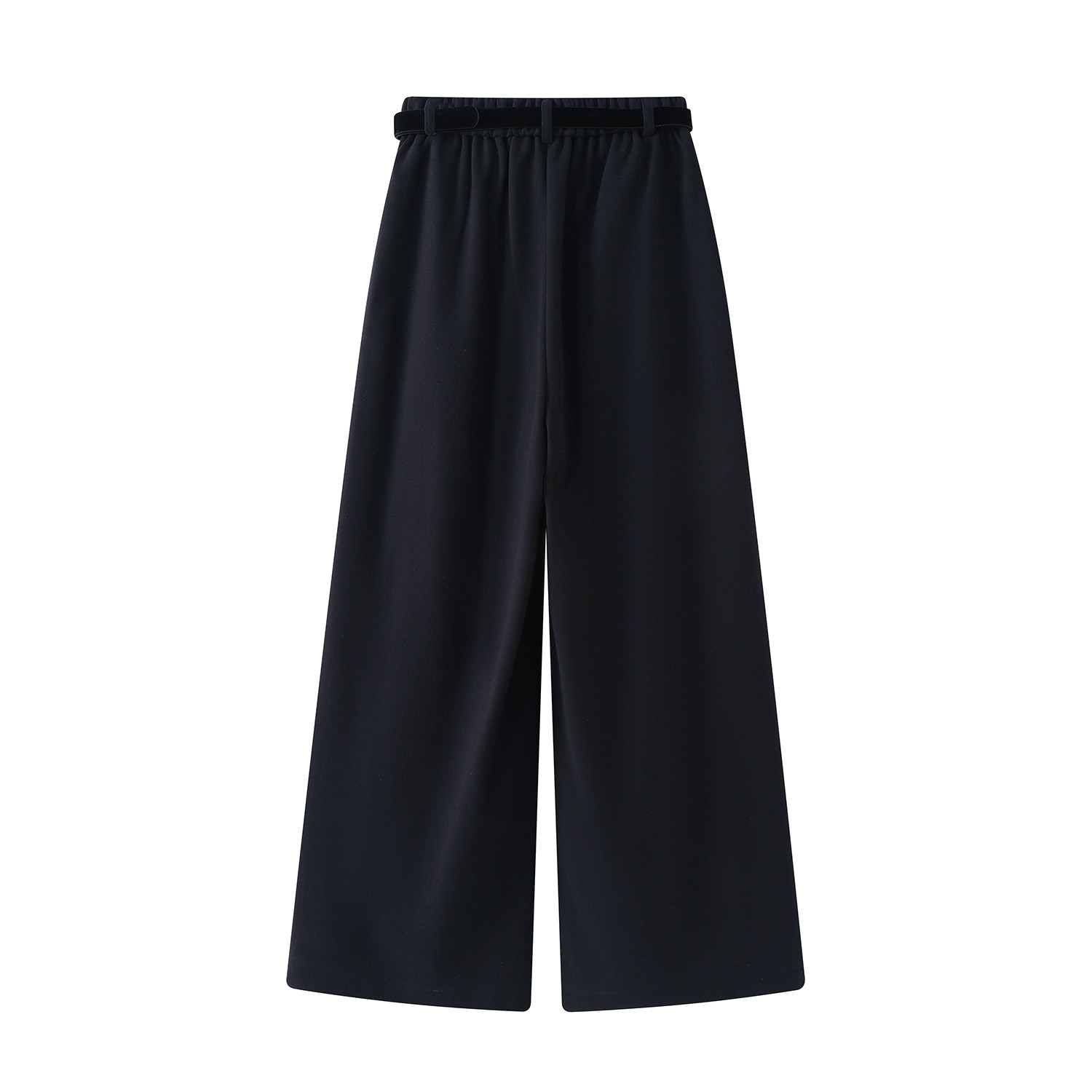 Chola Lisa Tünd Göy Yunlu Yun Astarlı Düz Ayaqlı Qadın Gündəlik Şalvarı, Koreya Üslubunda, Rahat və Qalın, Payız/Qış