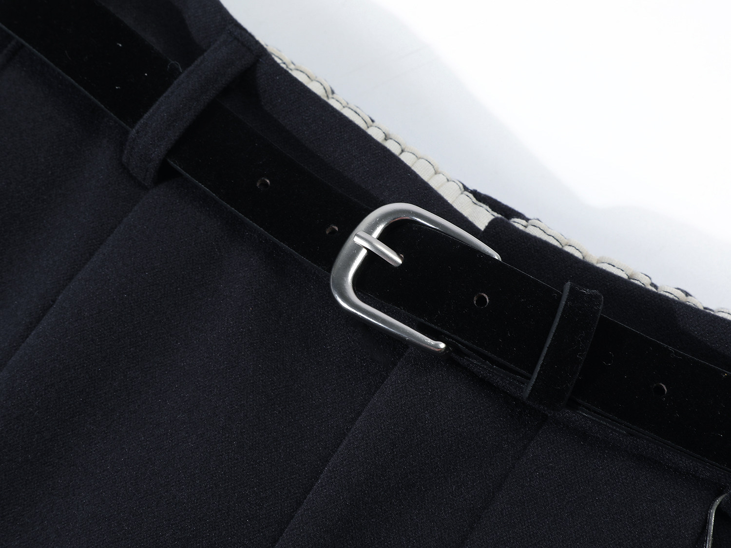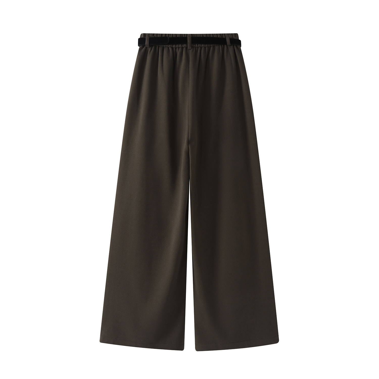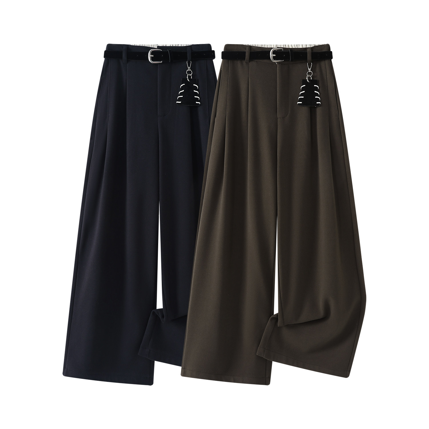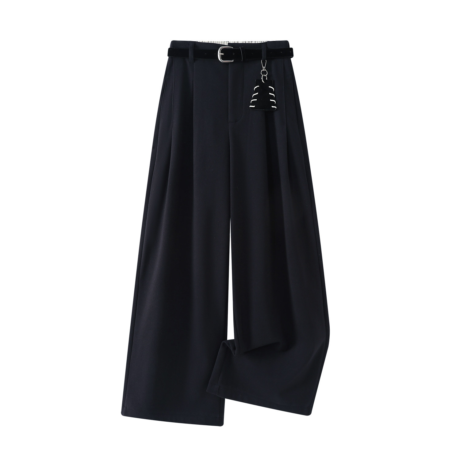 Chola Lisa Tünd Göy Yunlu Yun Astarlı Düz Ayaqlı Qadın Gündəlik Şalvarı, Koreya Üslubunda, Rahat və Qalın, Payız/Qış