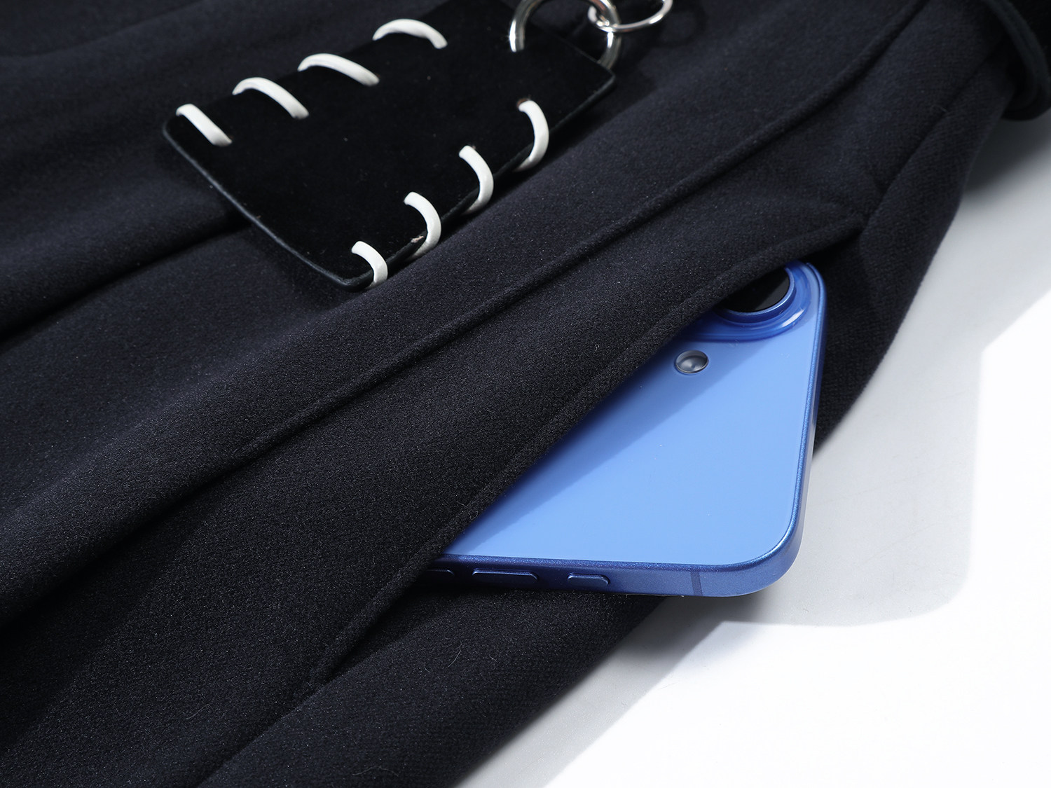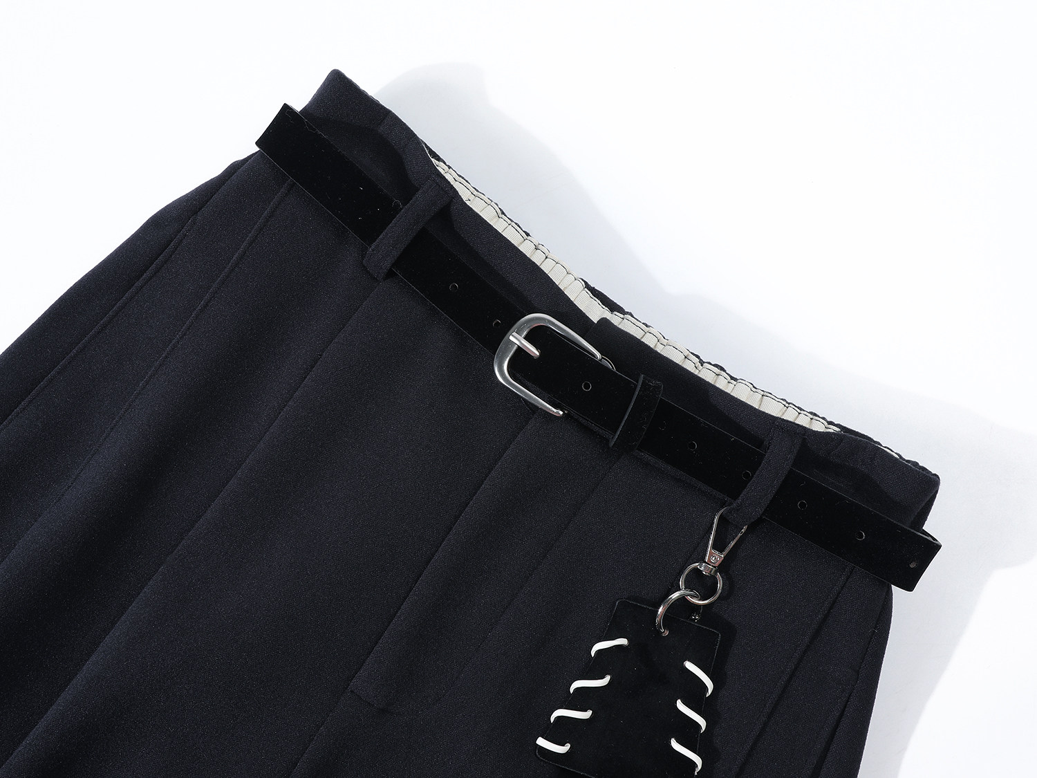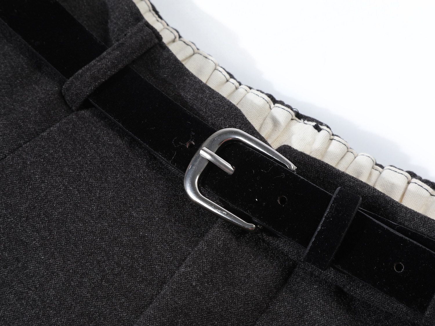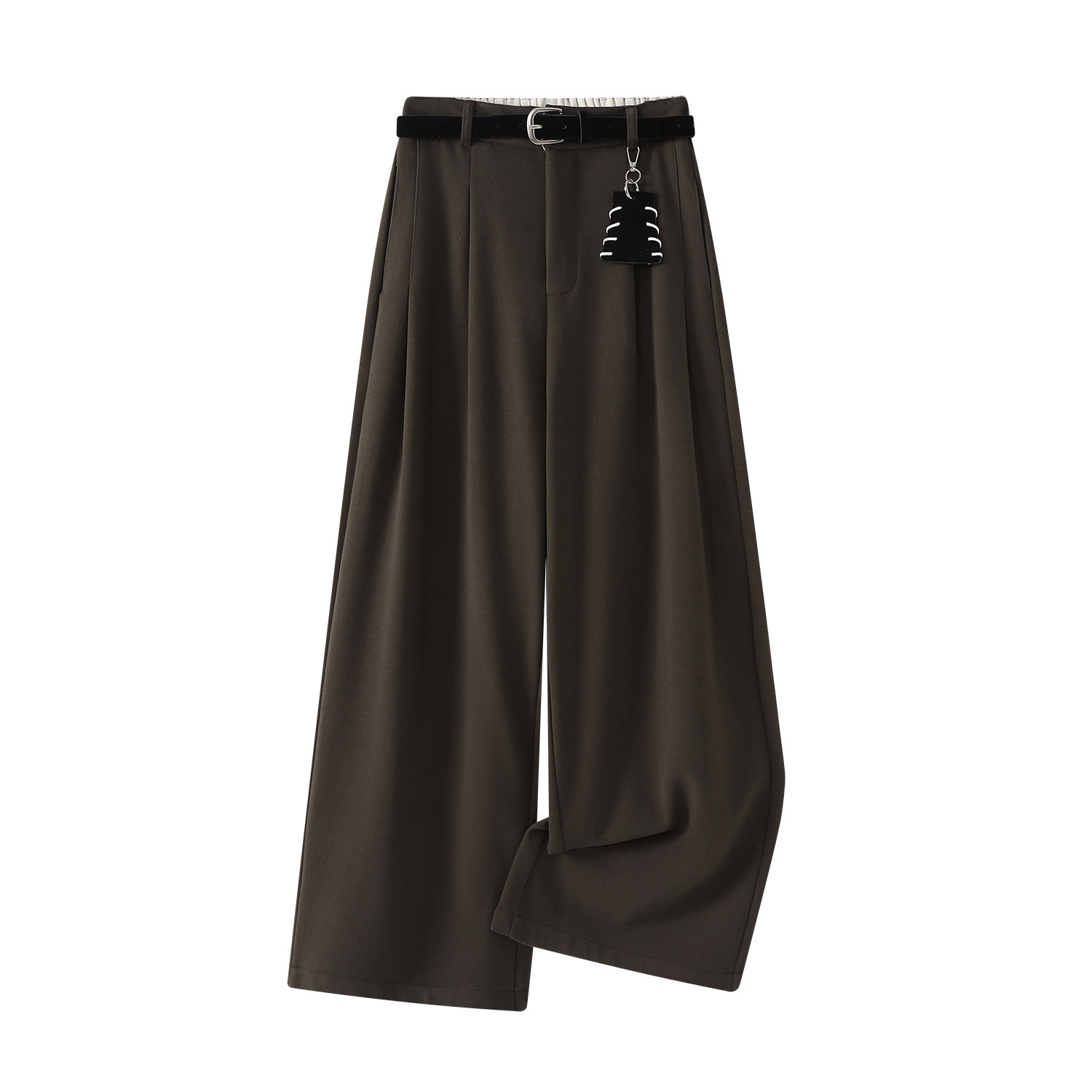 Chola Lisa Tünd Göy Yunlu Yun Astarlı Düz Ayaqlı Qadın Gündəlik Şalvarı, Koreya Üslubunda, Rahat və Qalın, Payız/Qış