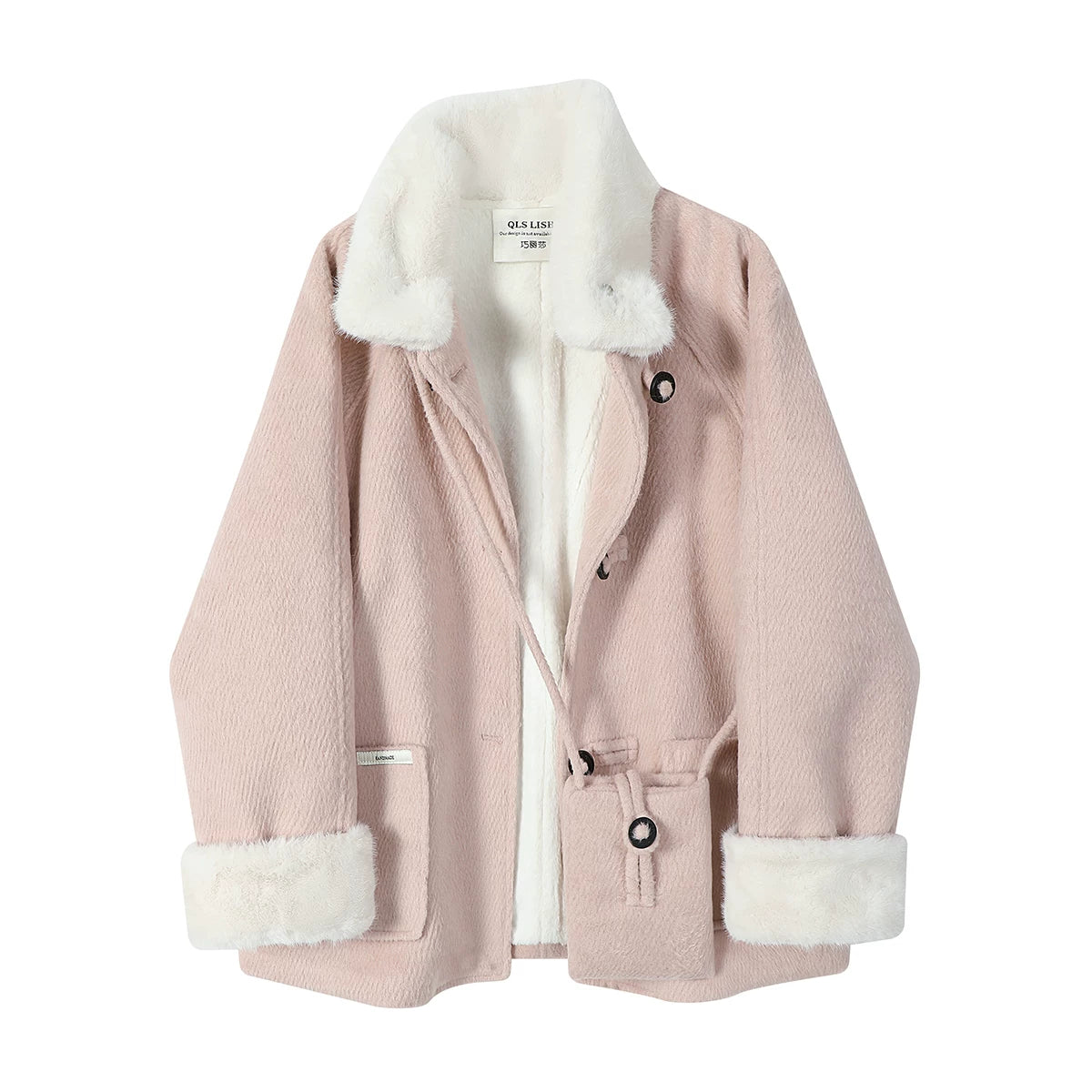 Chola qadınlar üçün qısa qırmızı quzu yun palto, payız və qış, yun astarlı və qalınlaşdırılmış, gözəl və şık yun palto
