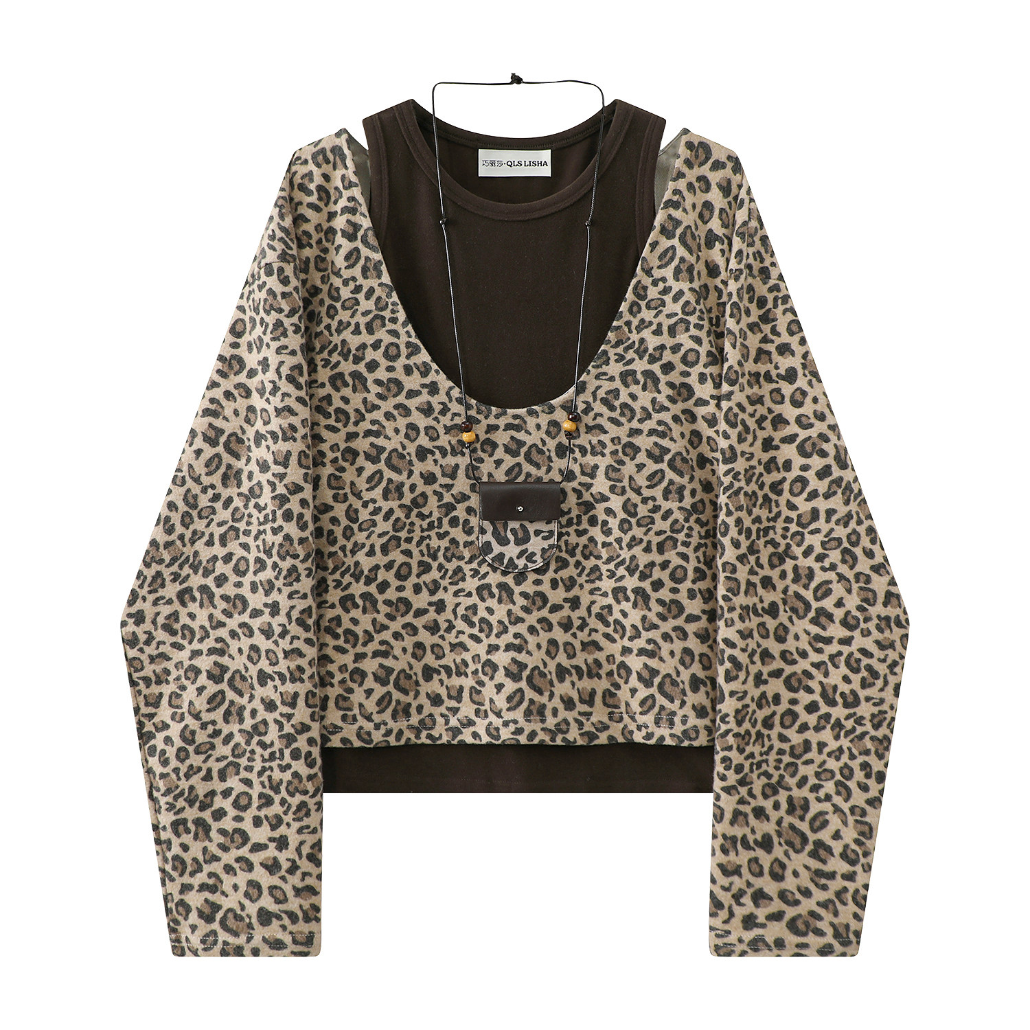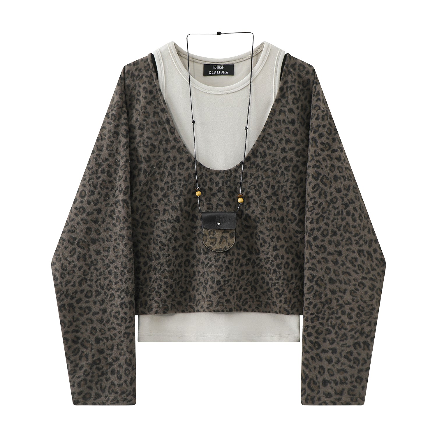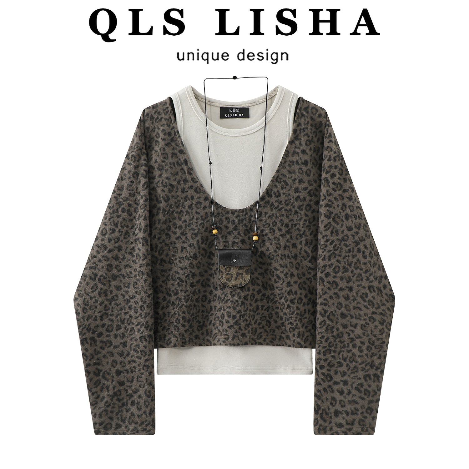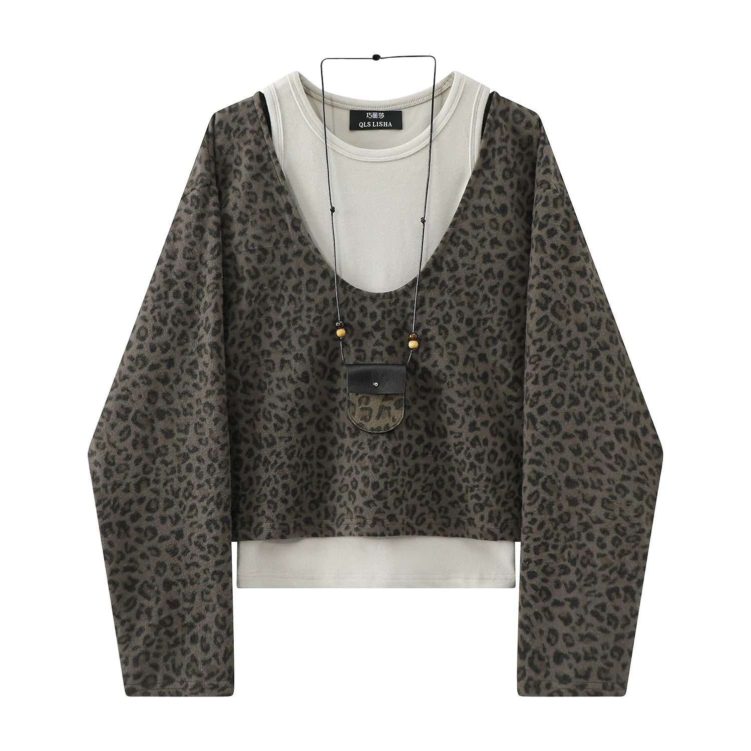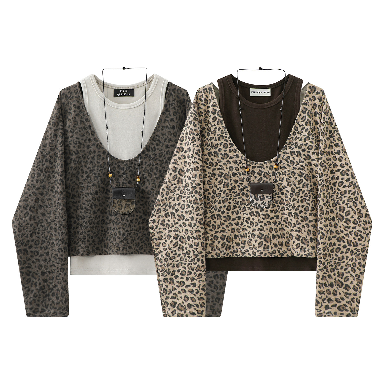 Cholisa 2025 Super Populyar İki Parçalı Qadın Geyimləri Baza Jilet Yüksək Ucuz Bəbir Naxışlı Üst Koreya Qəşəng Payız Dəsti