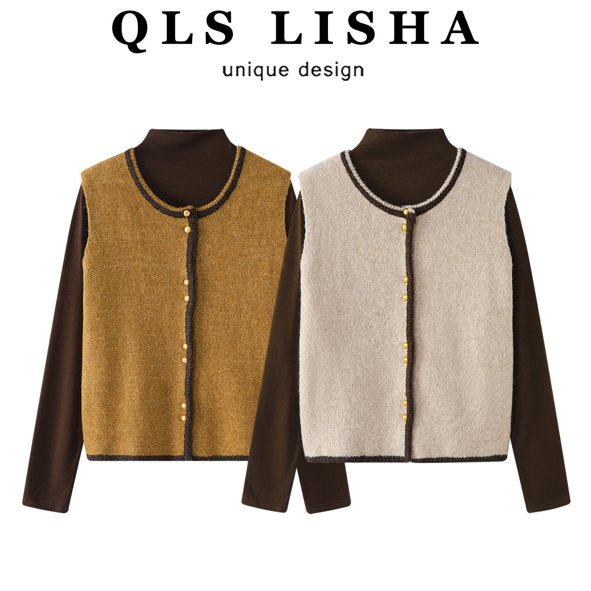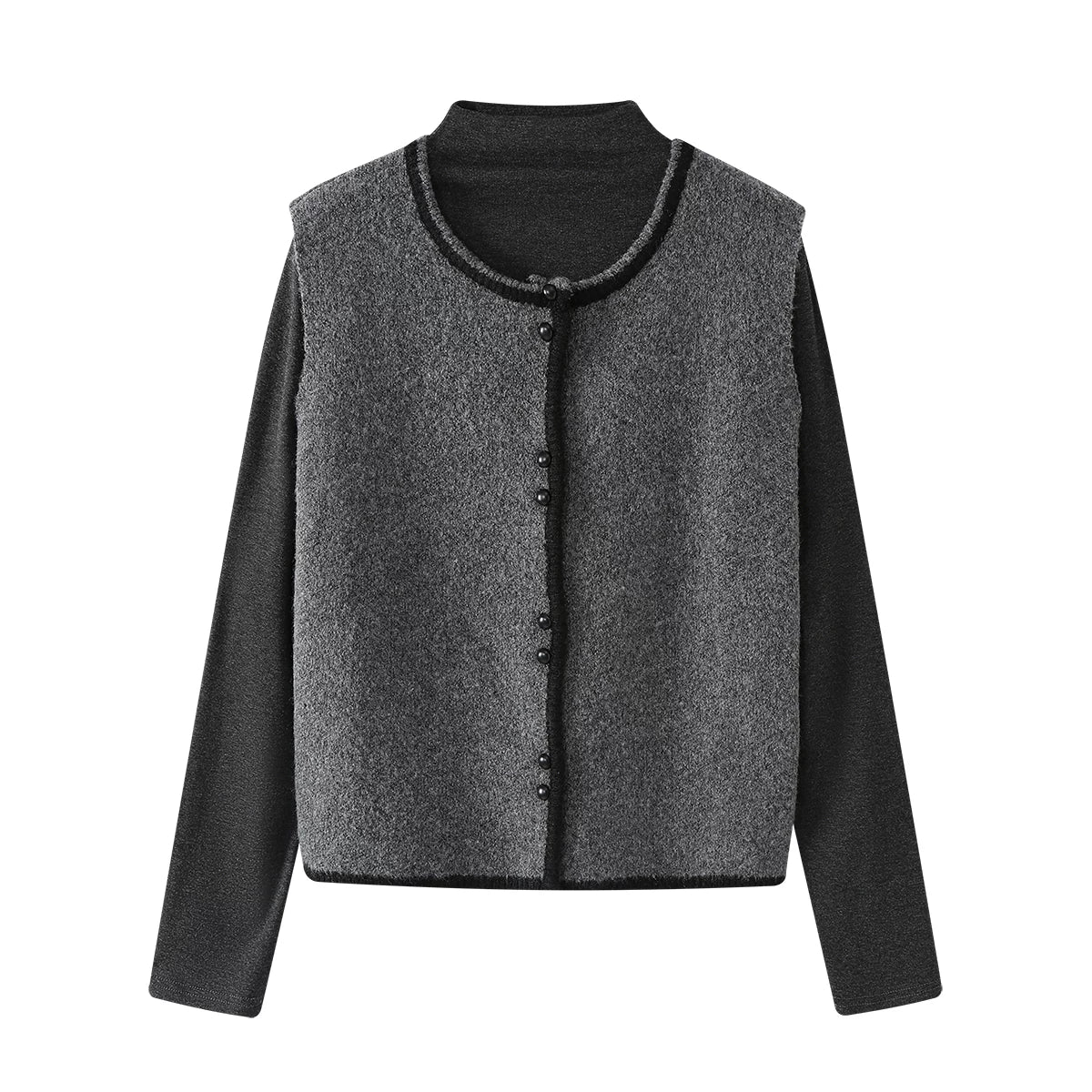 Cholisa Chanel üslubunda sviter jilet dəsti, yaz və payız qadın geyimləri, 2026 yeni stil, hündür yaxalı trikotaj iki hissəli dəst