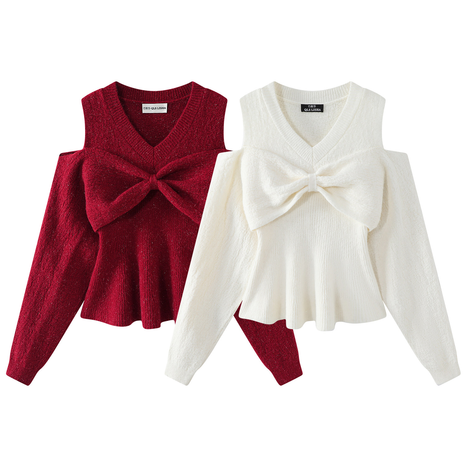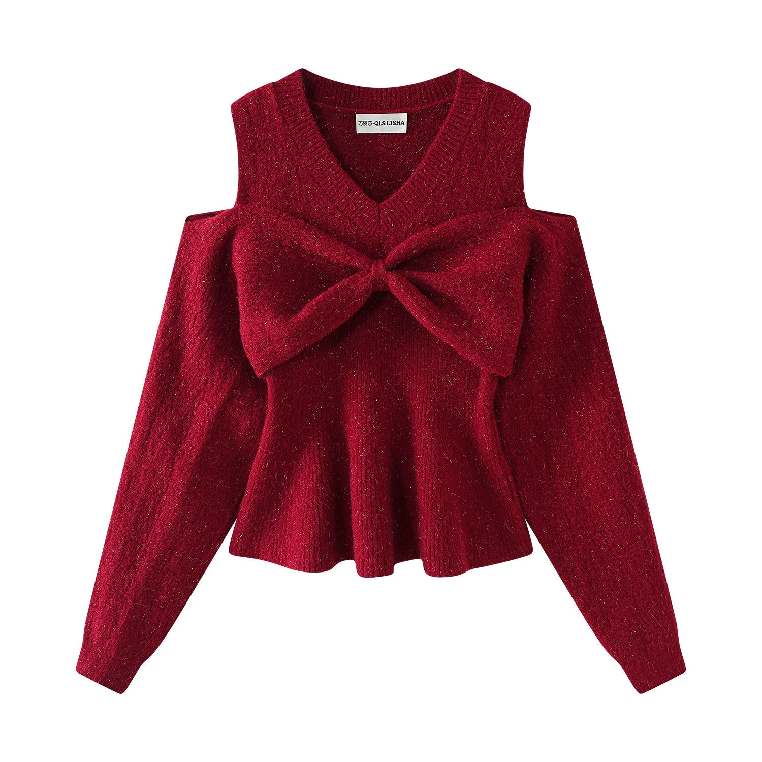 Cholisa-dan qadınlar üçün unikal və incə, super gözəl qırmızı Milad sviteri, qalınlaşmış payız və qış, Koreya üslubunda bantlı düyünlü çiyinli köynək