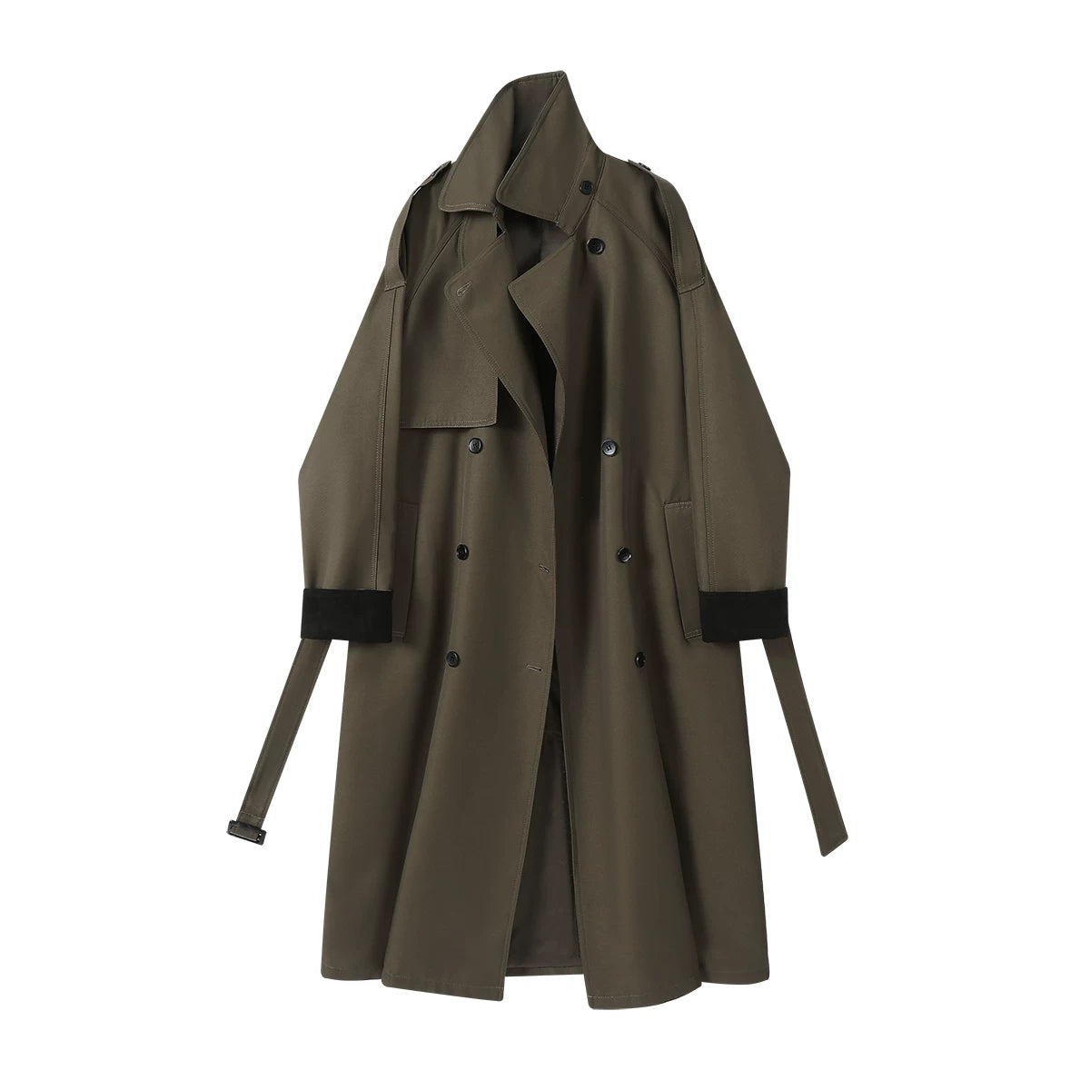 Cholisa Khaki Gündəlik Trench Palto, Uzun və Hündür Stil, Qadın Payız Üst Geyimləri, Yüksək Seçimli və Dəbli Top