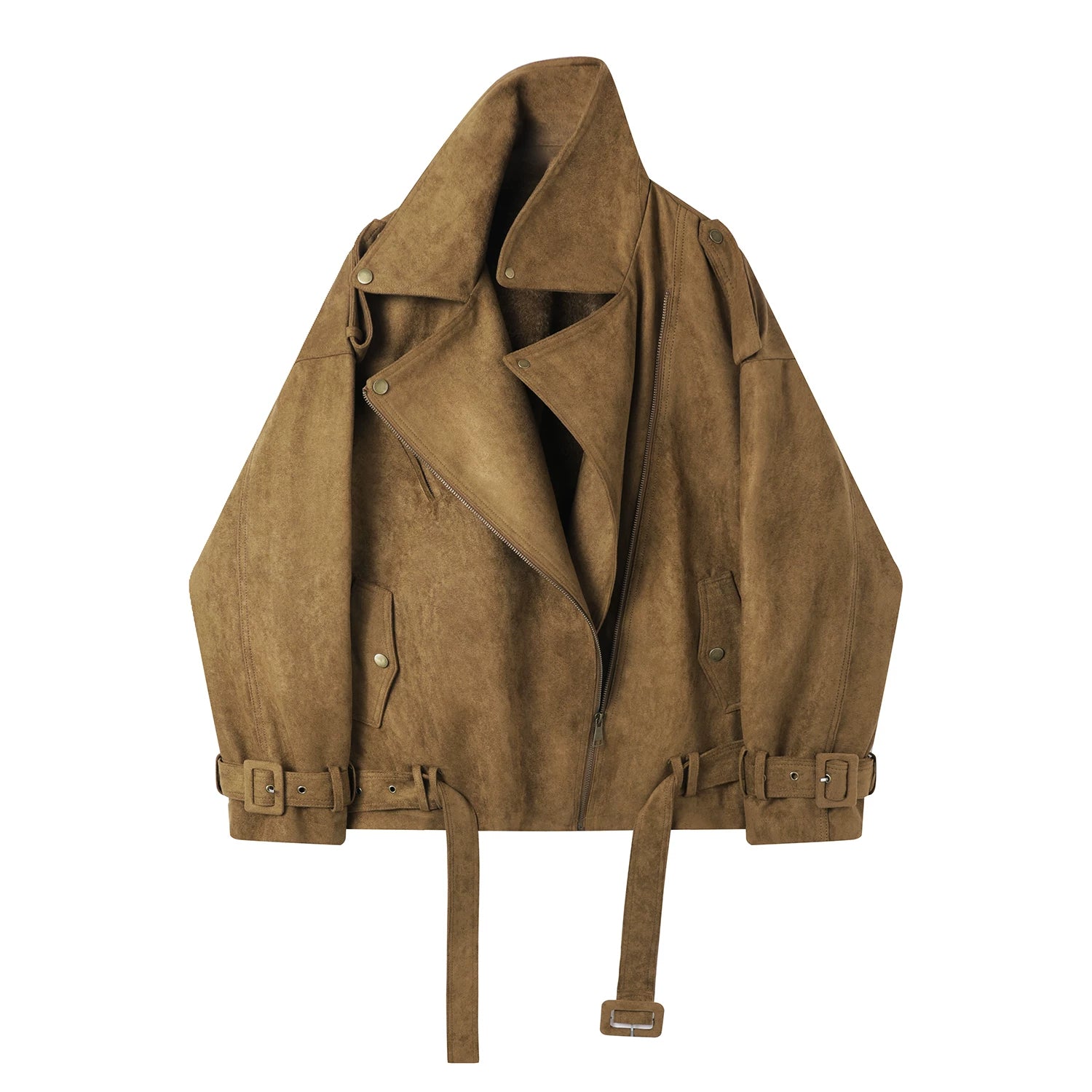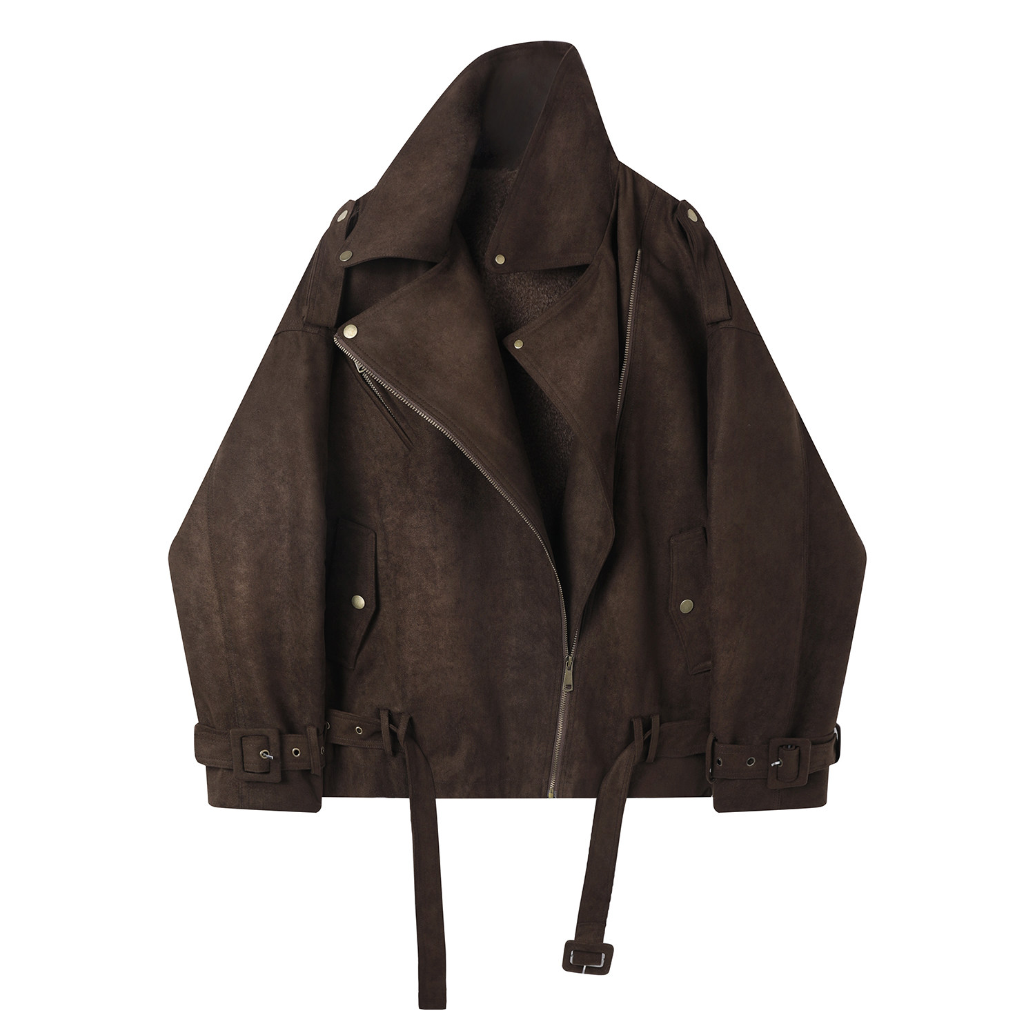 Cholisa Koreya üslubunda 2025-ci il üçün super populyar qadın qış sərin və şık motosiklet gödəkçəsi, super şirin, yun astarlı və qalın isti gödəkçə