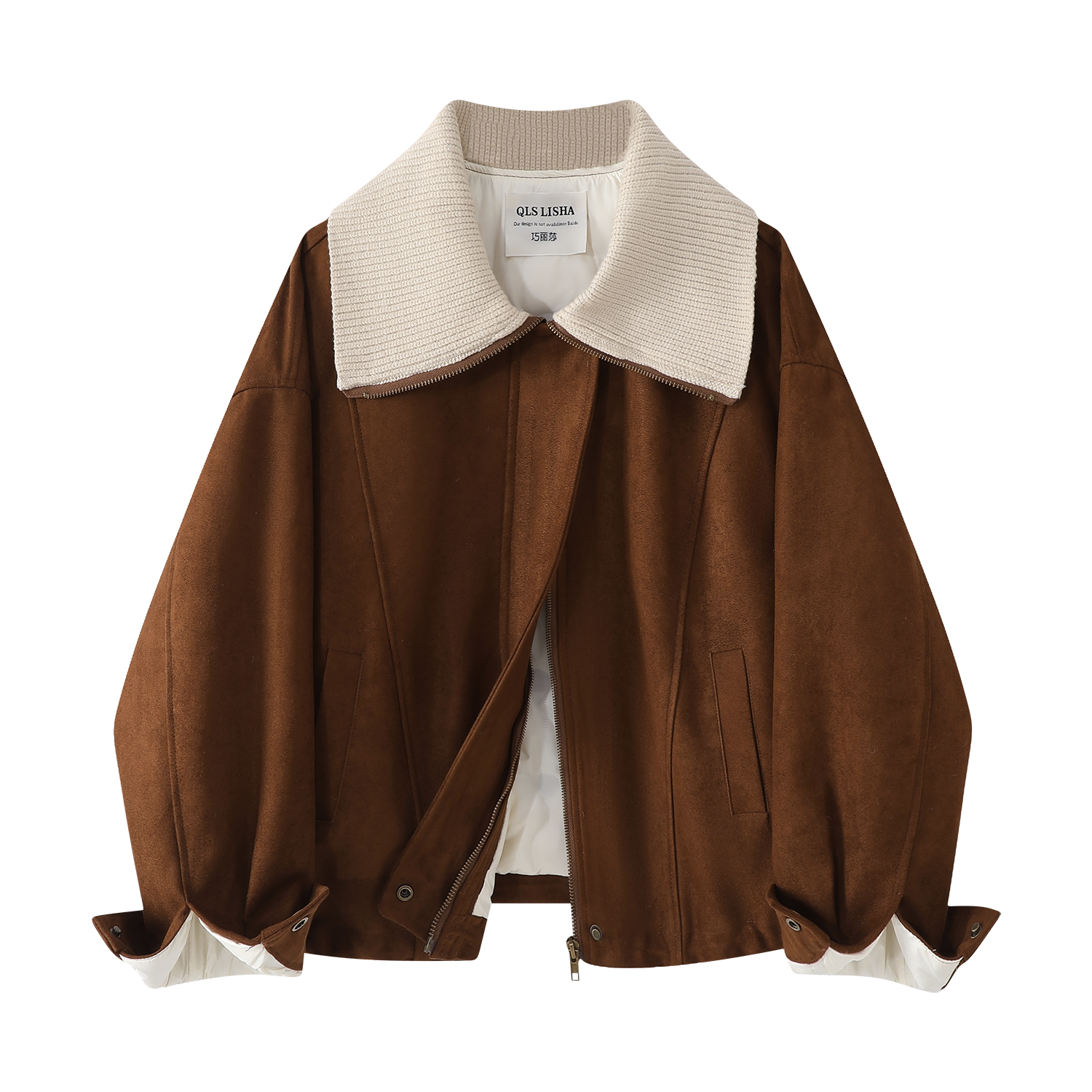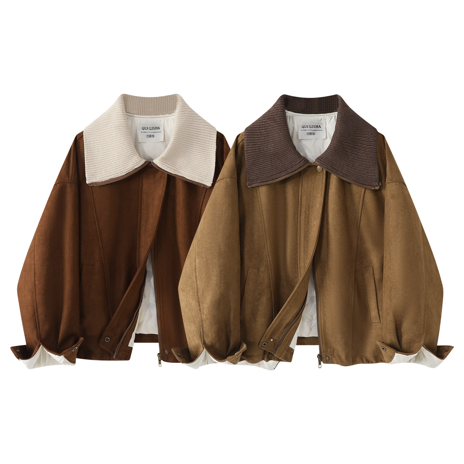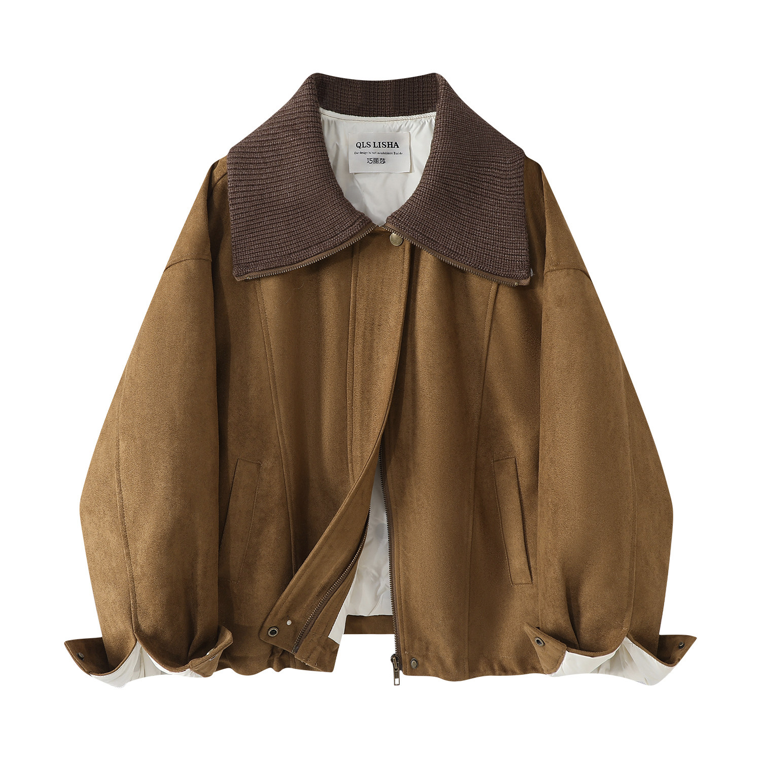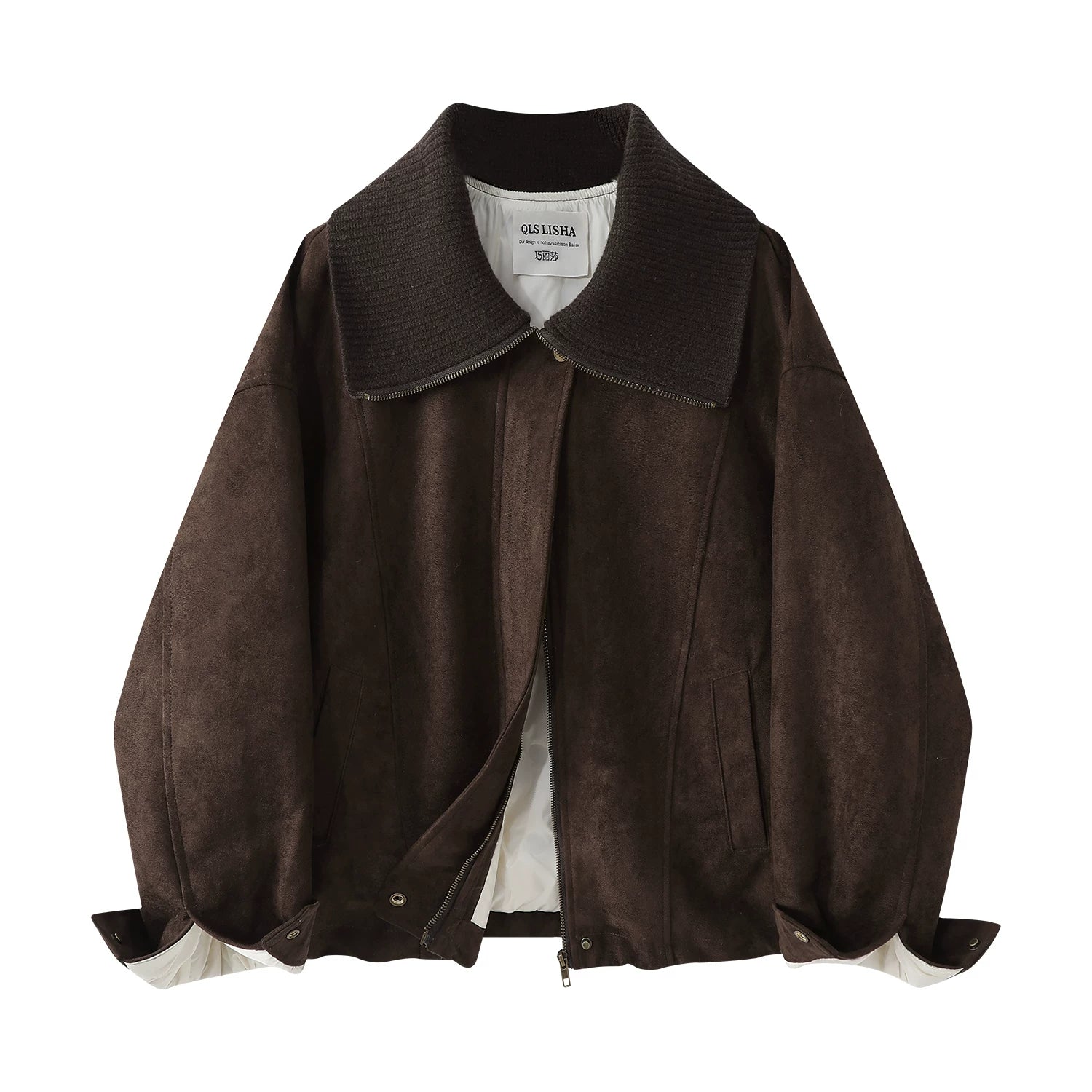 Cholisa Koreya üslubunda qadınlar üçün retro zamşa aşağı gödəkçə, şık payız və qış, Maillard isti motosiklet paltosu.
