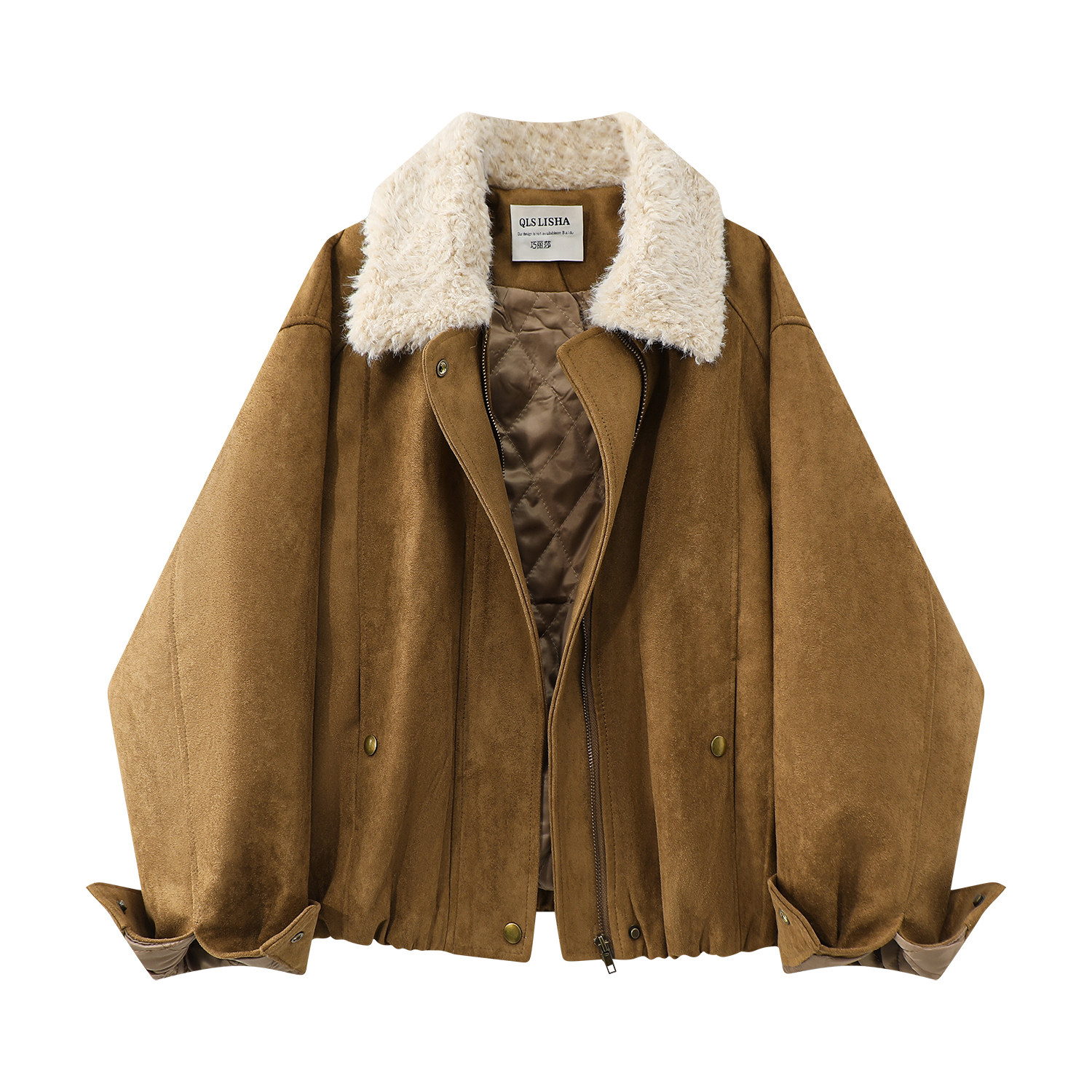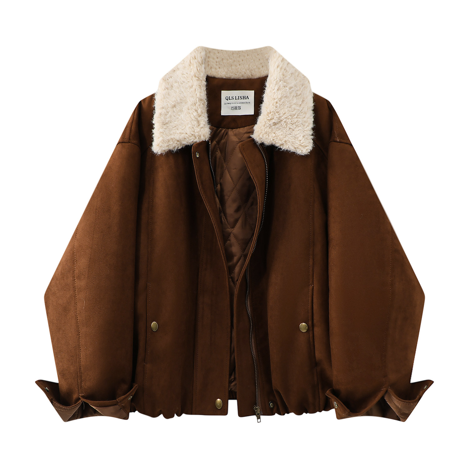 Cholisa Maillard Qadınlar üçün Sırınmış Gödəkçə, 2025 Yeni Payız və Qış Modeli, Xəz Yaxalıqlı Patchwork Motosiklet Gödəkçəsi, Qalınlaşmış