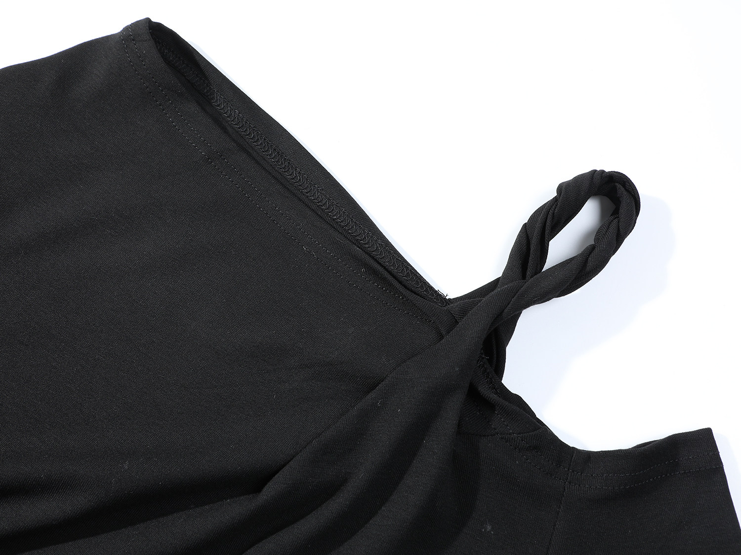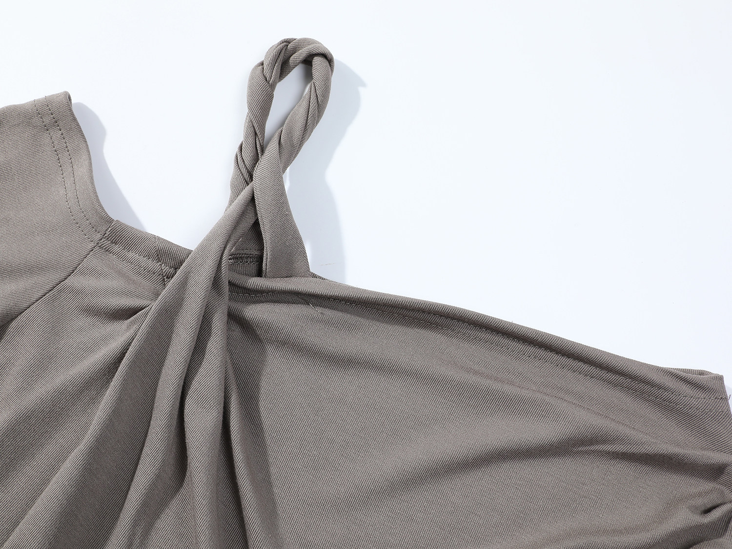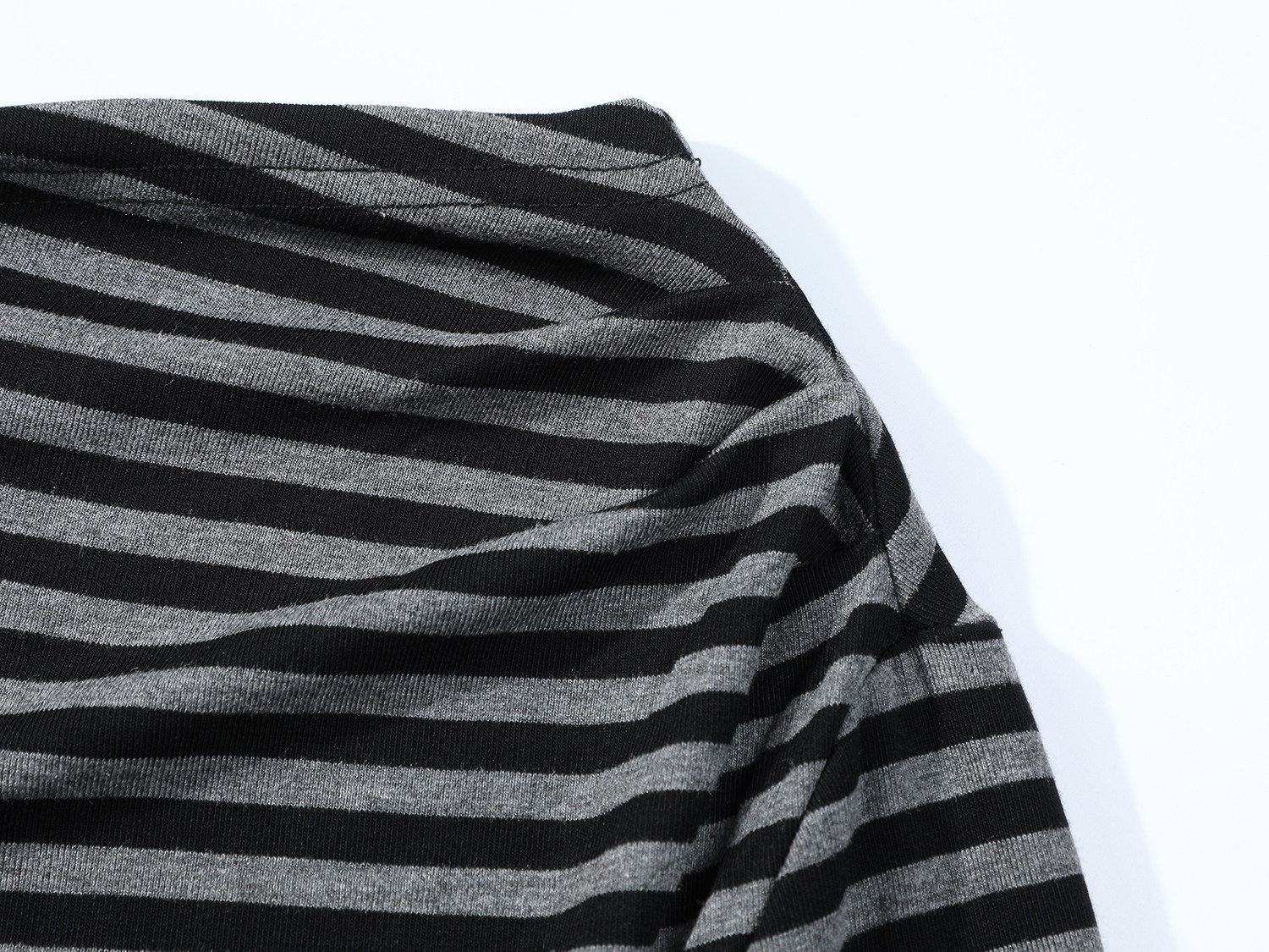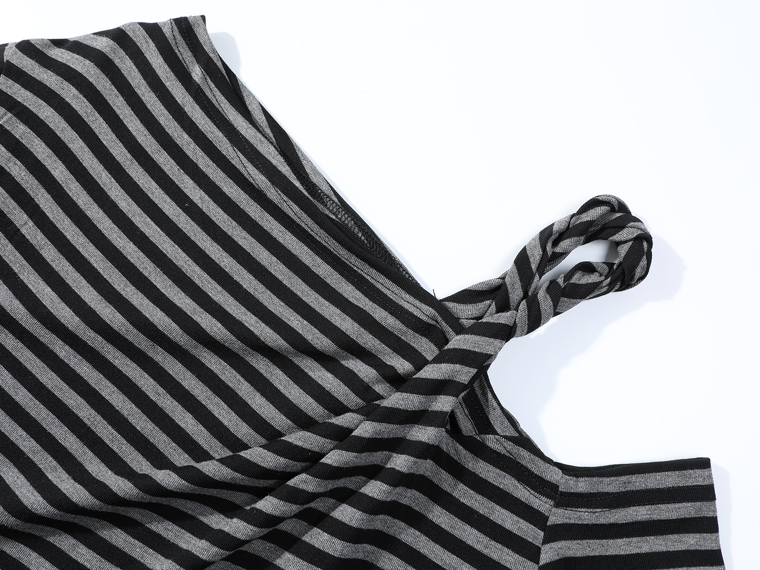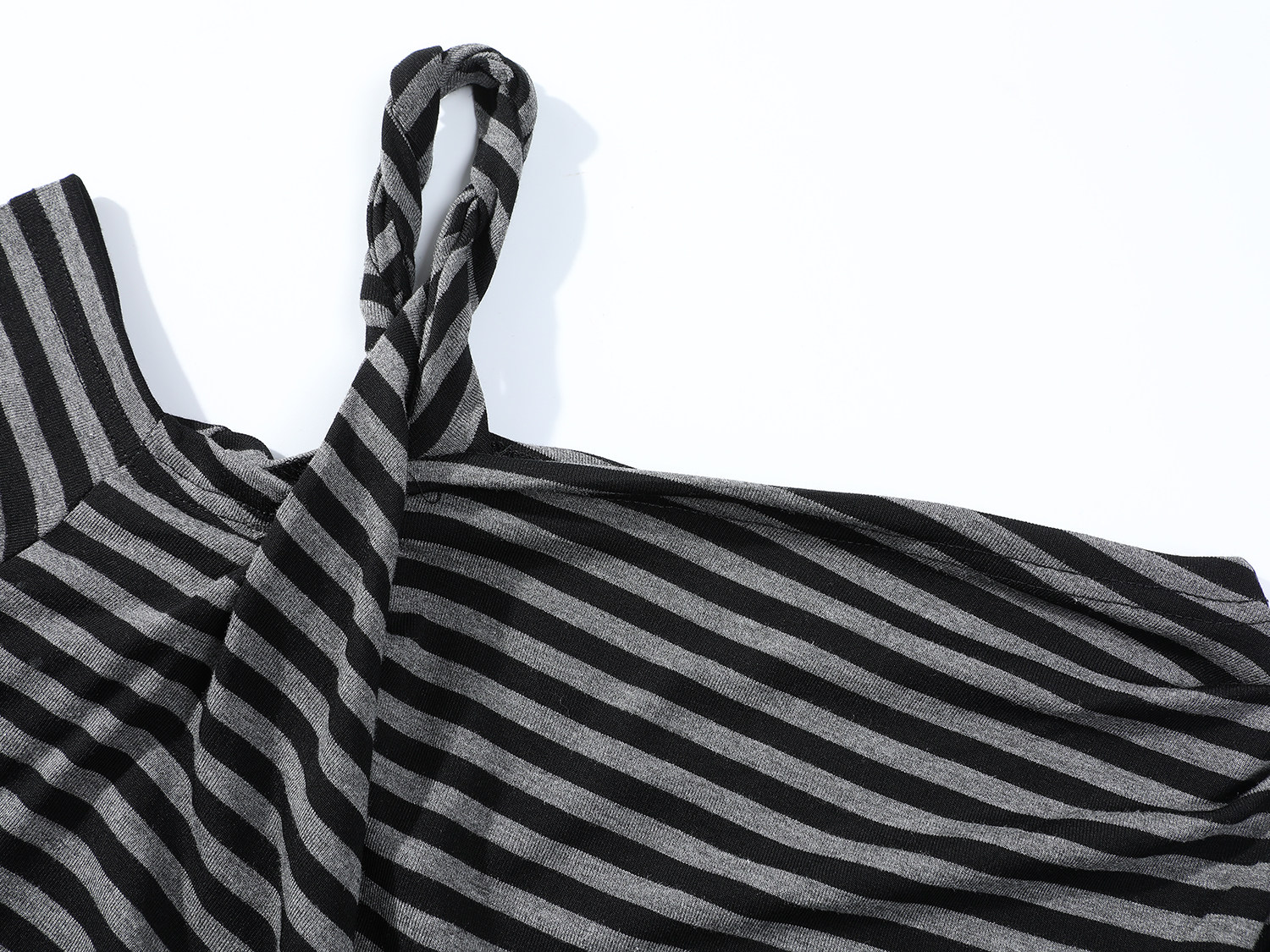 Cholisa-nın özünəməxsus çiyinləri açıq top, erkən yaz/payız 2026 yeni üslubunda, nizamsız, yüksək səviyyəli zolaqlı uzunqol qadın futbolkası.