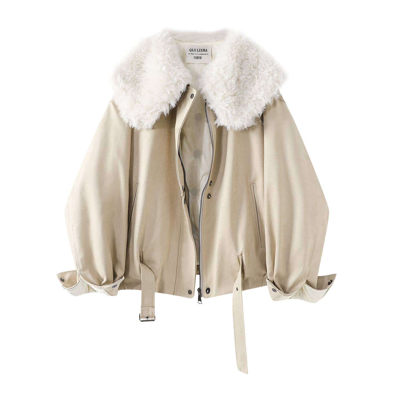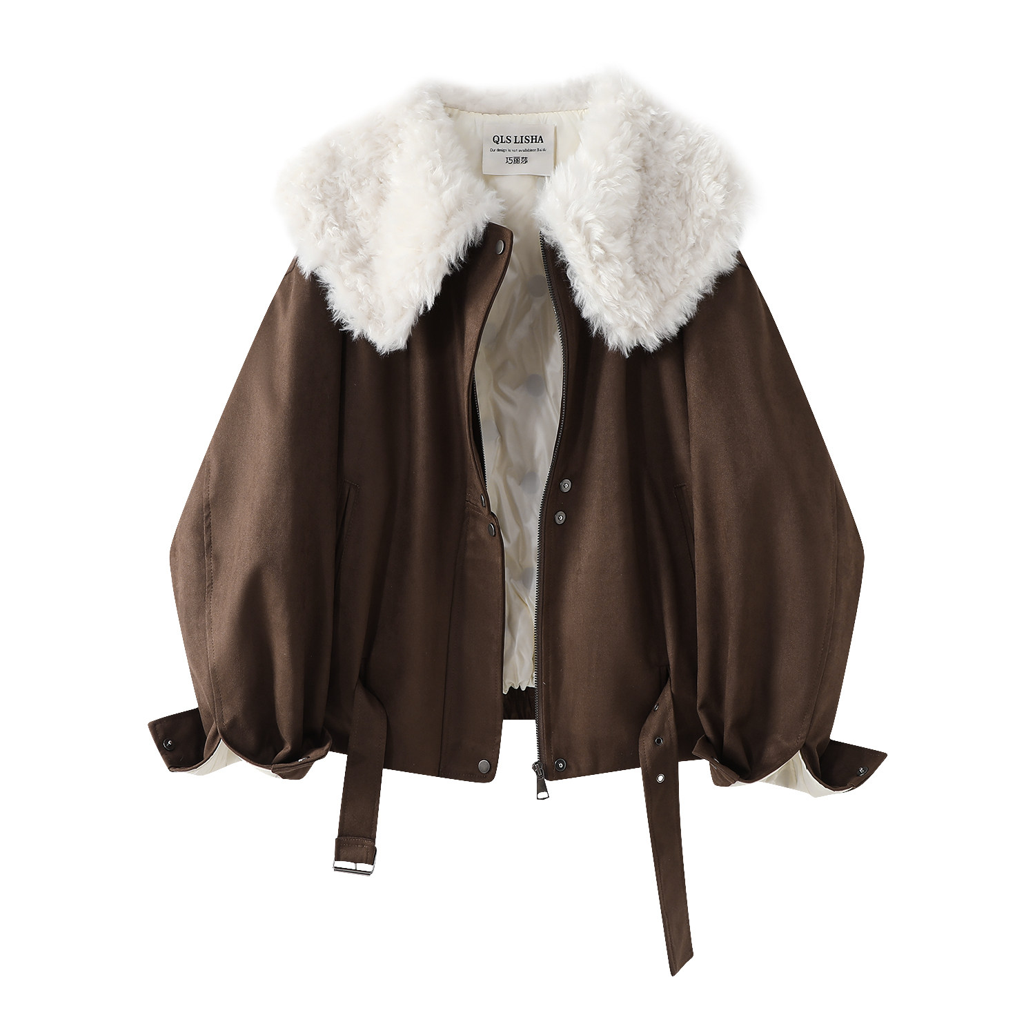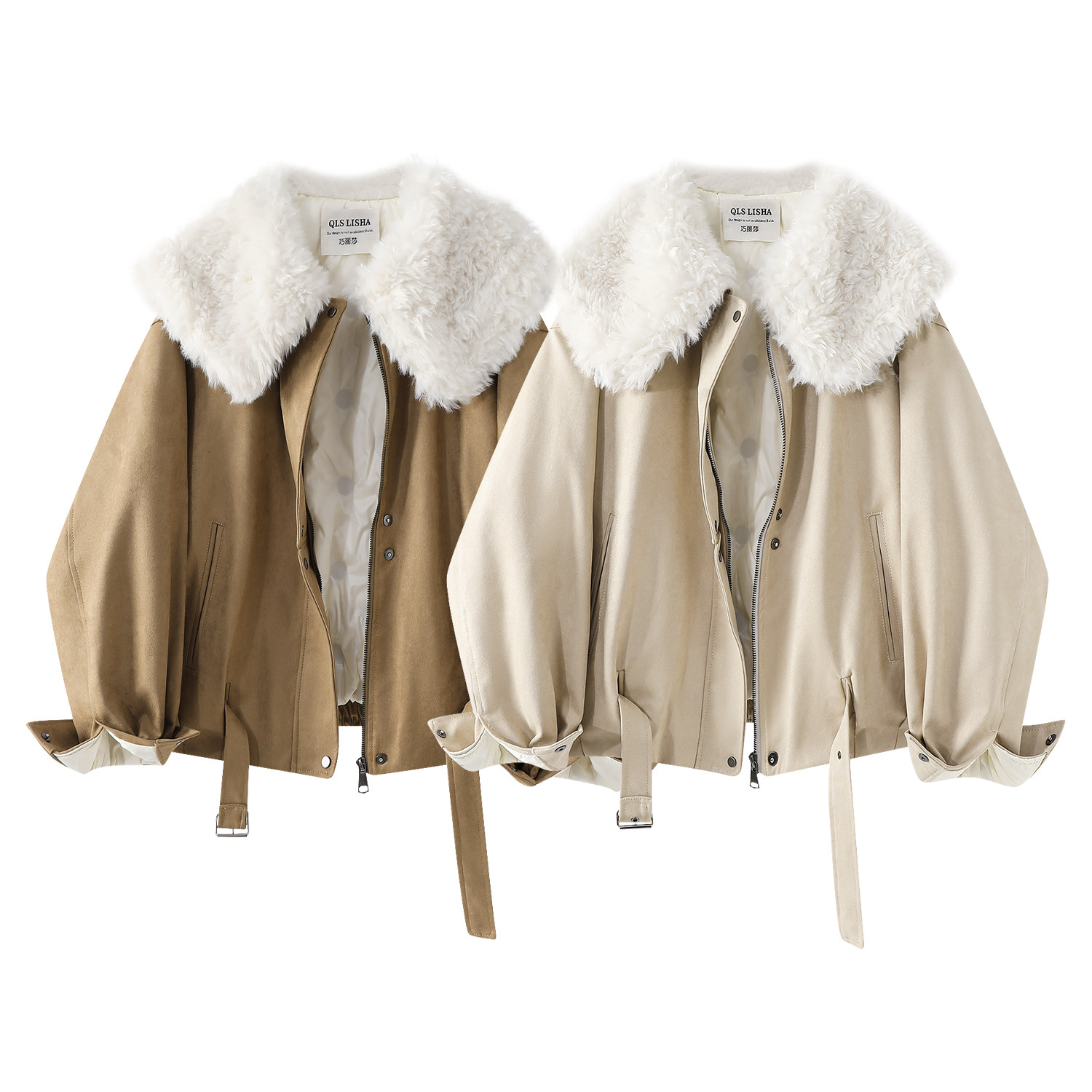 Cholisa-nın özünəməxsus və gözəl qış isti qırmızı qısa qalın paltosu, quzu yun yaxası olan qadın aşağı gödəkçəsi.