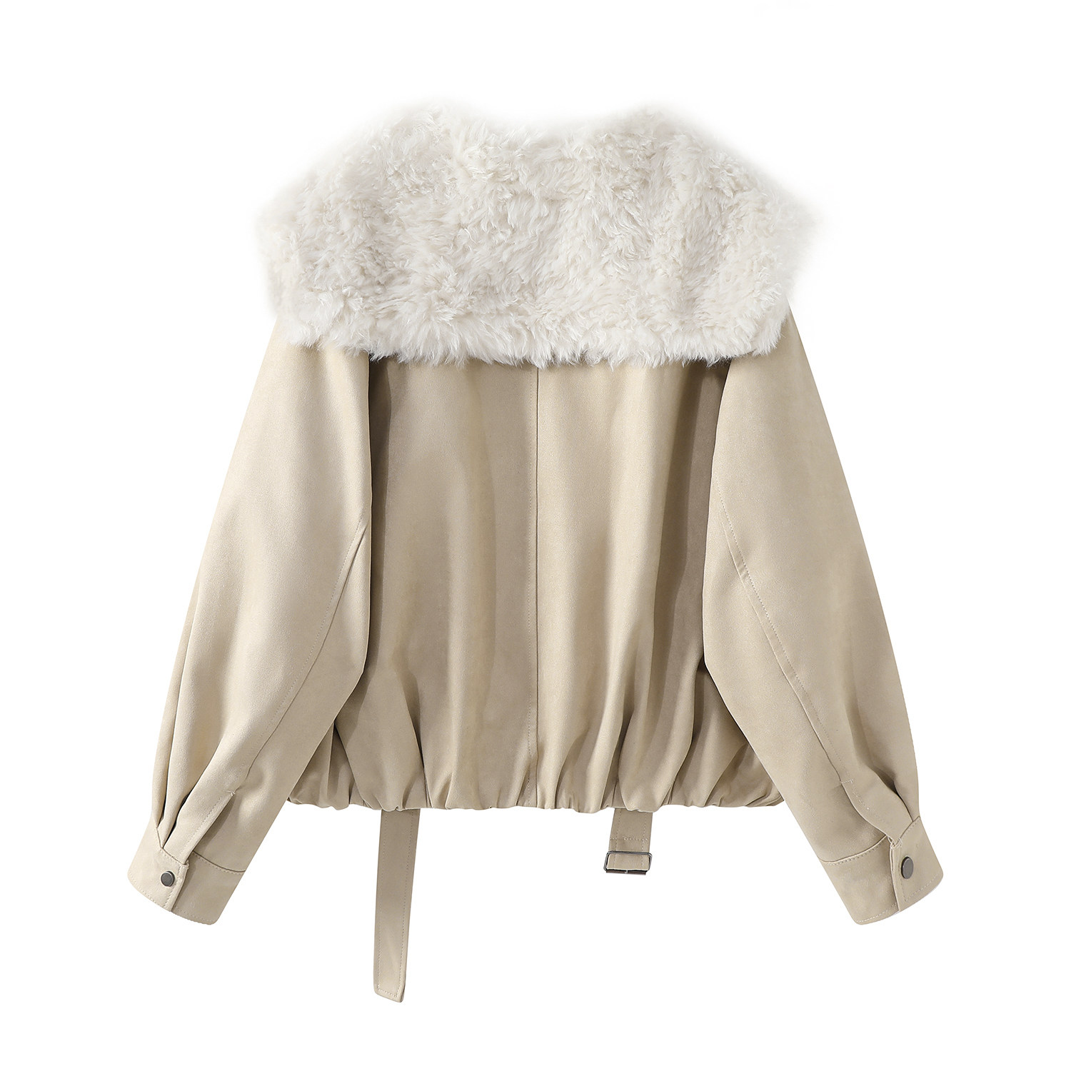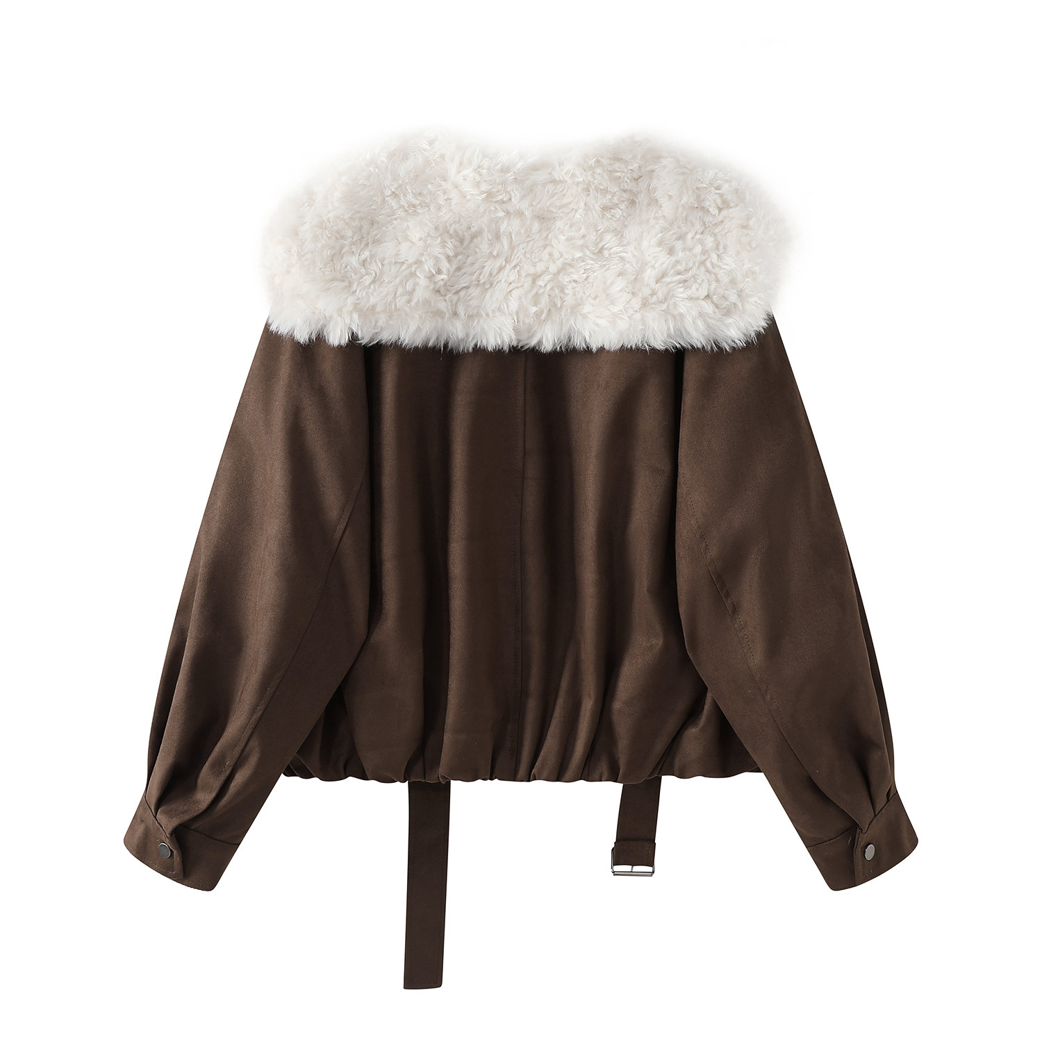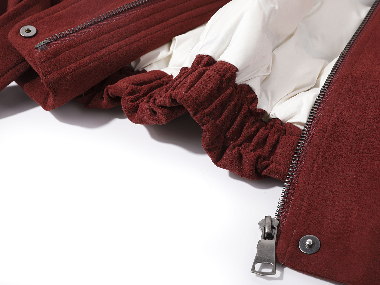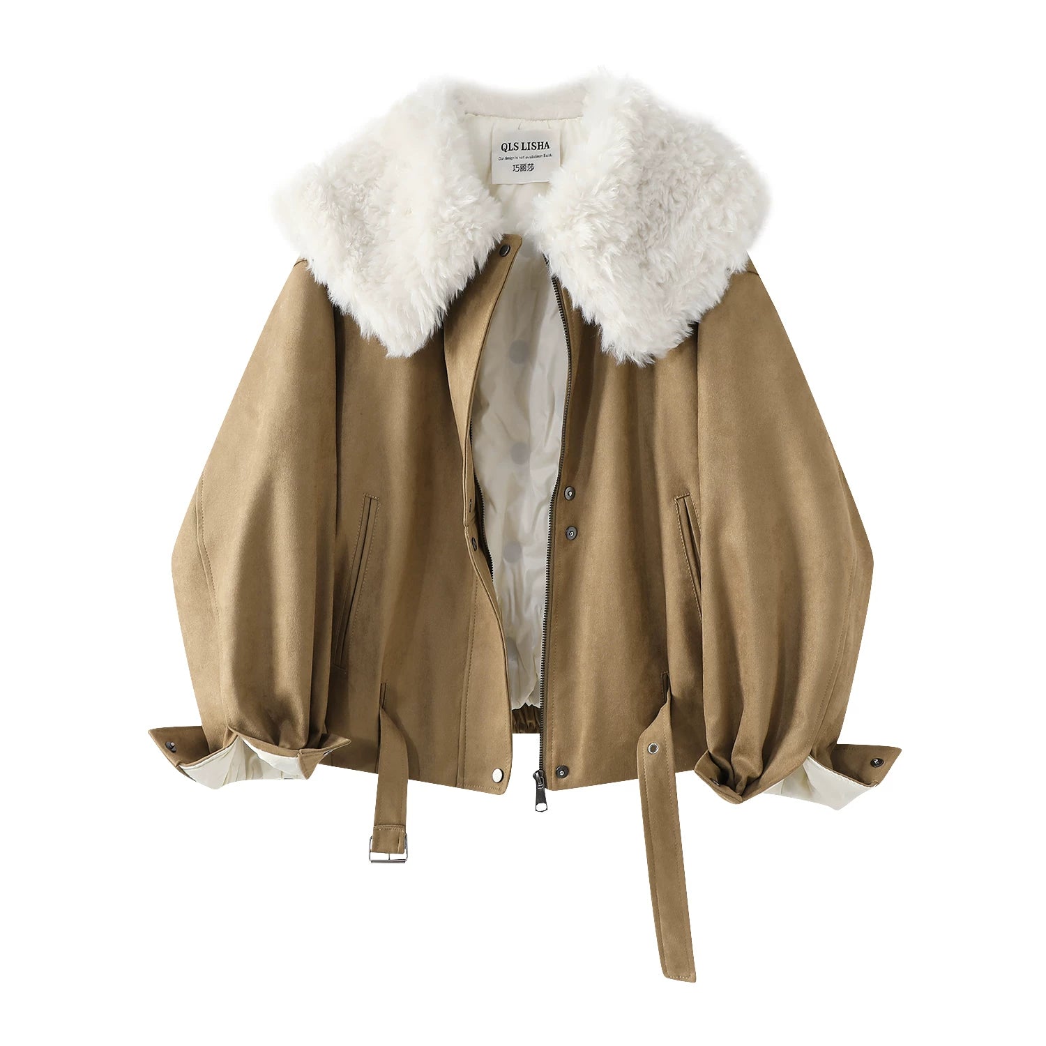 Cholisa-nın özünəməxsus və gözəl qış isti qırmızı qısa qalın paltosu, quzu yun yaxası olan qadın aşağı gödəkçəsi.