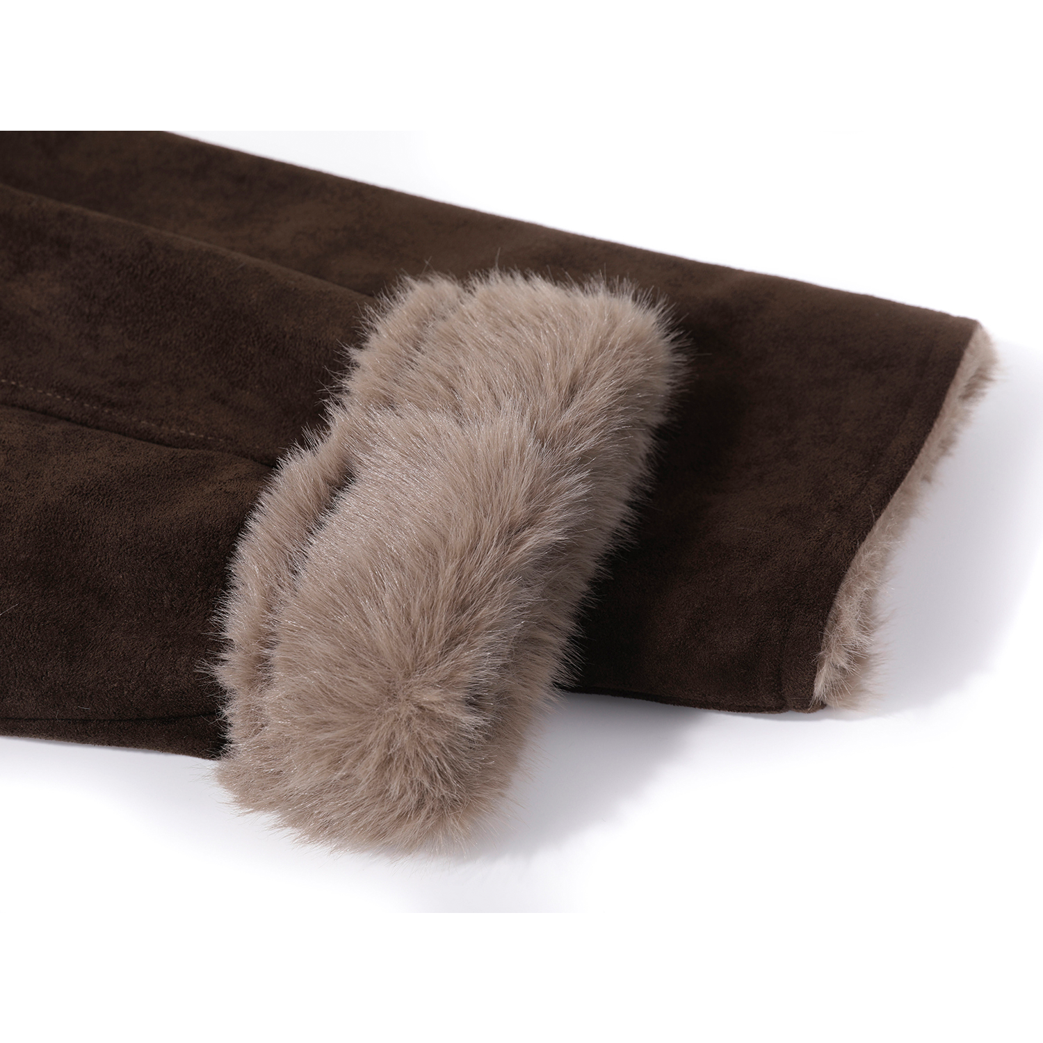 Cholisa-nın qadınlar üçün çox şirin erkən payız/qış yun astarlı qalın xəz, quzu yun və xəz birləşdirilmiş, geri çevrilə bilən uzun xəz.