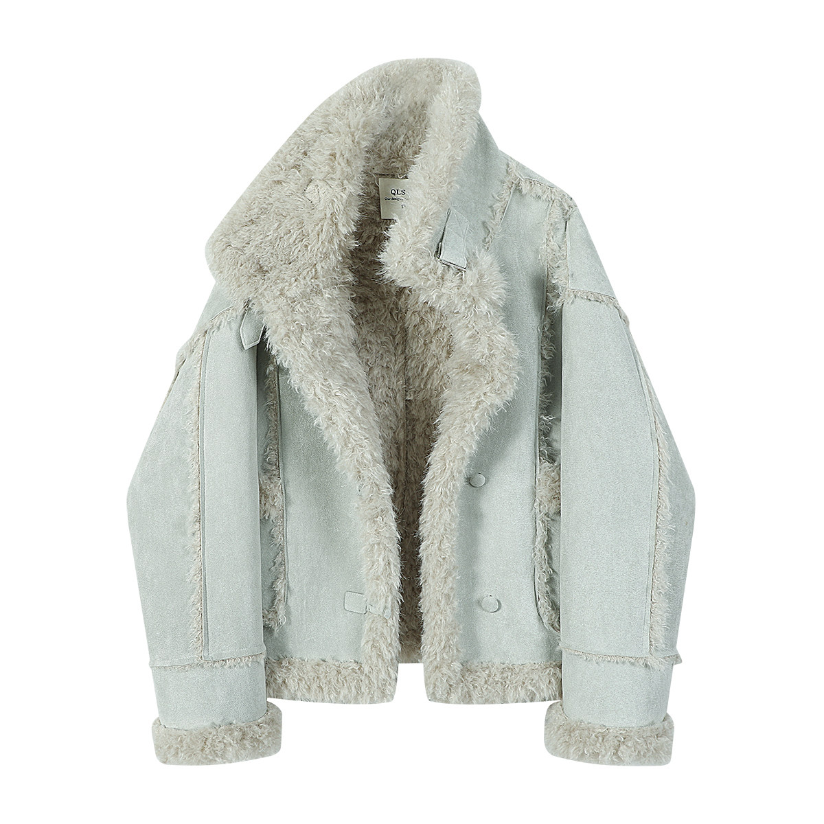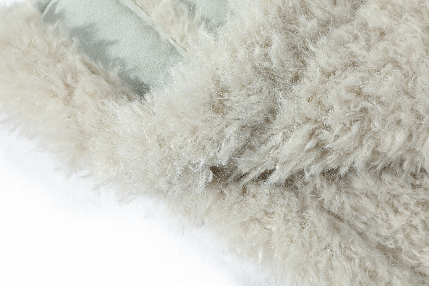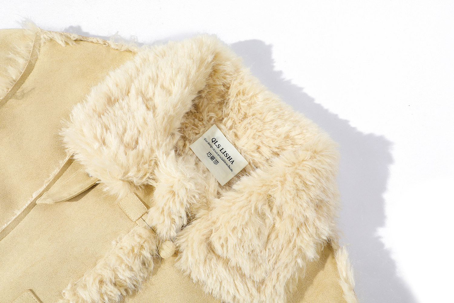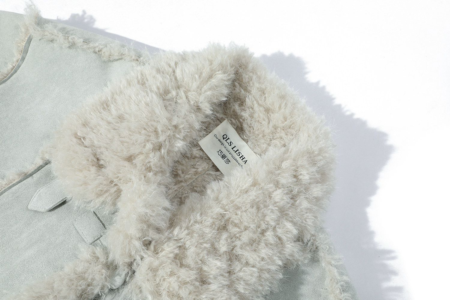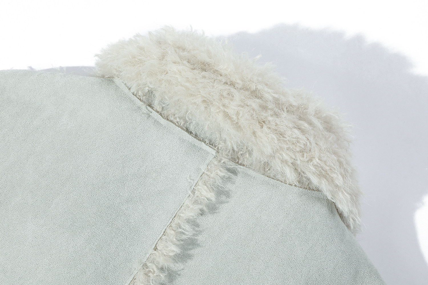 Cholisa-nın qışın əvvəlləri üçün hazırlanmış, yüksək səviyyəli bir görünüşə və qırxılmış yun bəzəklərə malik, sərin və şık qısa, qalın quzu yunundan hazırlanmış xəz palto.