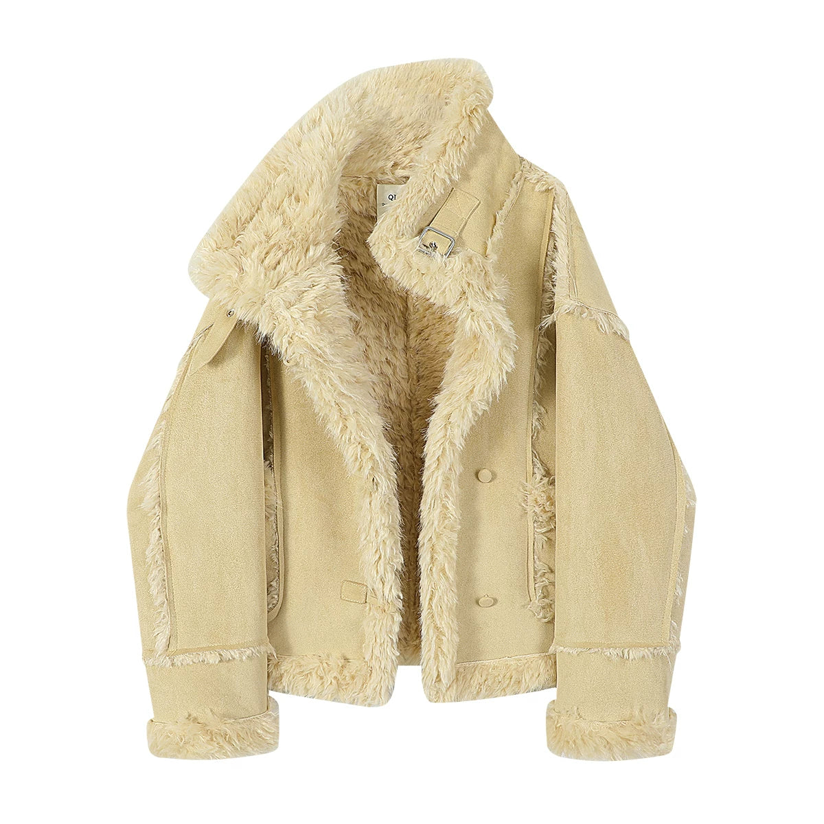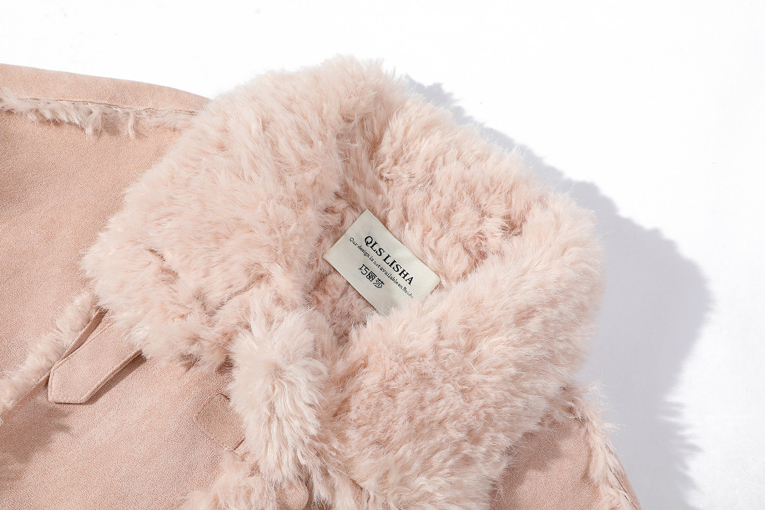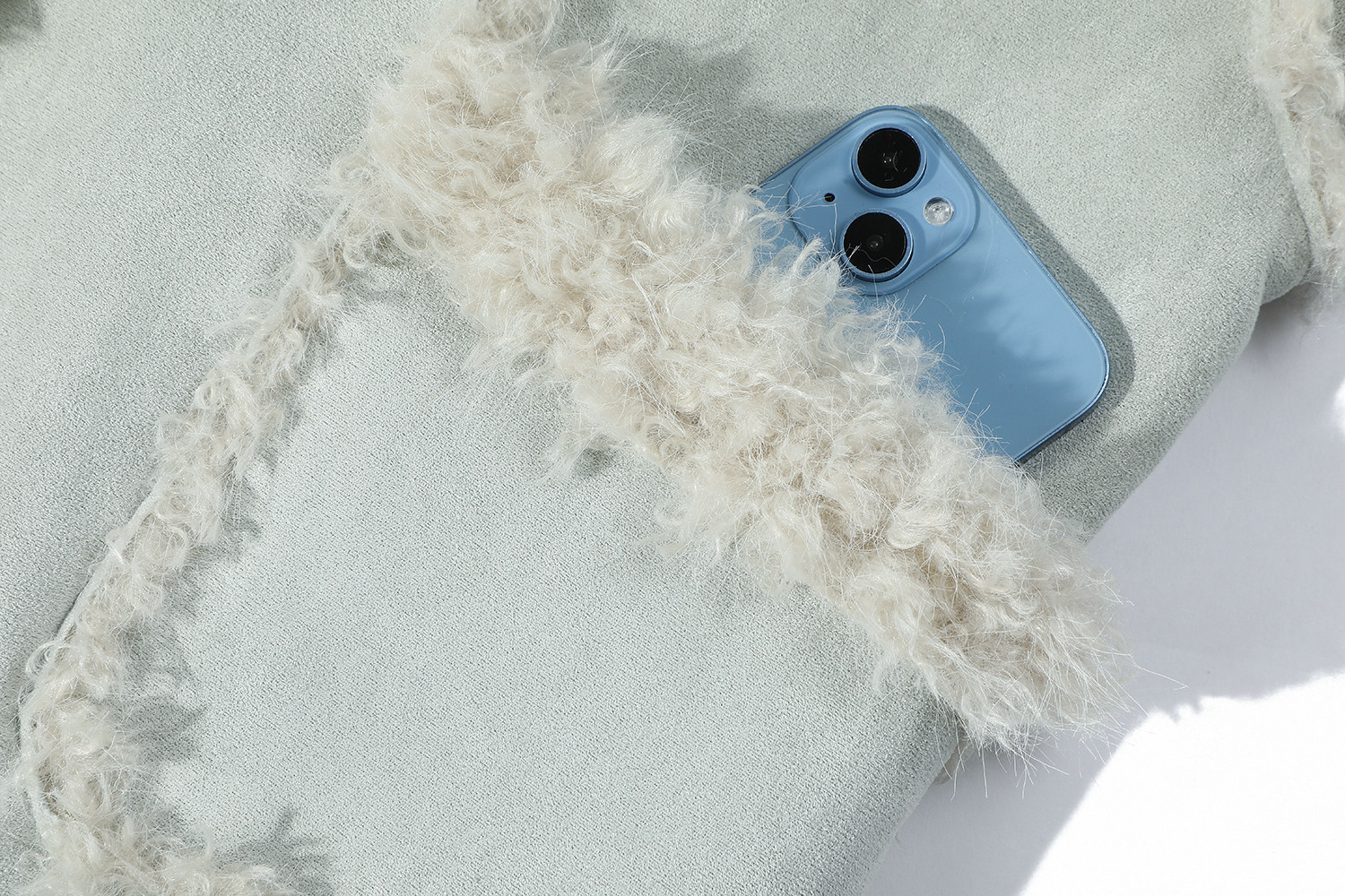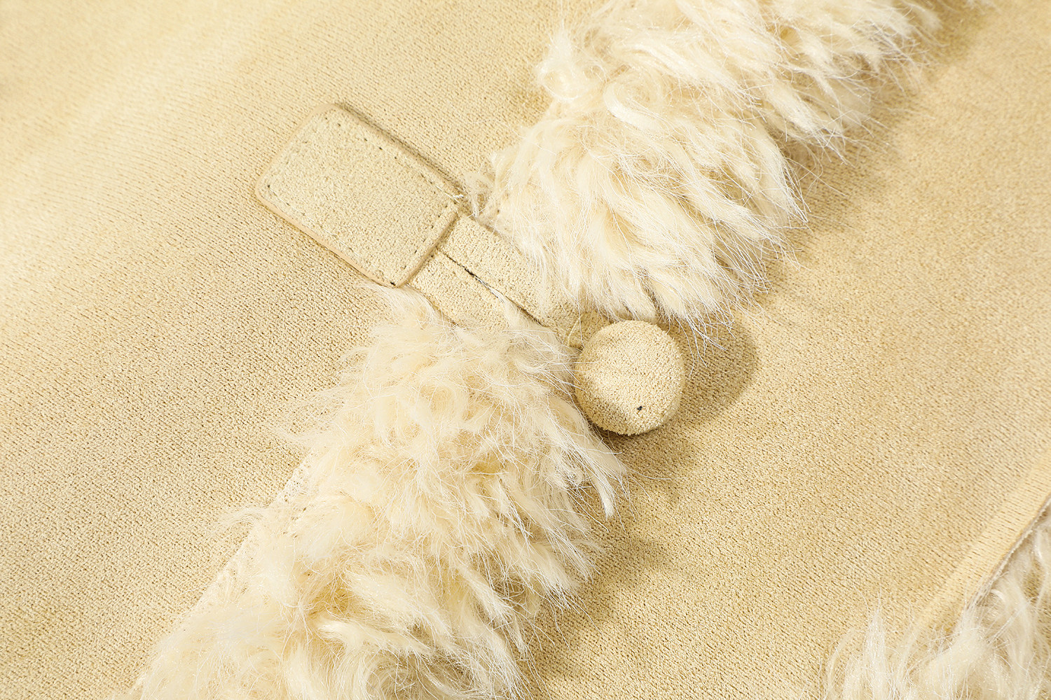 Cholisa-nın qışın əvvəlləri üçün hazırlanmış, yüksək səviyyəli bir görünüşə və qırxılmış yun bəzəklərə malik, sərin və şık qısa, qalın quzu yunundan hazırlanmış xəz palto.