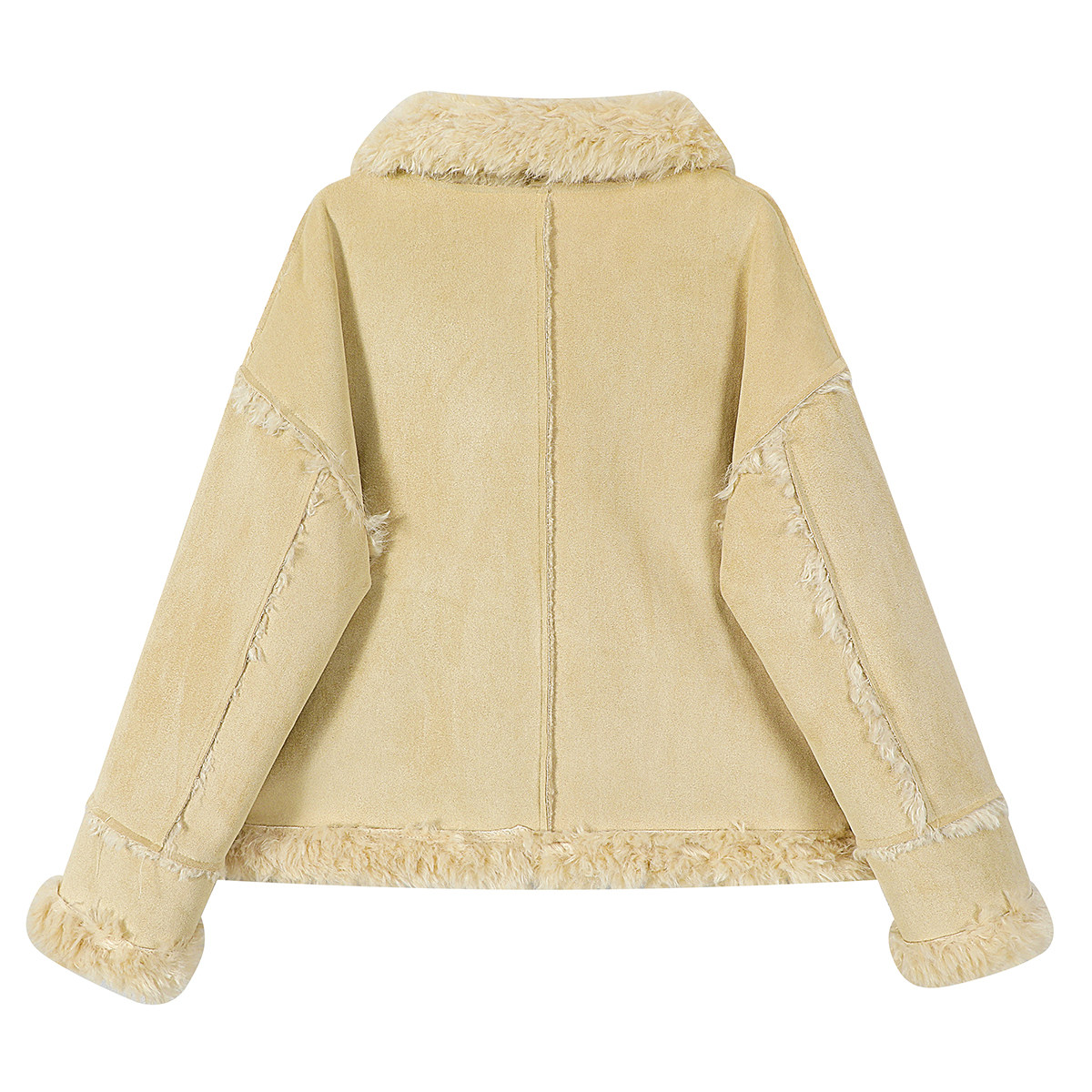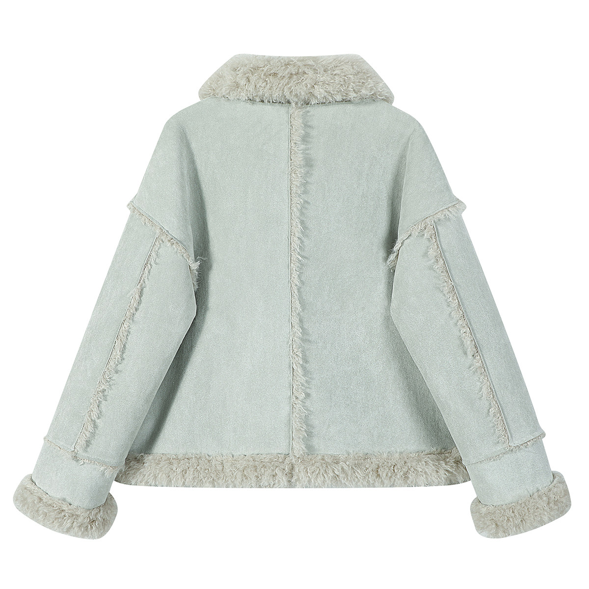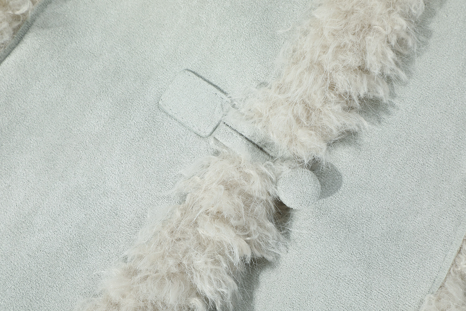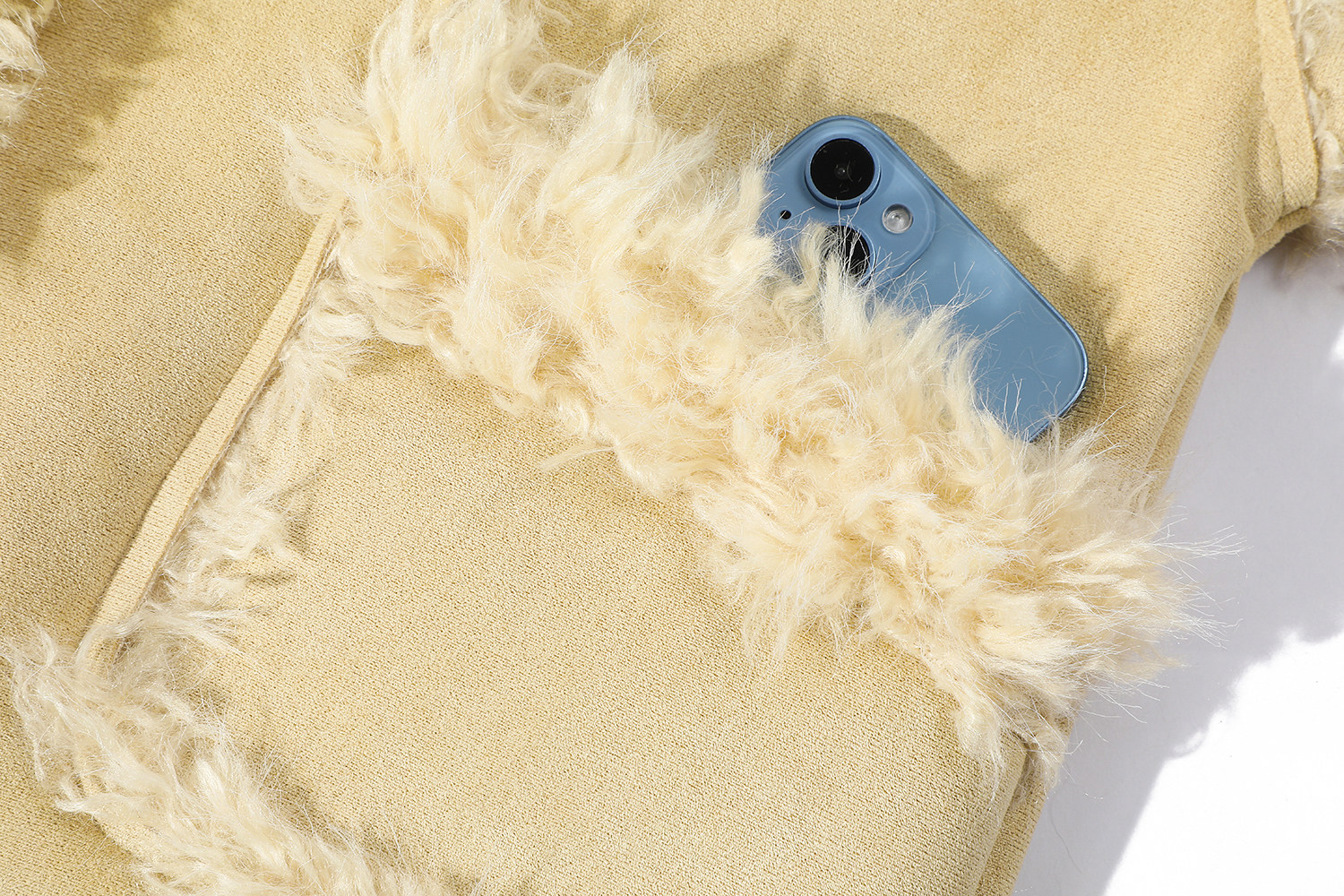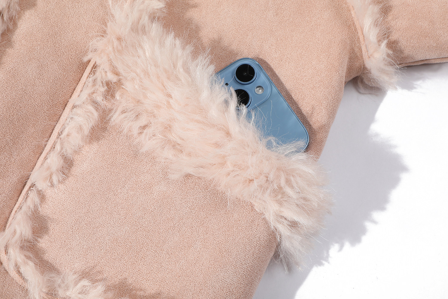 Cholisa-nın qışın əvvəlləri üçün hazırlanmış, yüksək səviyyəli bir görünüşə və qırxılmış yun bəzəklərə malik, sərin və şık qısa, qalın quzu yunundan hazırlanmış xəz palto.