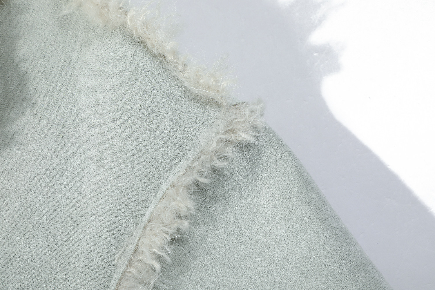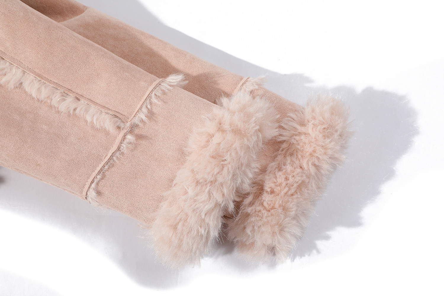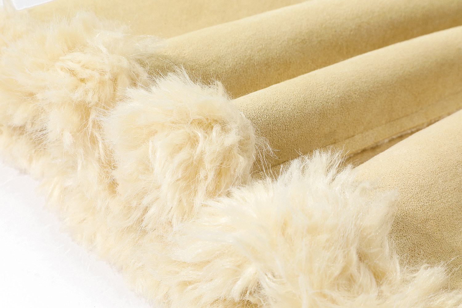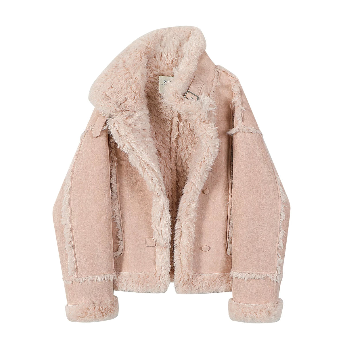 Cholisa-nın qışın əvvəlləri üçün hazırlanmış, yüksək səviyyəli bir görünüşə və qırxılmış yun bəzəklərə malik, sərin və şık qısa, qalın quzu yunundan hazırlanmış xəz palto.