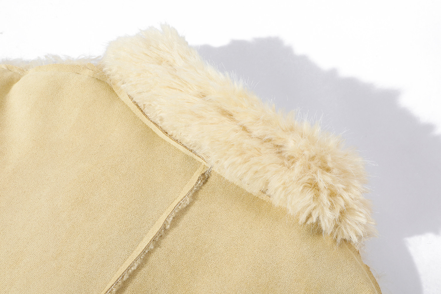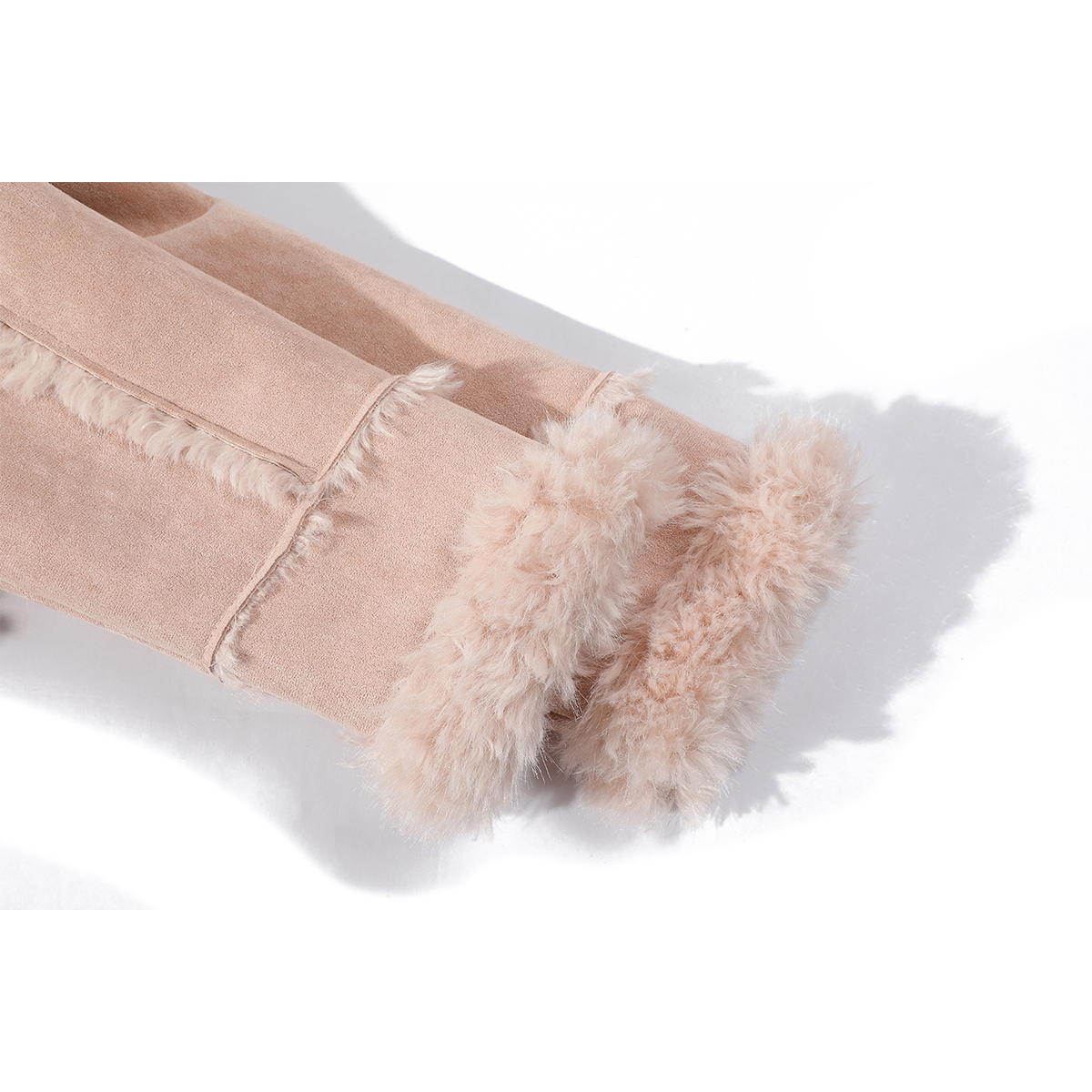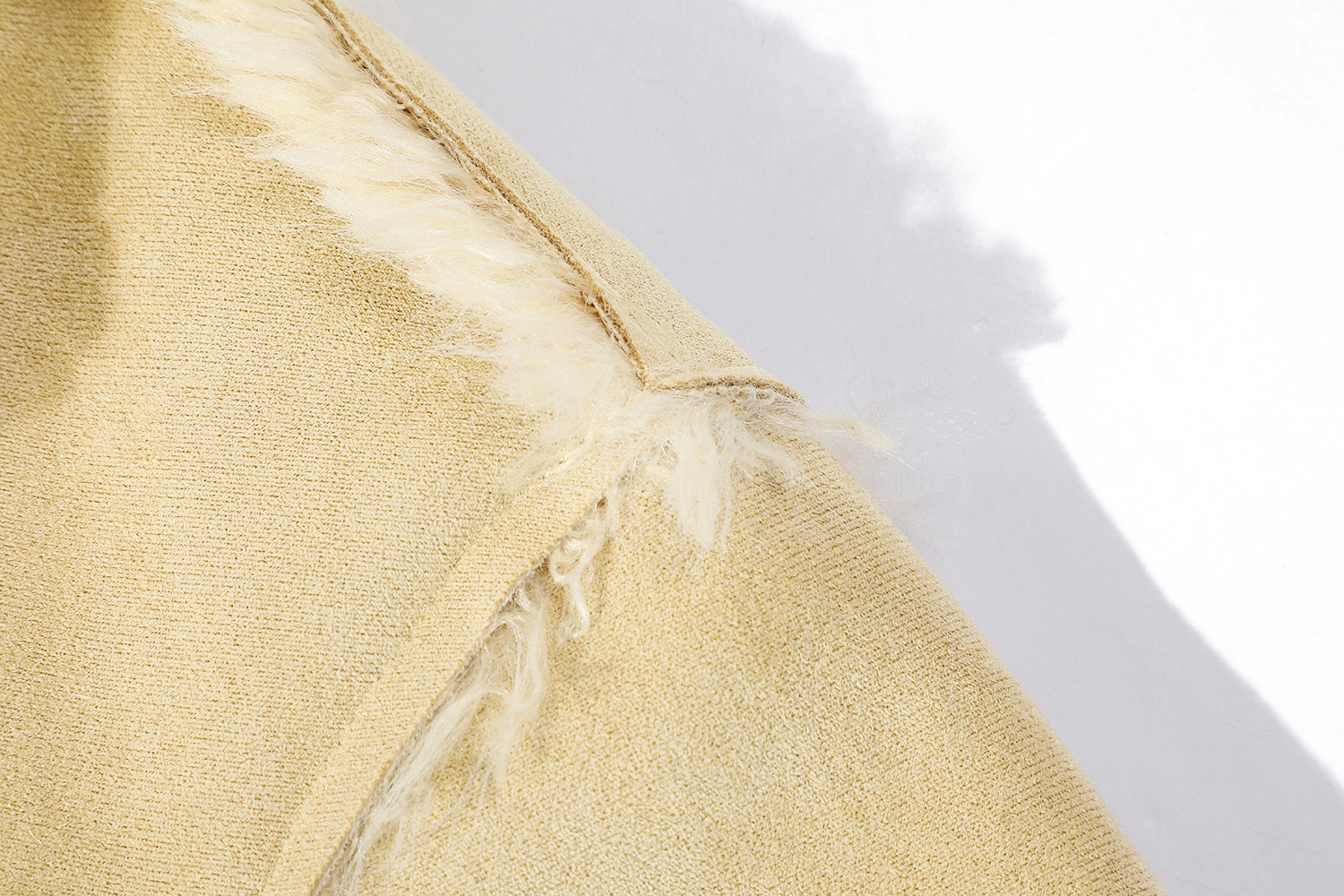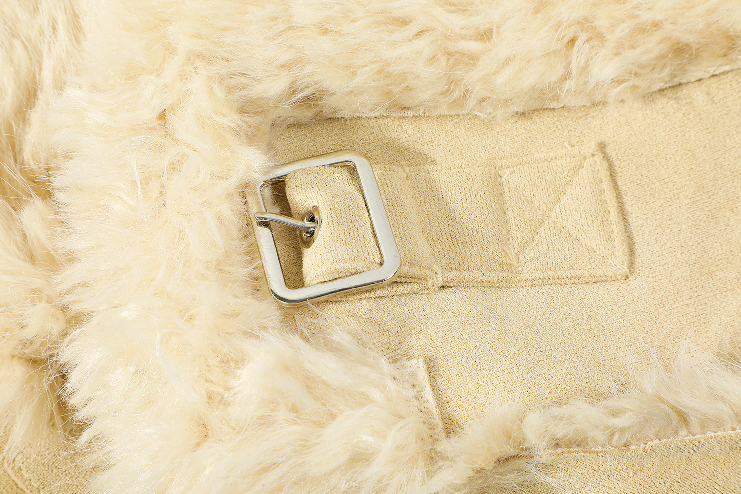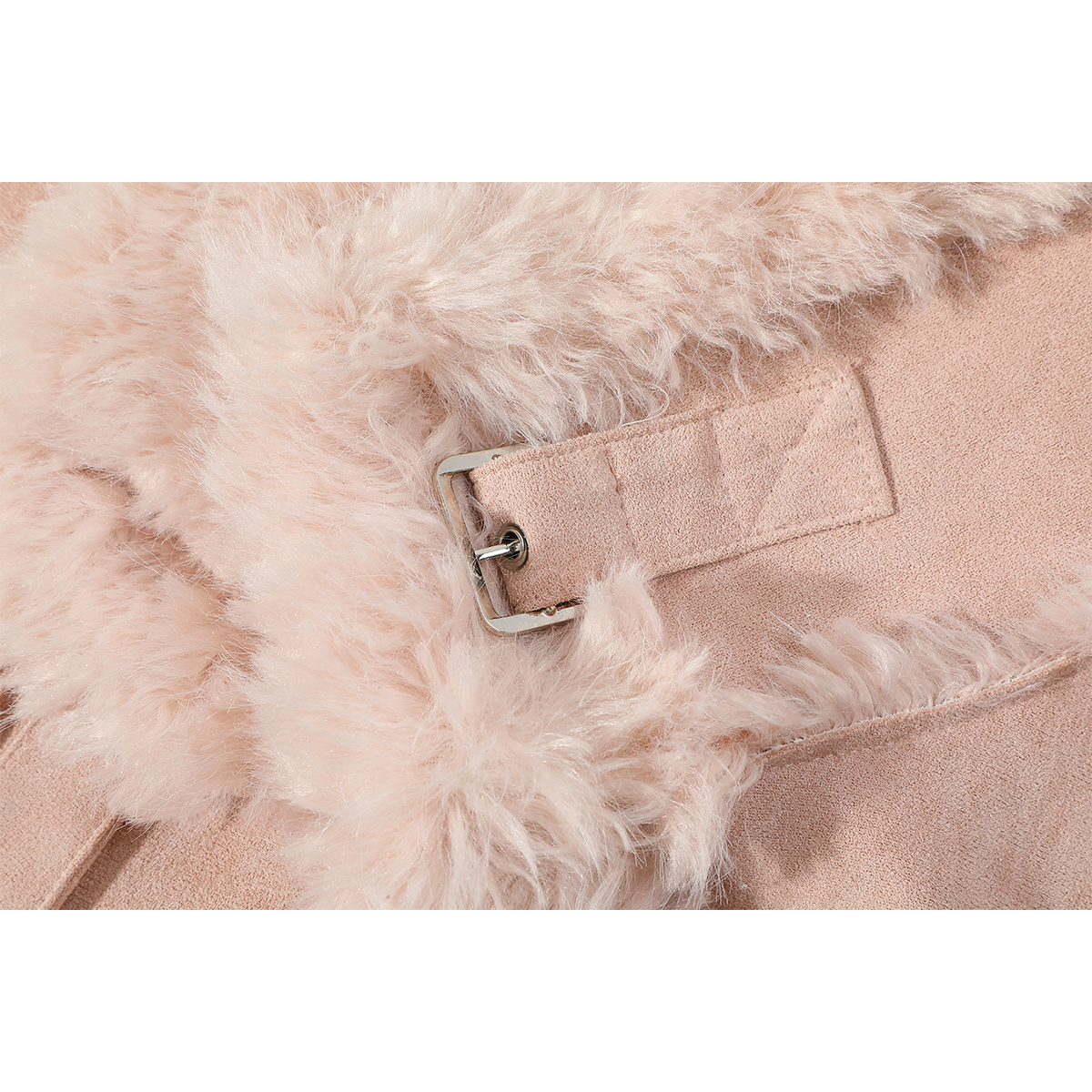 Cholisa-nın qışın əvvəlləri üçün hazırlanmış, yüksək səviyyəli bir görünüşə və qırxılmış yun bəzəklərə malik, sərin və şık qısa, qalın quzu yunundan hazırlanmış xəz palto.