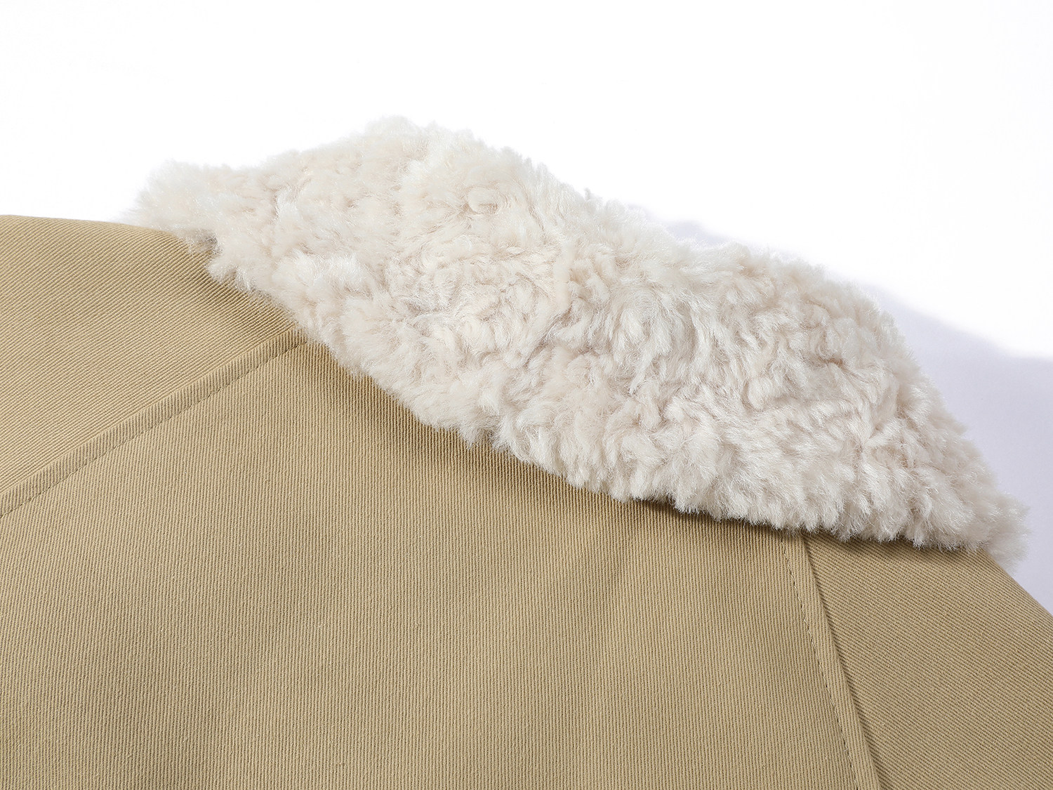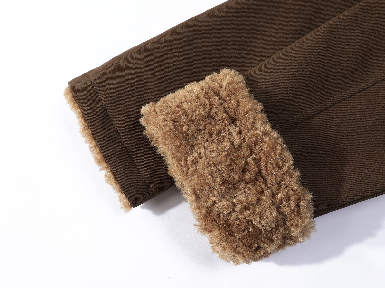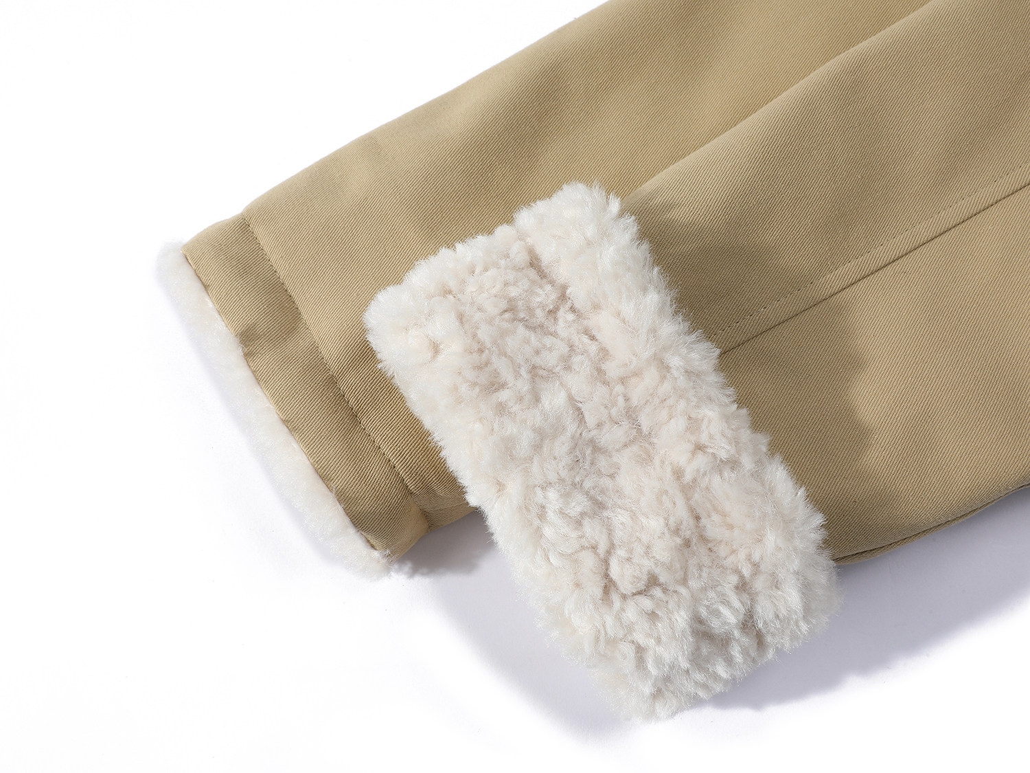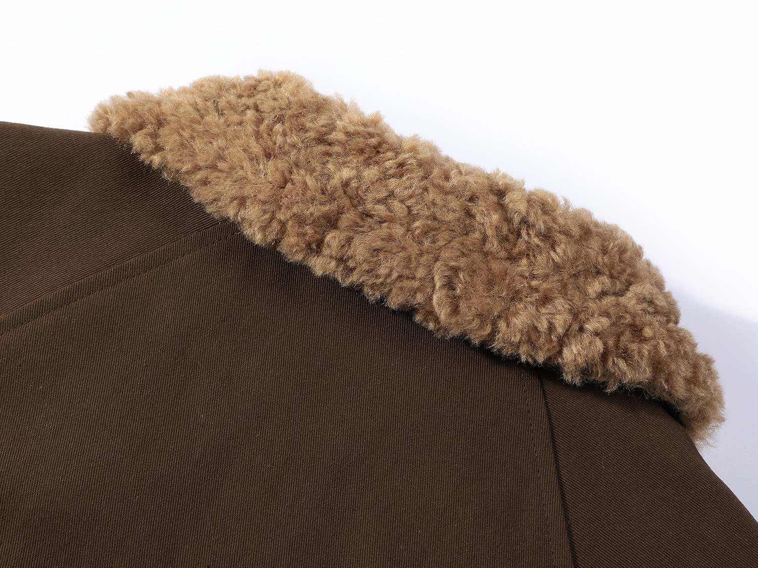 Cholisa-nın quzu yun yaxası ilə qışın əvvəlində qalın paltosu, isti iş geyimi üslubunda aşağıdan hazırlanmış parka qısa topu, qadınlar üçün