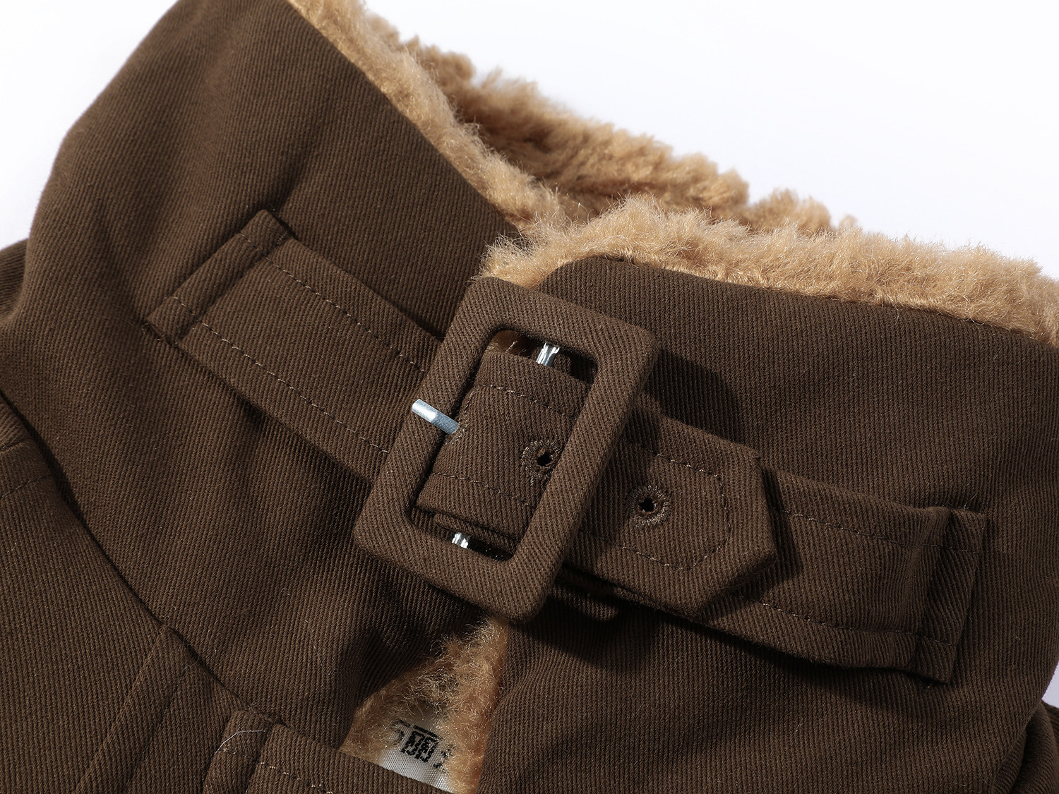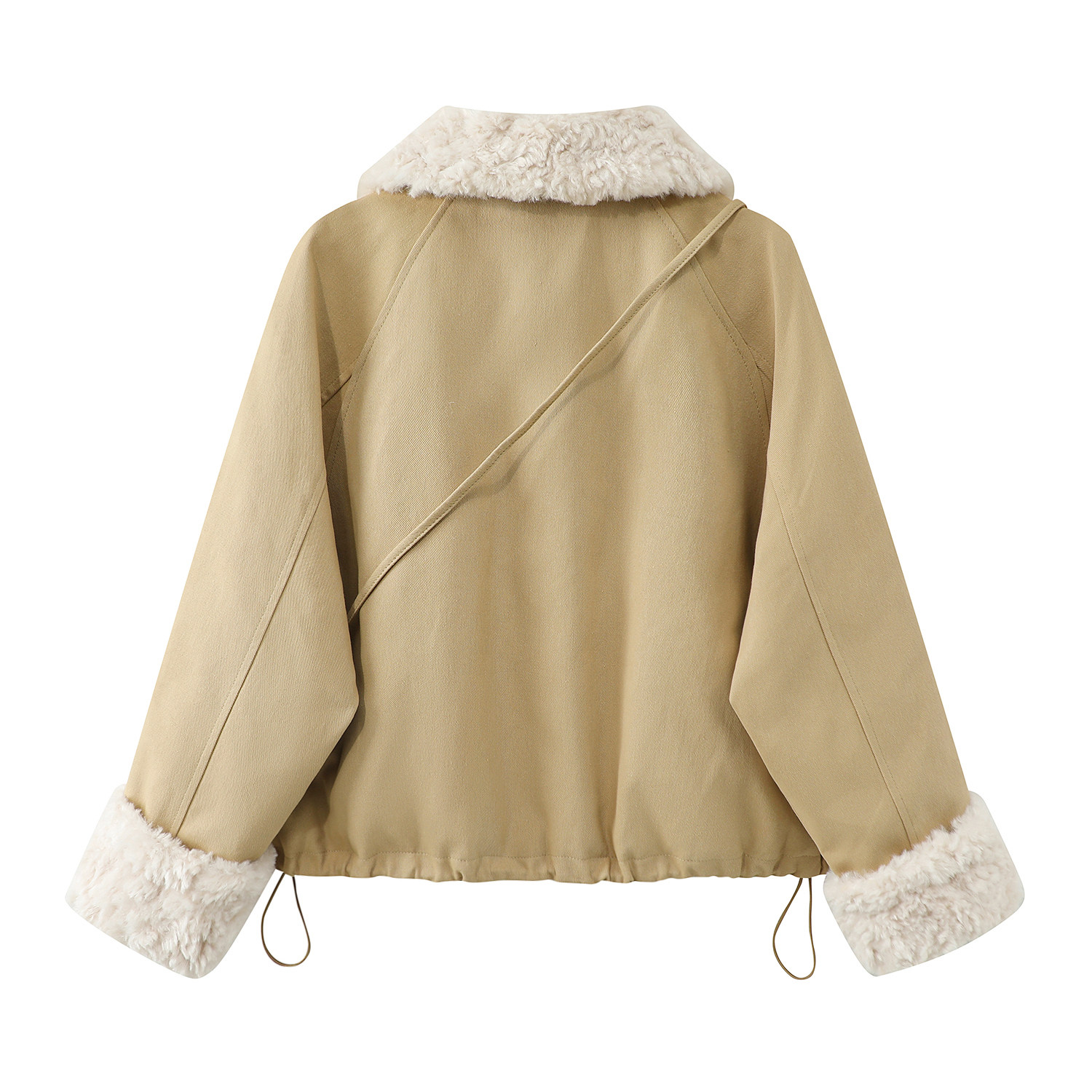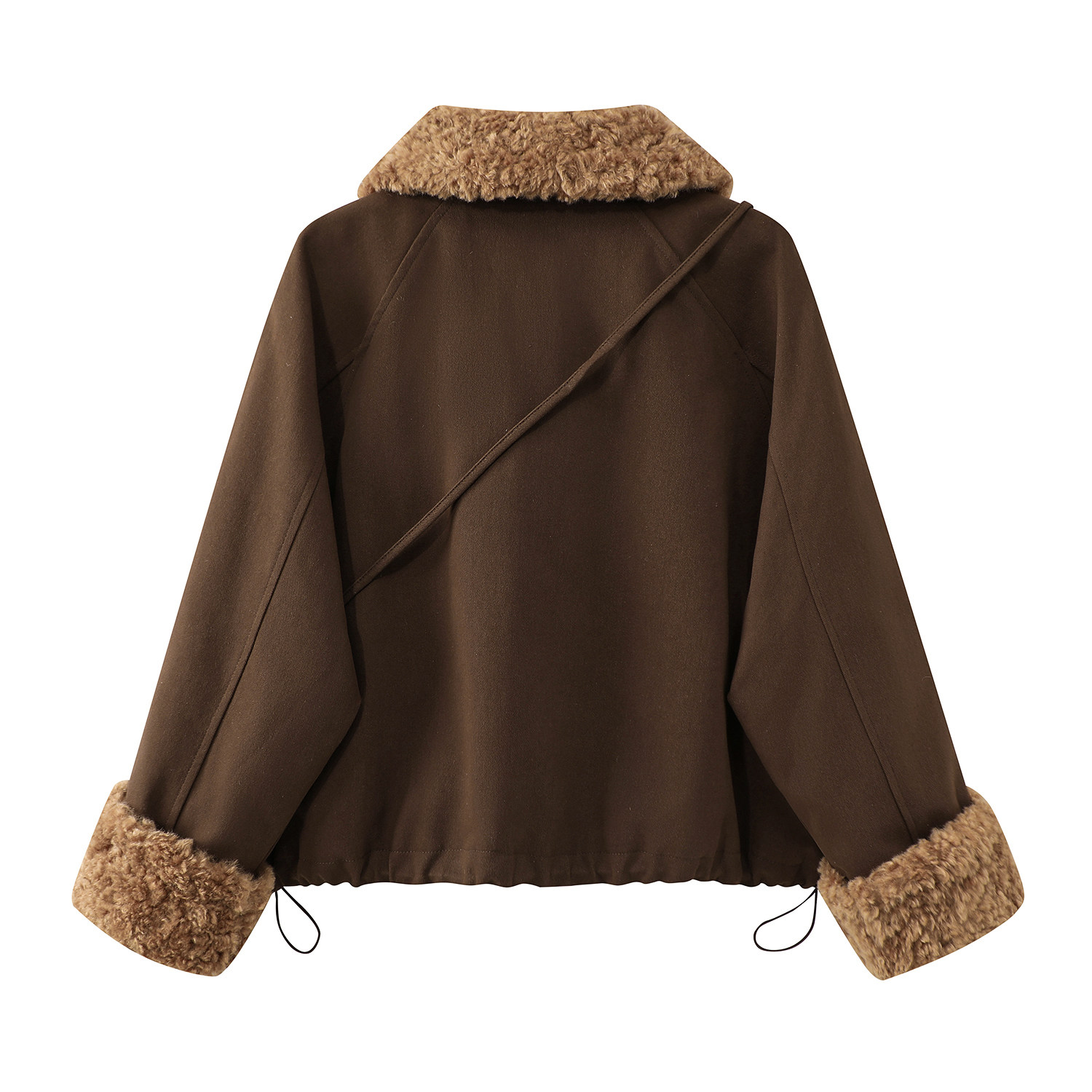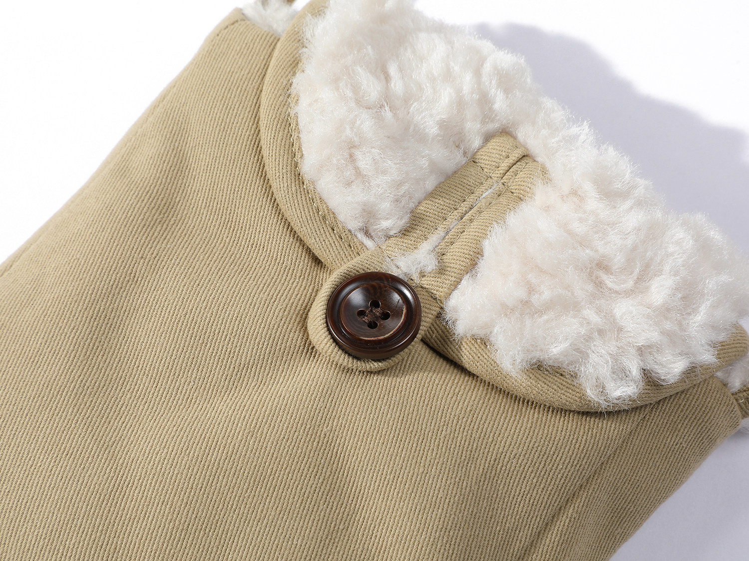 Cholisa-nın quzu yun yaxası ilə qışın əvvəlində qalın paltosu, isti iş geyimi üslubunda aşağıdan hazırlanmış parka qısa topu, qadınlar üçün