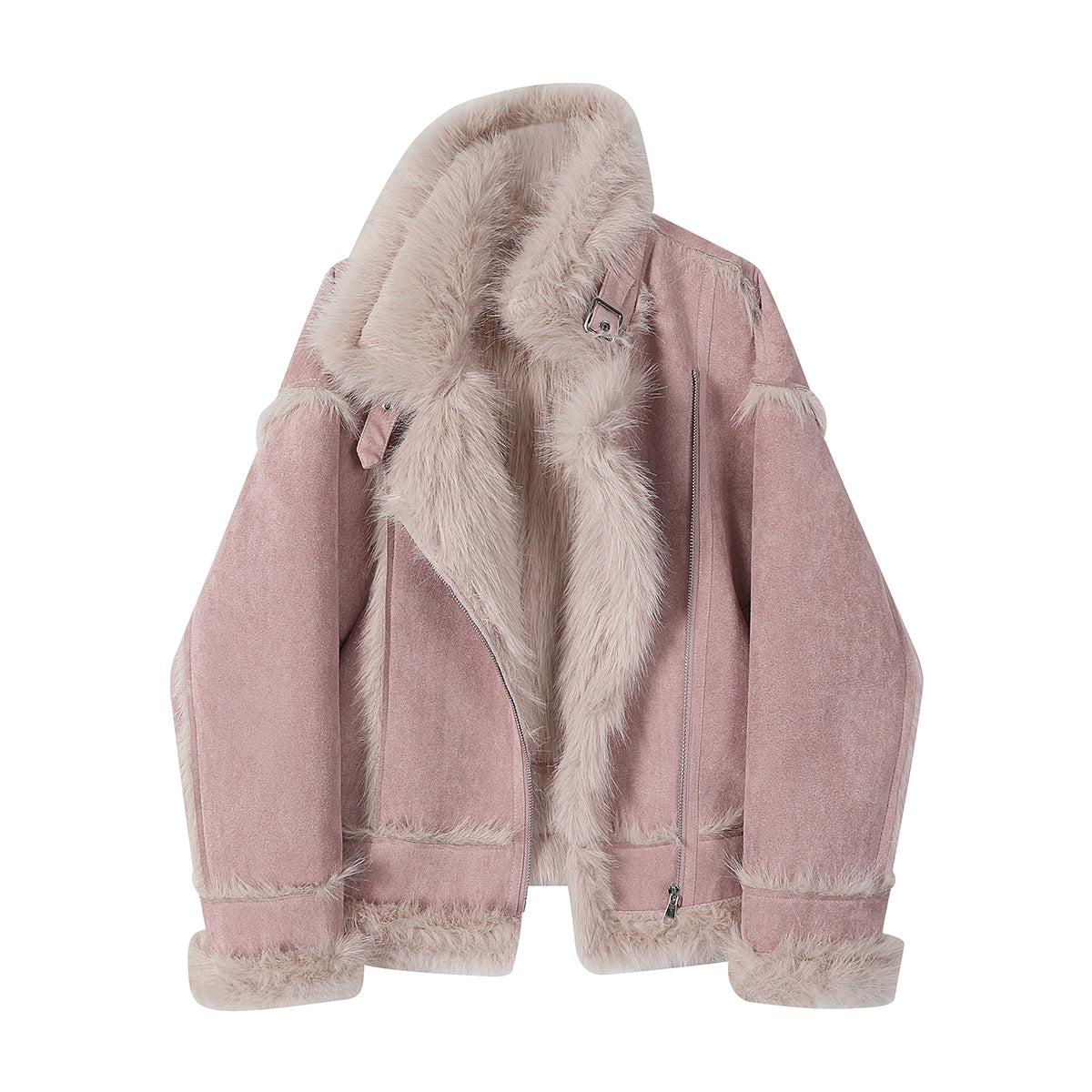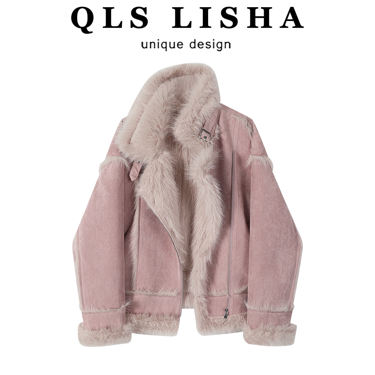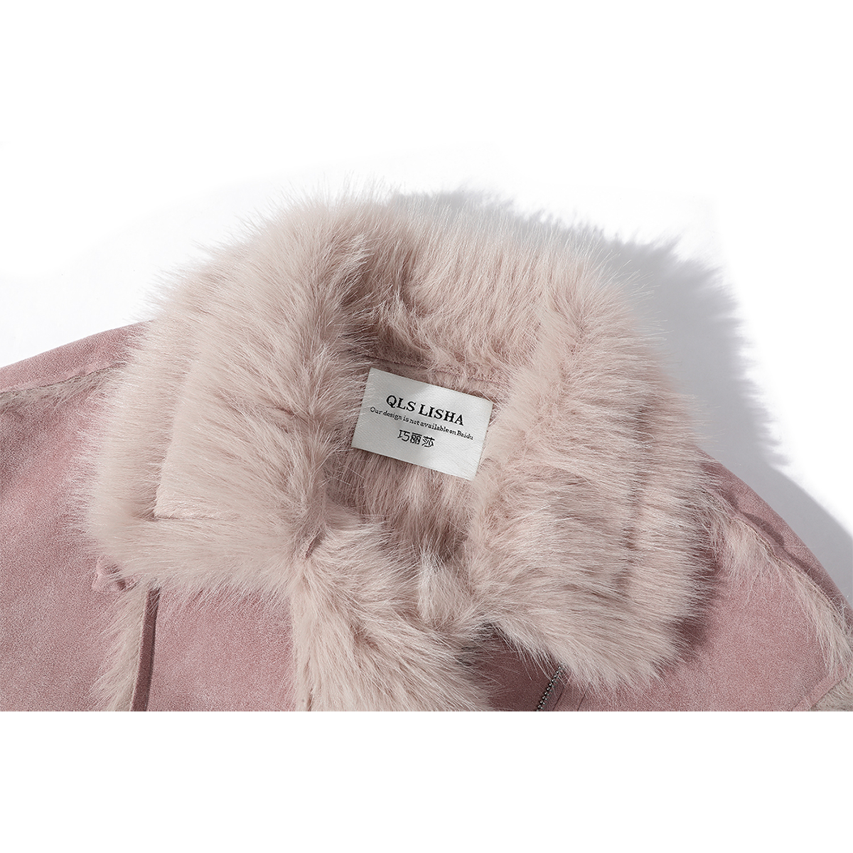 Cholisa-nın yeni payız/qış qısa stilində, çox satılan qadın paltosu, unikal zamşa yun quzu yunundan palto, qadın xəz astarlı, çoxfunksiyalı.