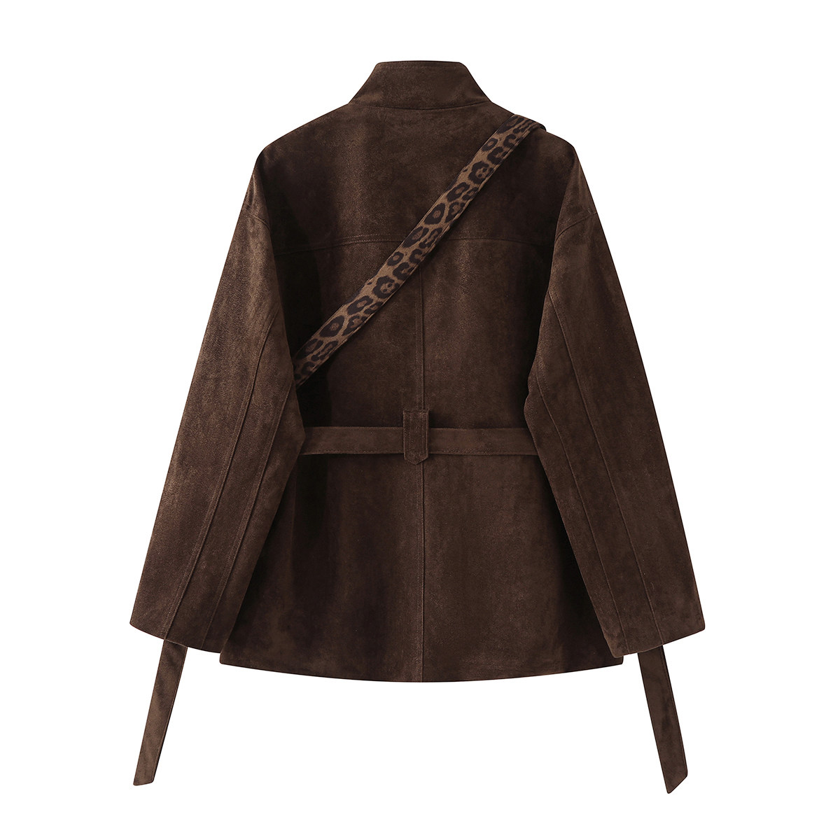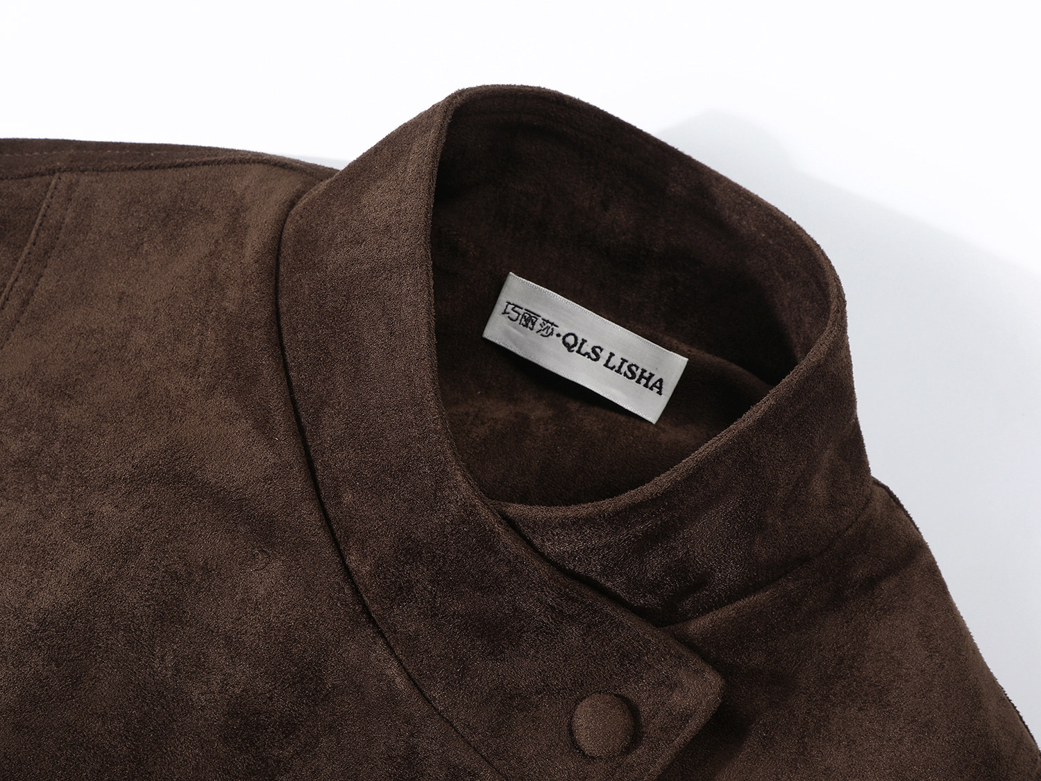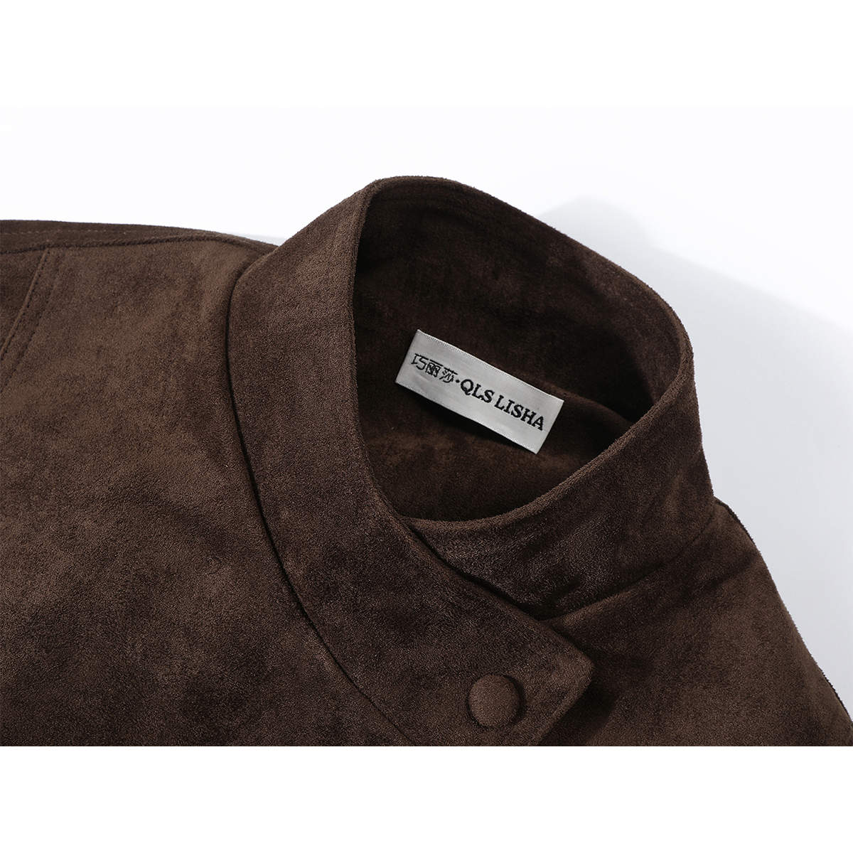 Cholisa Orta Uzunluqlu Zamşa Payız Paltosu 2026 Yeni Qadınlar üçün Məşhur Retro Stil Gödəkçə