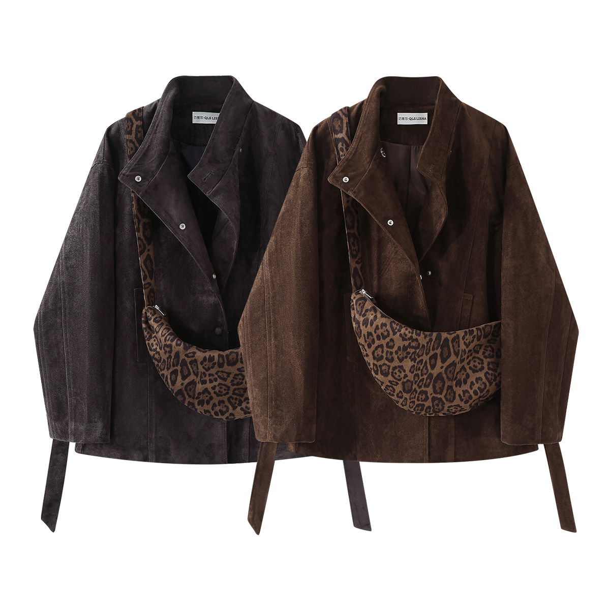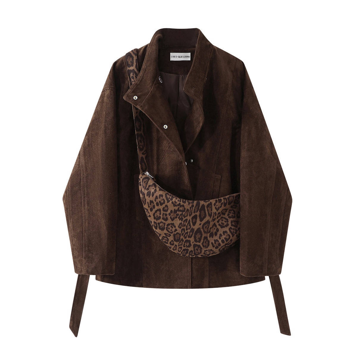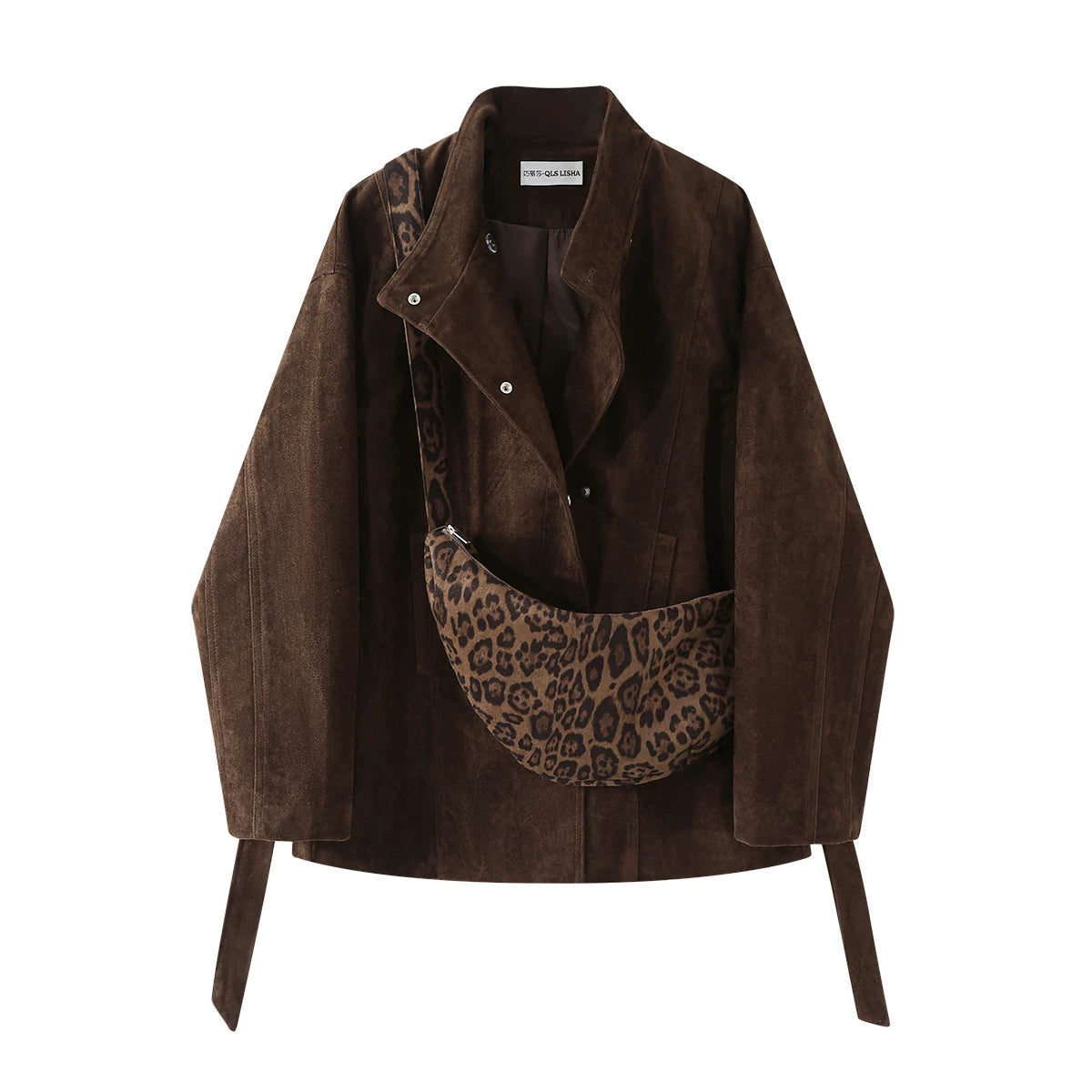 Cholisa Orta Uzunluqlu Zamşa Payız Paltosu 2026 Yeni Qadınlar üçün Məşhur Retro Stil Gödəkçə