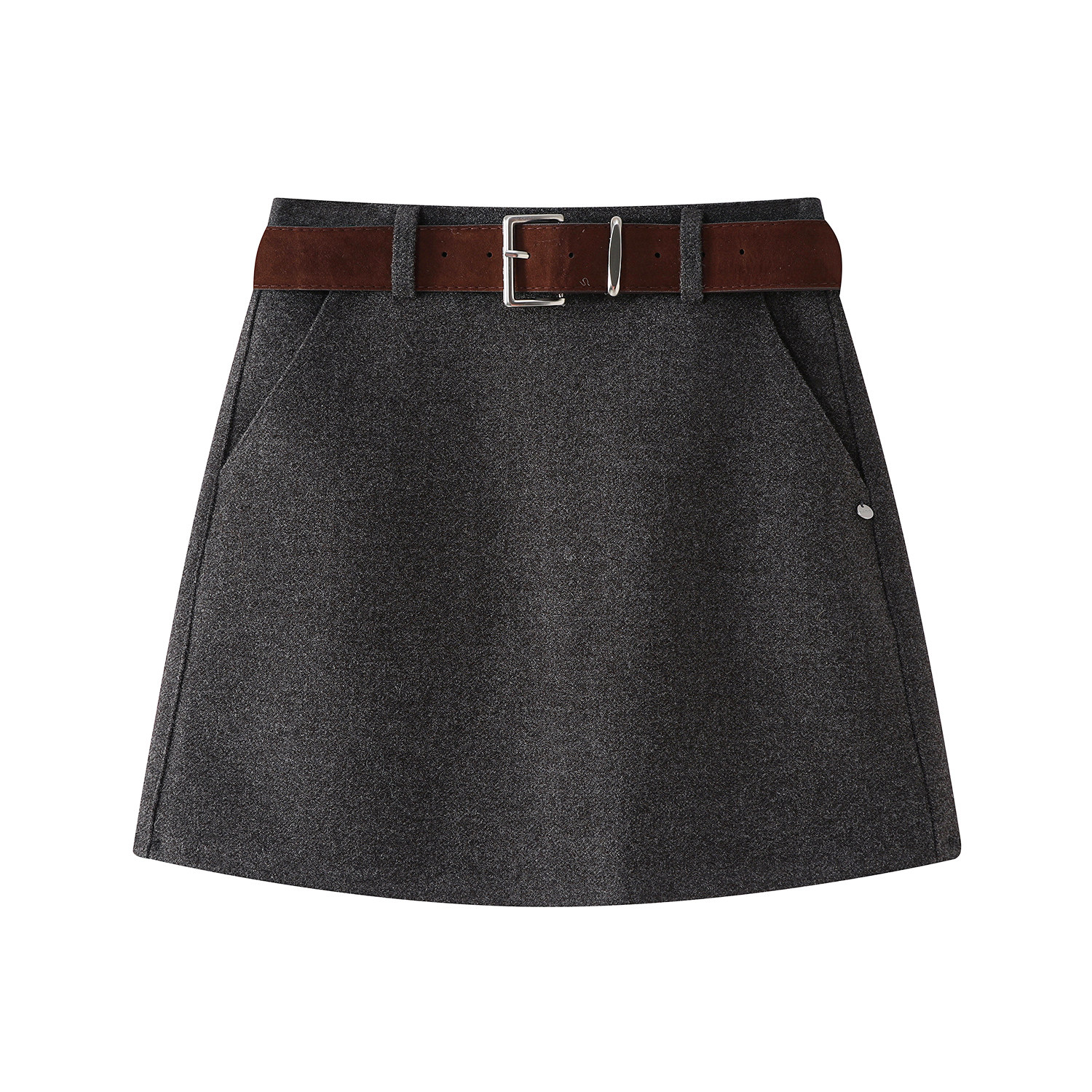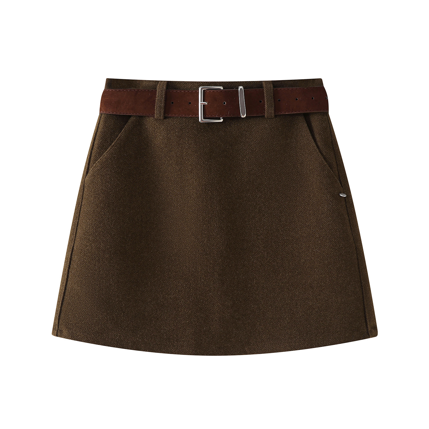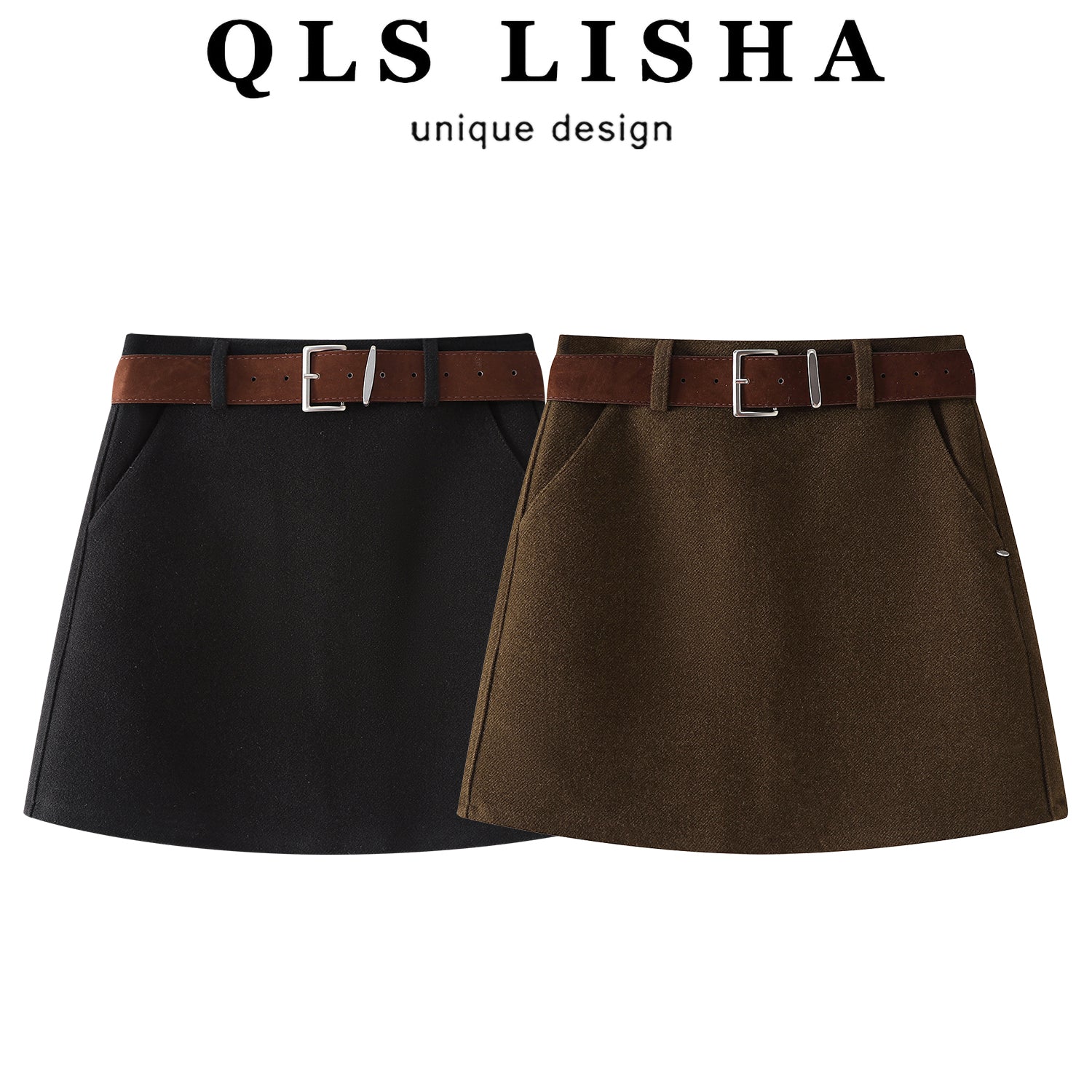 Cholisa Qəhvəyi Midi Ətək, Yaz 2026 Yeni Stil, Yüksək Bel, Ombaya Qucaqlaşan A-Xəttli Yun Mini Ətək, Koreya Üslubunda, Çoxfunksiyalı Ətək