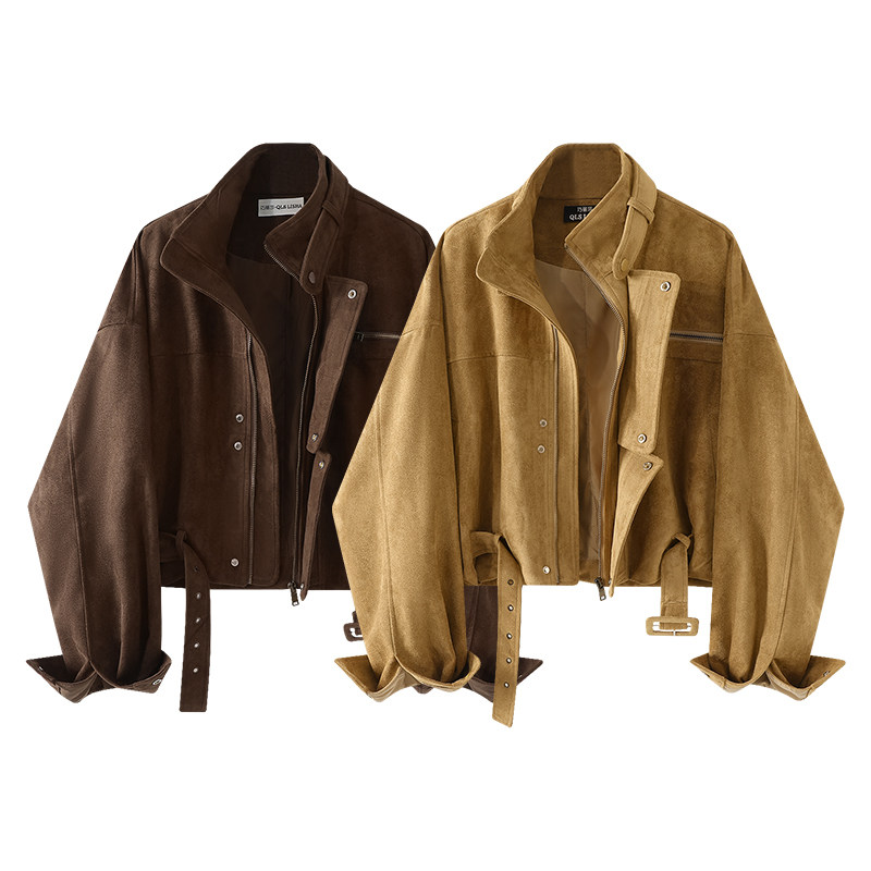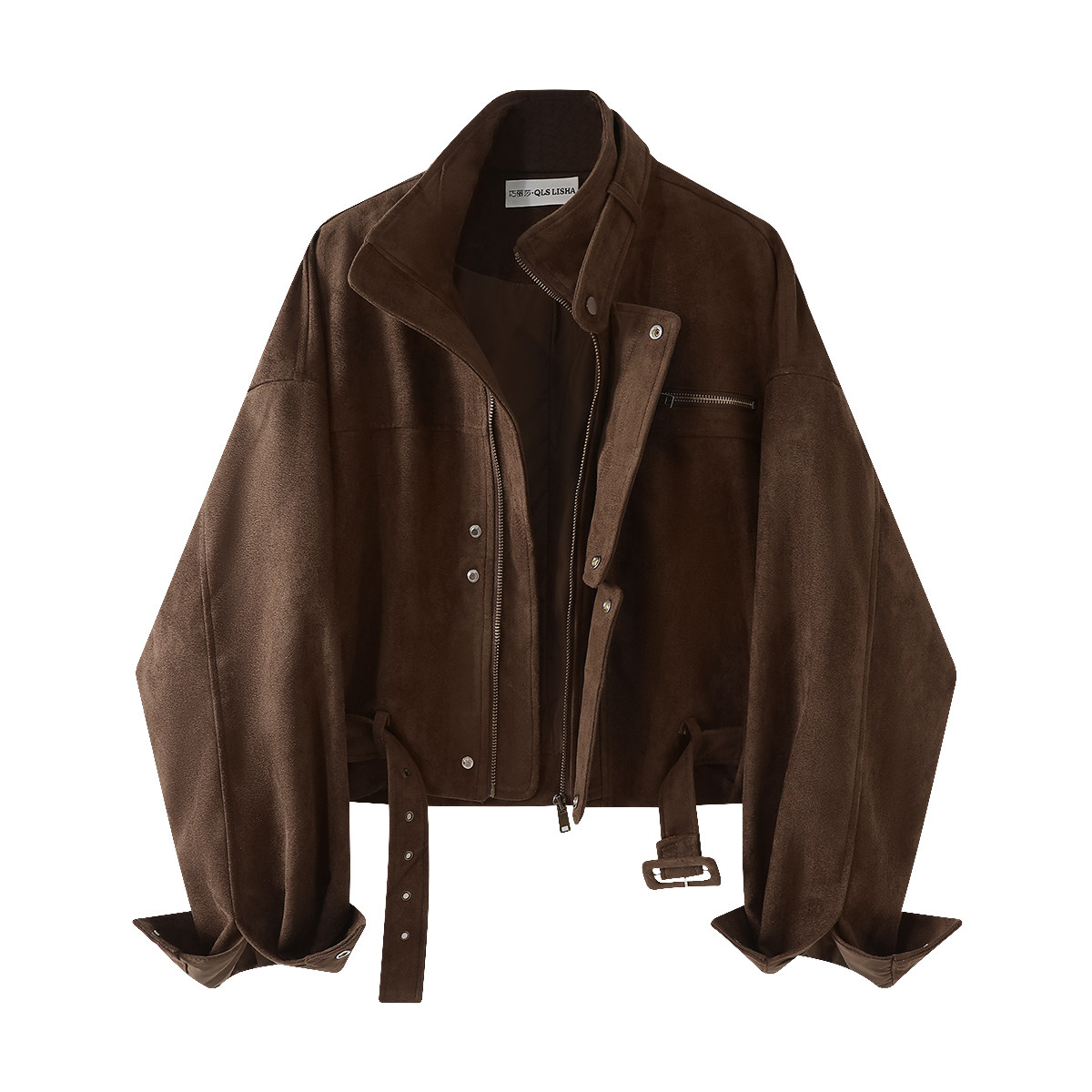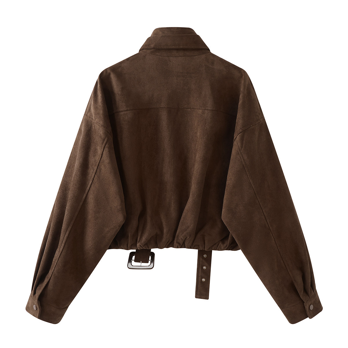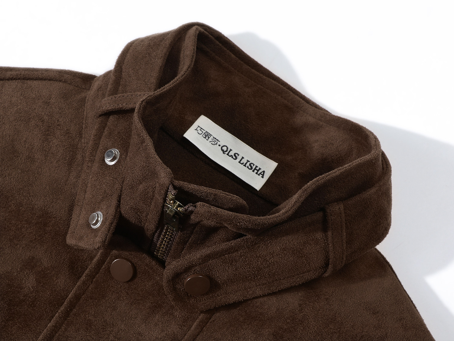 Cholisa Qəhvəyi Zamşa Gödəkçə, 2026 Yaz/Payız/Qış, Yüksək Səviyyəli Koreya Üslublu Üst Geyim, Qadınlar üçün Qısa İş Geyimi Topu