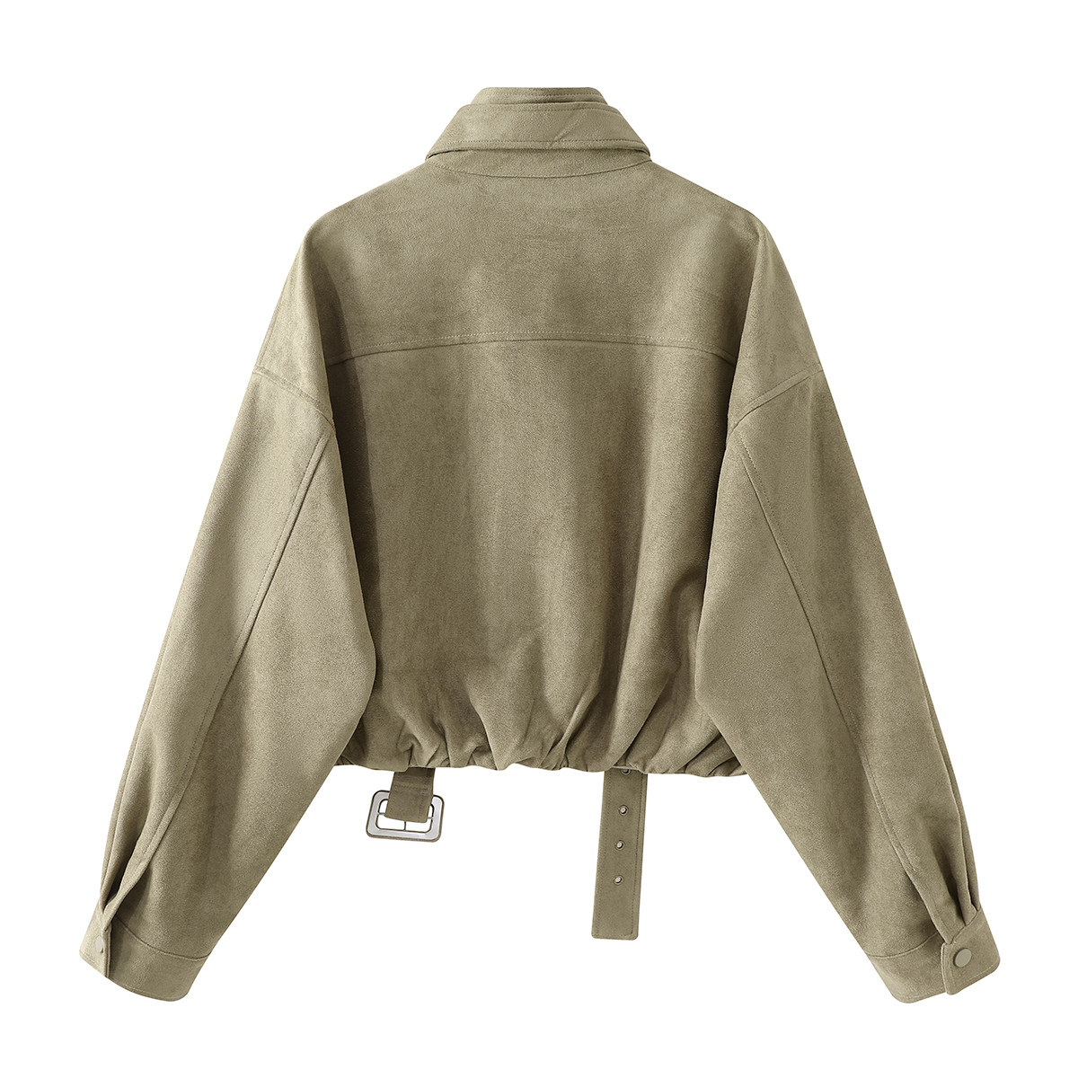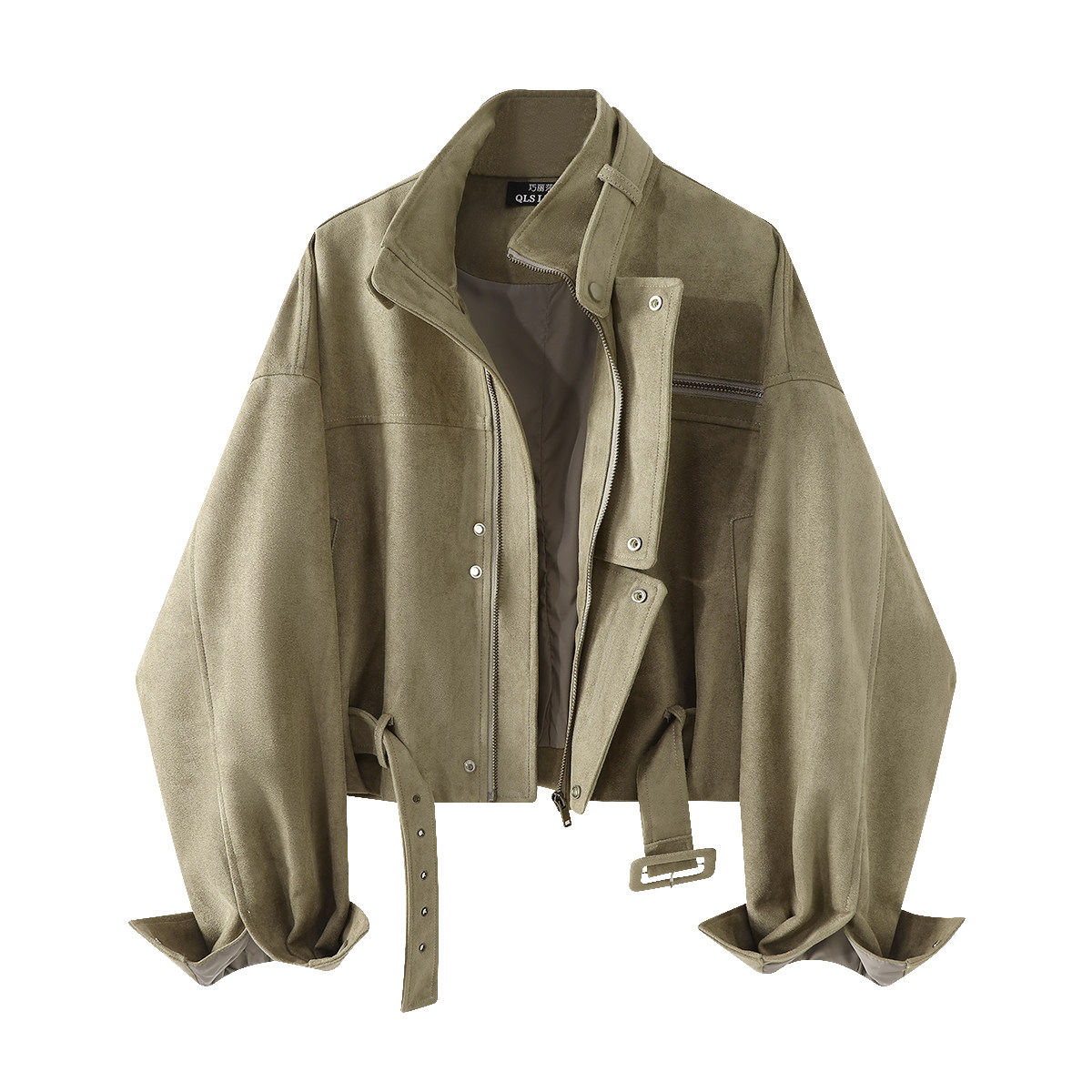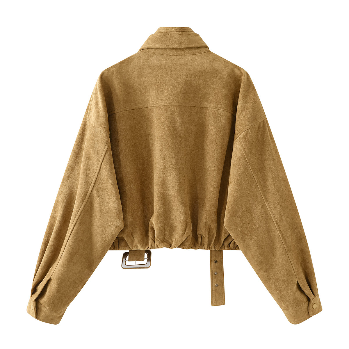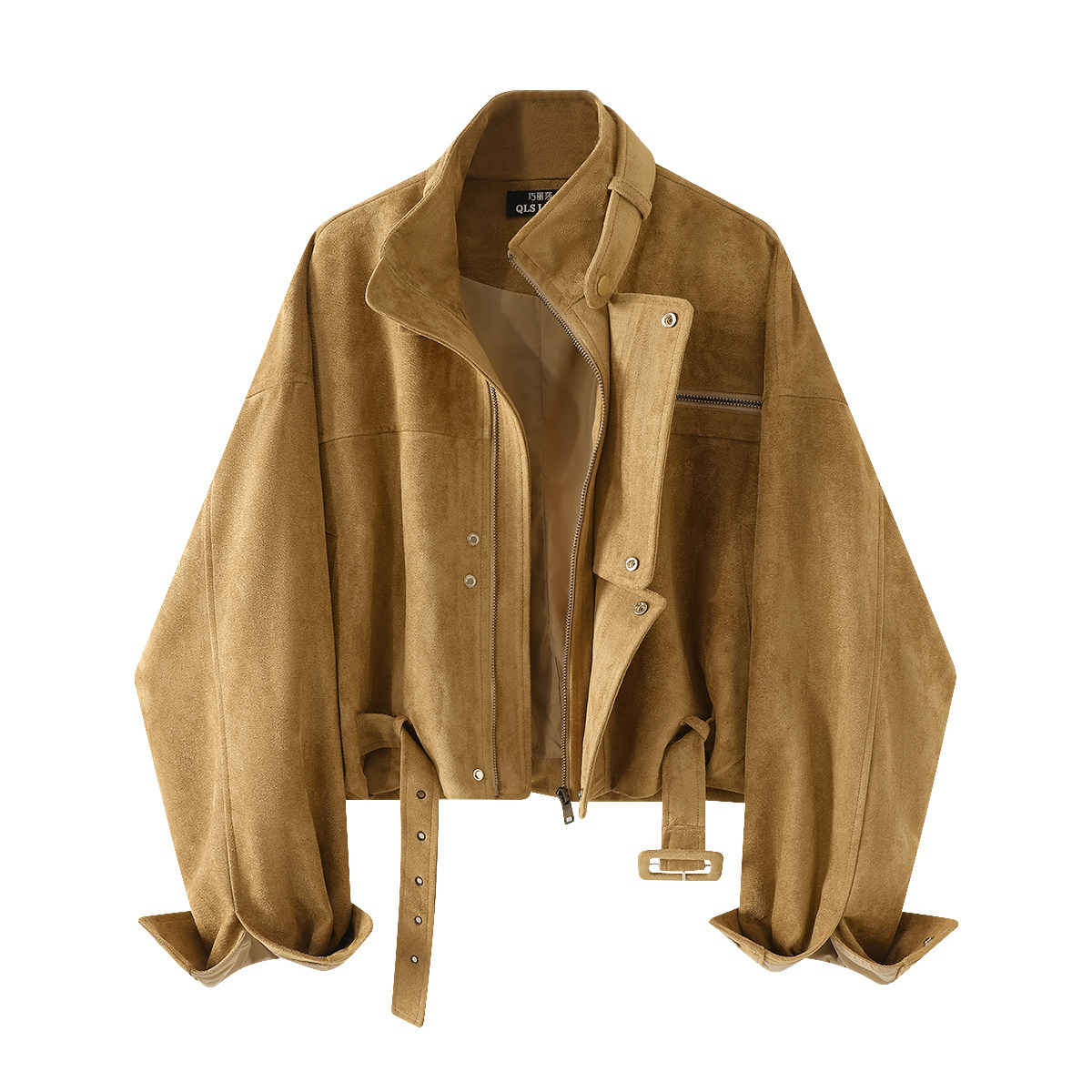 Cholisa Qəhvəyi Zamşa Gödəkçə, 2026 Yaz/Payız/Qış, Yüksək Səviyyəli Koreya Üslublu Üst Geyim, Qadınlar üçün Qısa İş Geyimi Topu