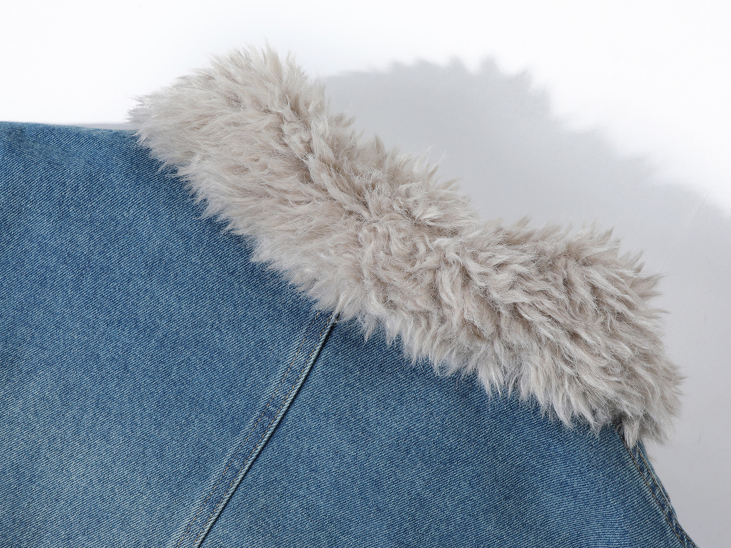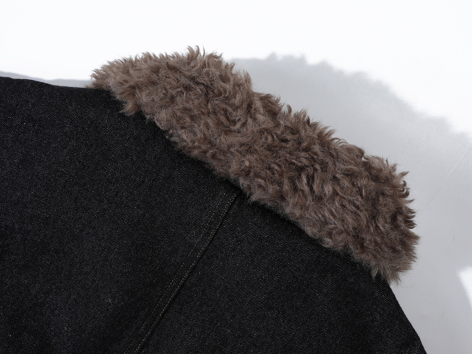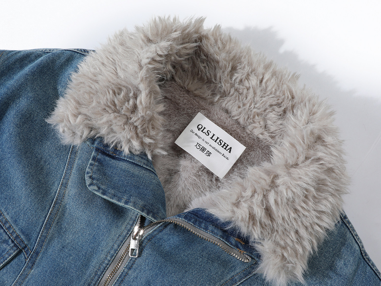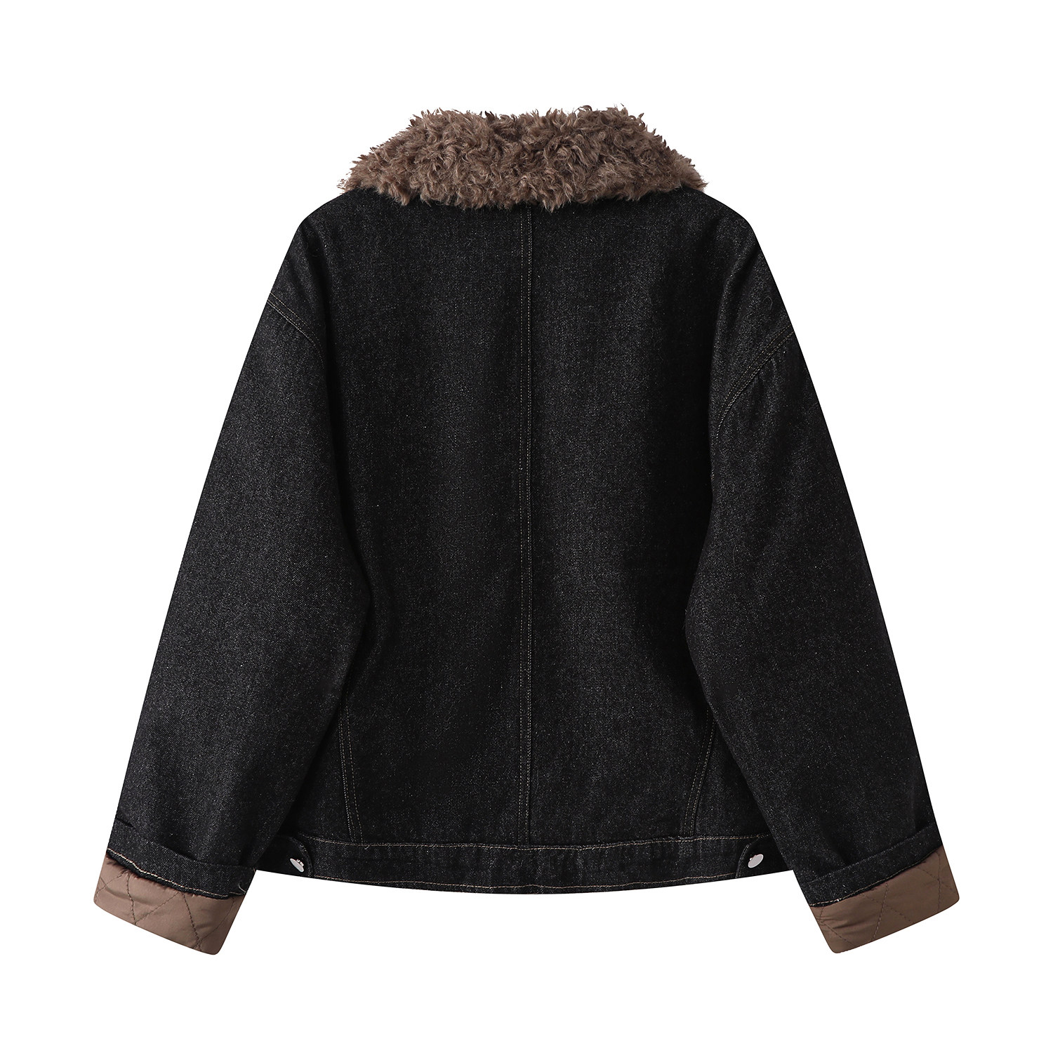 Cholisa Qadınlar üçün Yun Astarlı Qalın Denim Gödəkçə 2025 Yeni Amerika Stilində Quzu Yunlu Gödəkçə Qış Tüklü Top