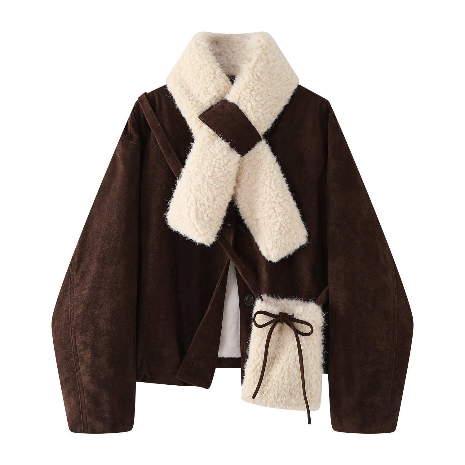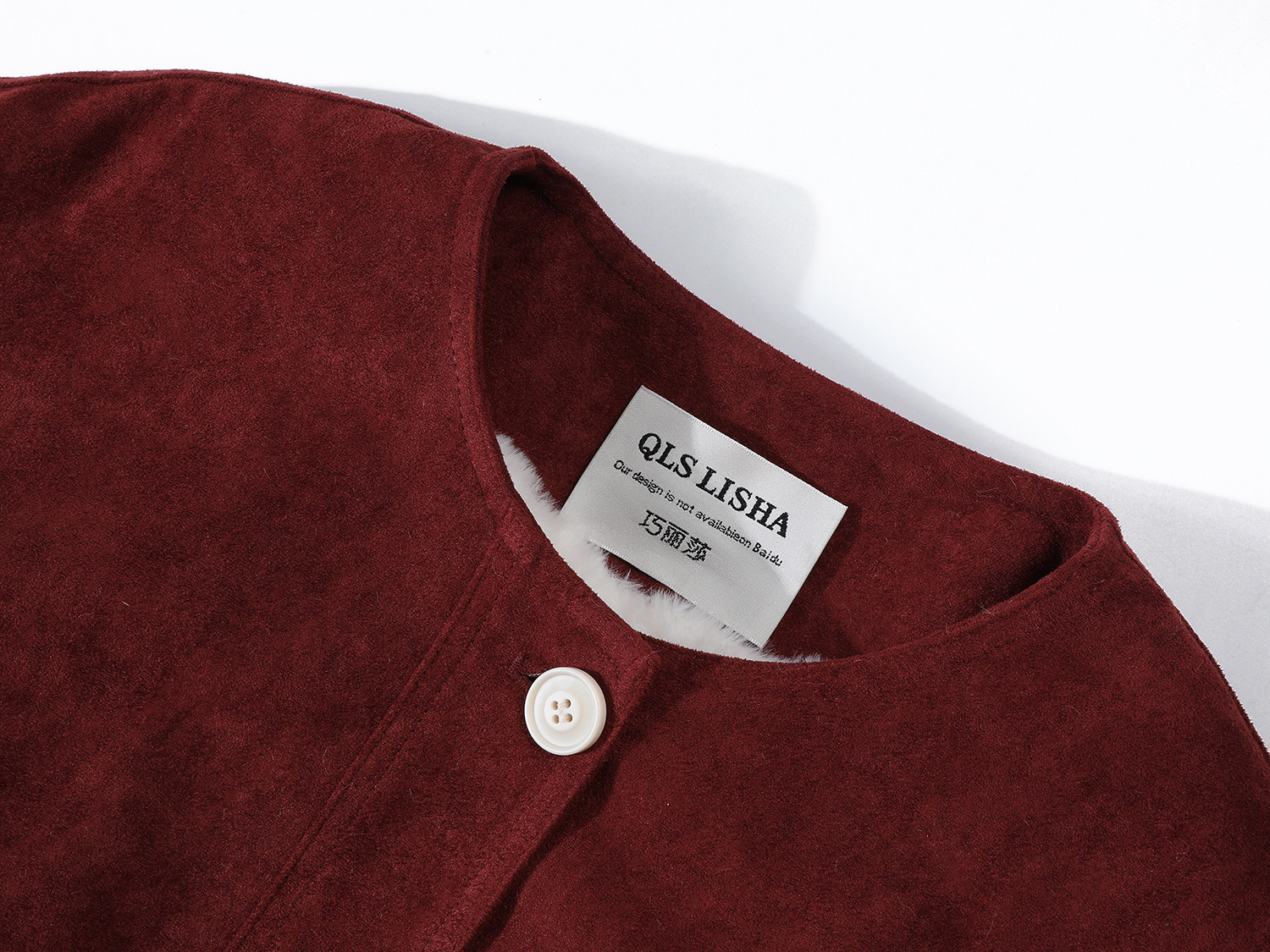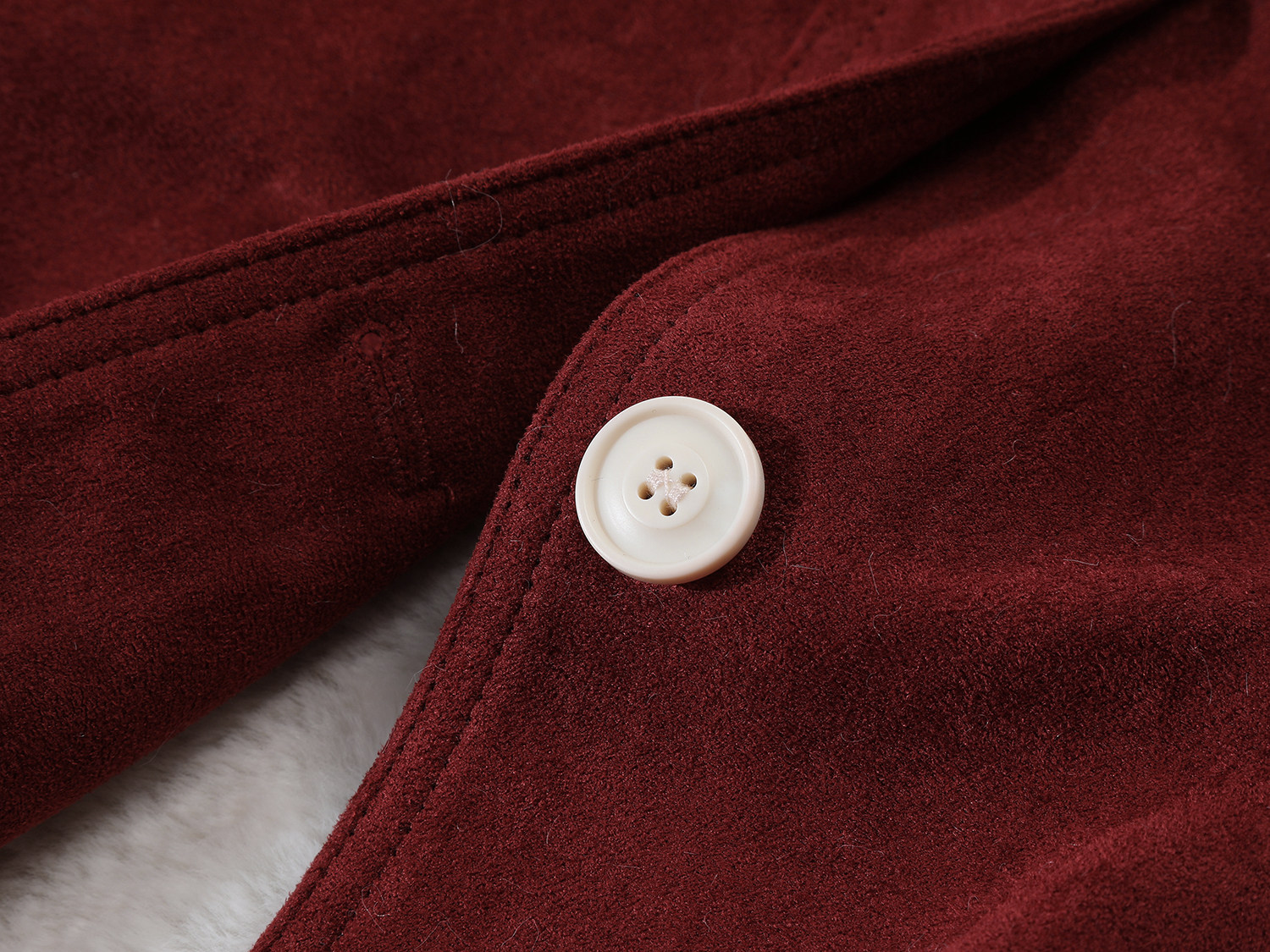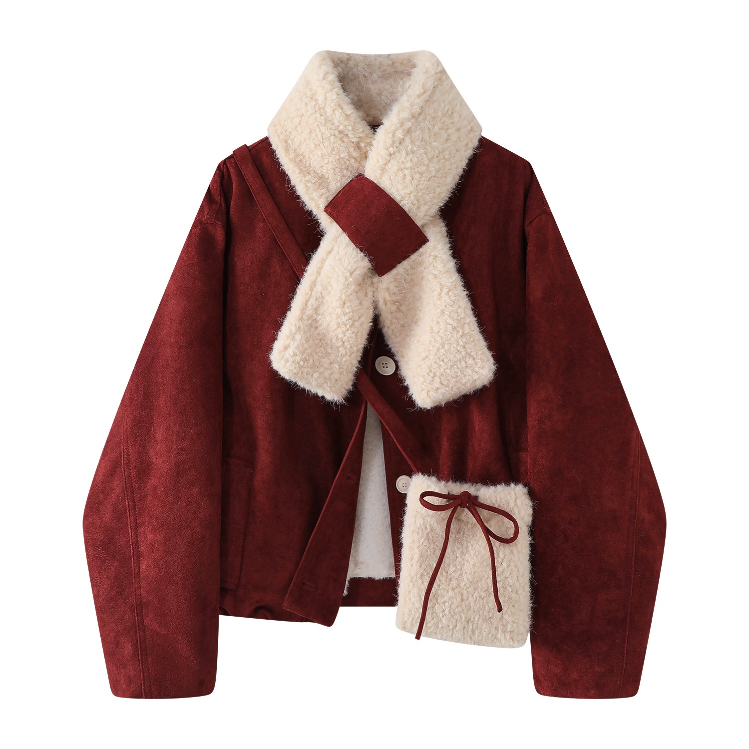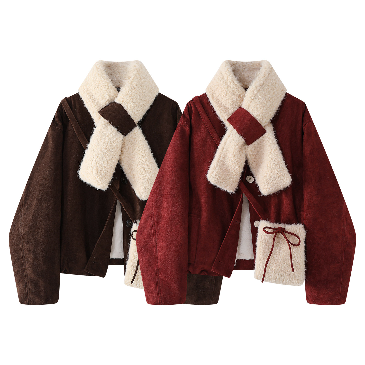 Cholisa Qalınlaşdırılmış Yun Astarlı Qırmızı Zamşa Gödəkçə, Koreya üslubunda, Super Gözəl Qış Qoyun Dərisi Pambıq Yastıqlı Palto