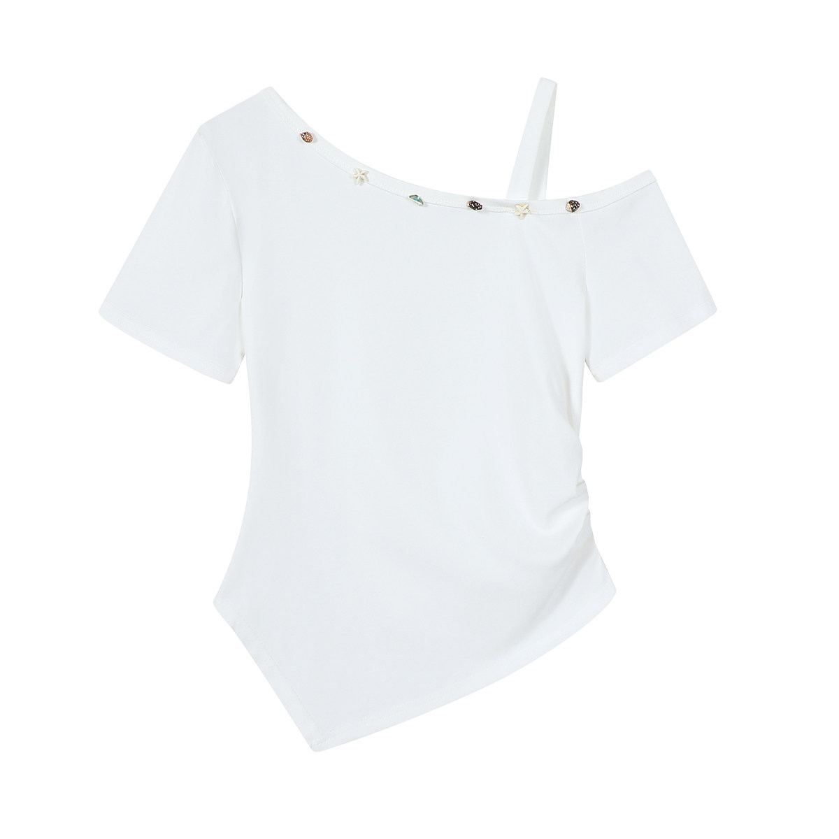 Cholisa Tək Çiyinli Top, Qadın Yay Geyimləri, Unikal, Super Gözəl, Zərif, Unikal Stil, Yay üçün Gözəl Qısa Qollu Köynək