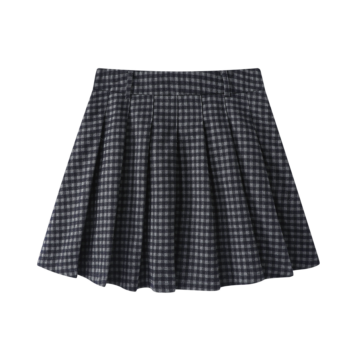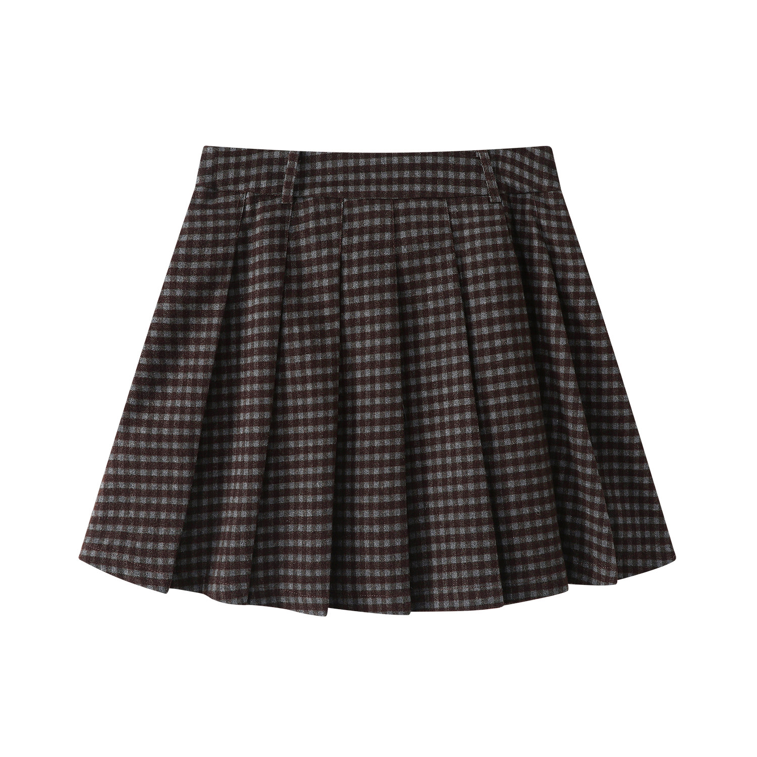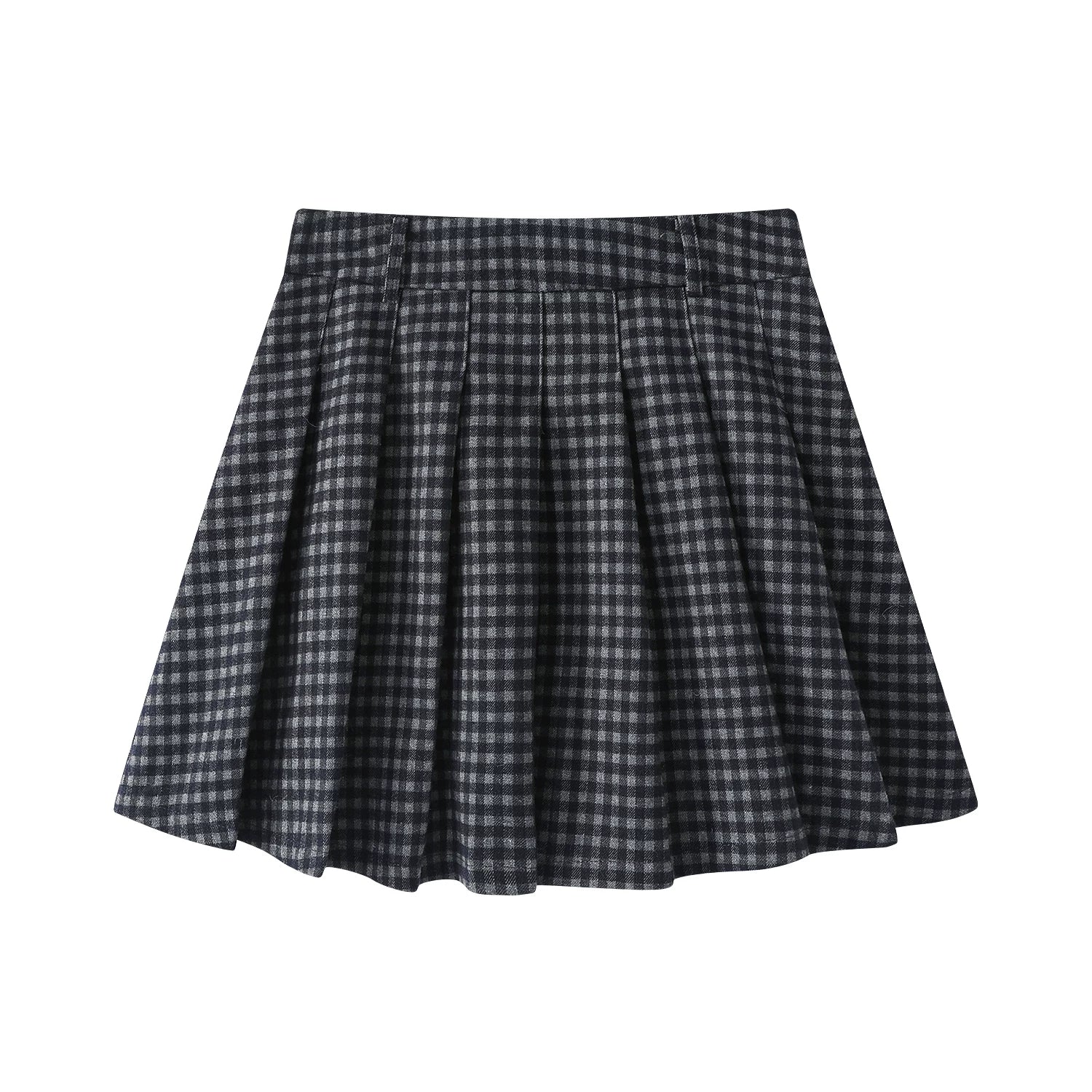Cholisa yun damalı büzməli ətək, yeni payız/qış stili, yüksək belli, retro, preppy, qısa A-xəttli ətək.